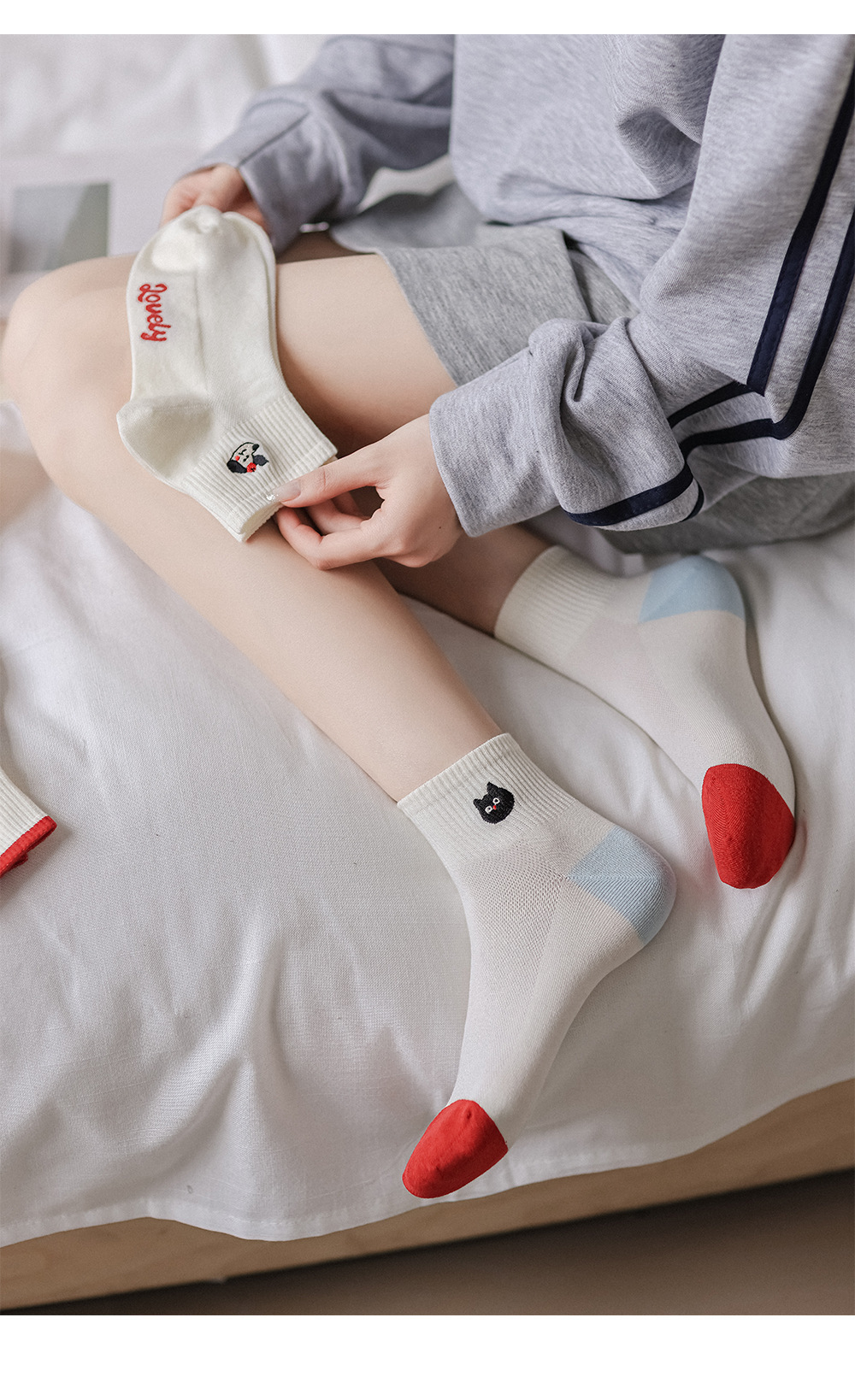 봄과 여름 귀여운 만화 자수 여성 양말 일본 스타일 대학 스타일 코튼 양말 올 매치 컬러 대비 폴카 도트 여성용 양말스토어 가기