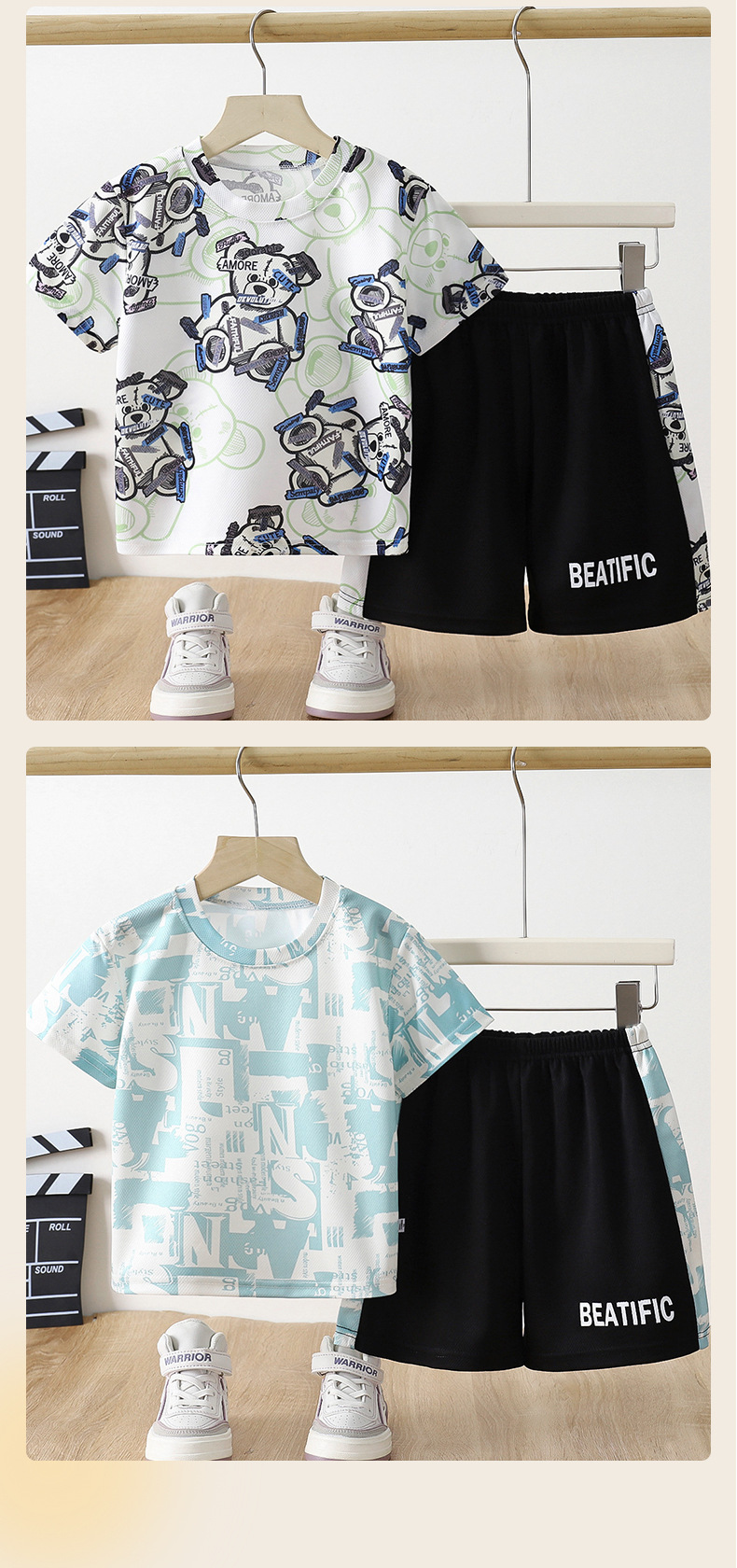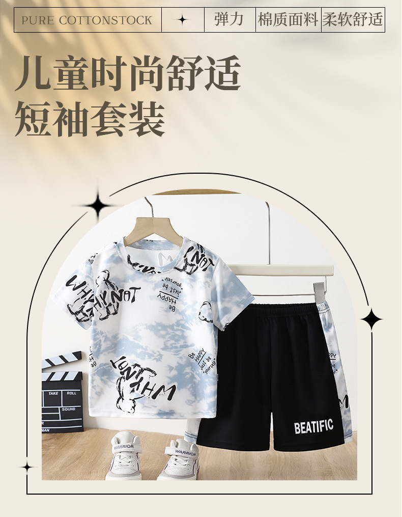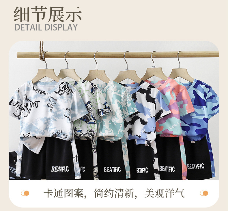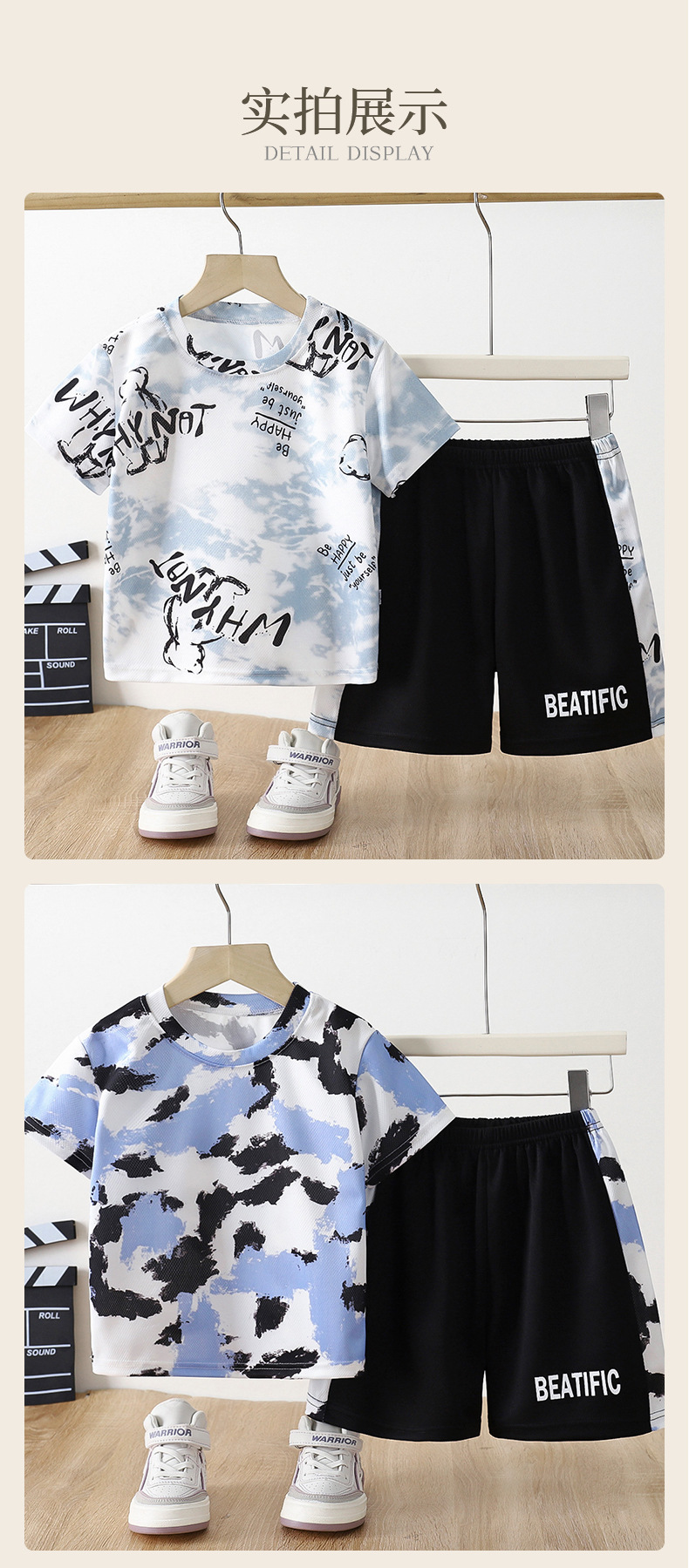 어린이 반팔 세트 여름 새로운 대형 어린이 위장 반팔 반바지 소년 스포츠 빠른 건조 옷 아동복 도매스토어 가기