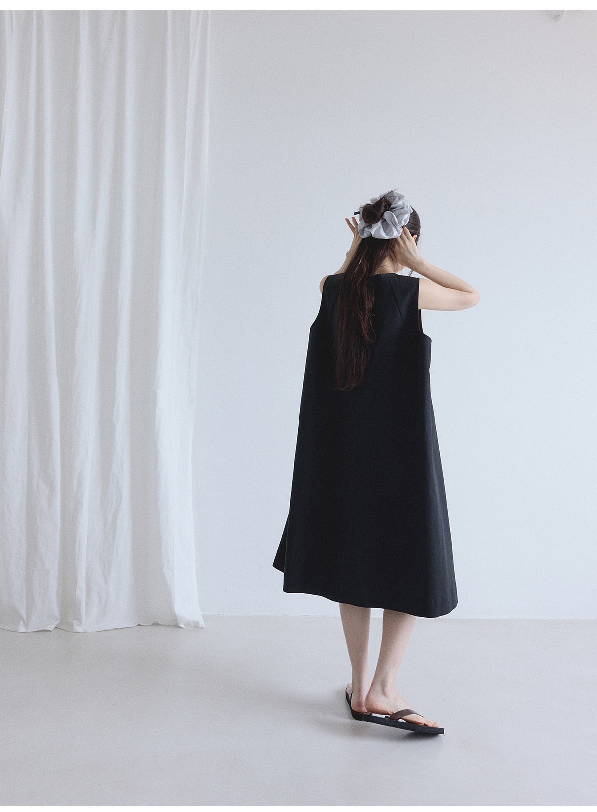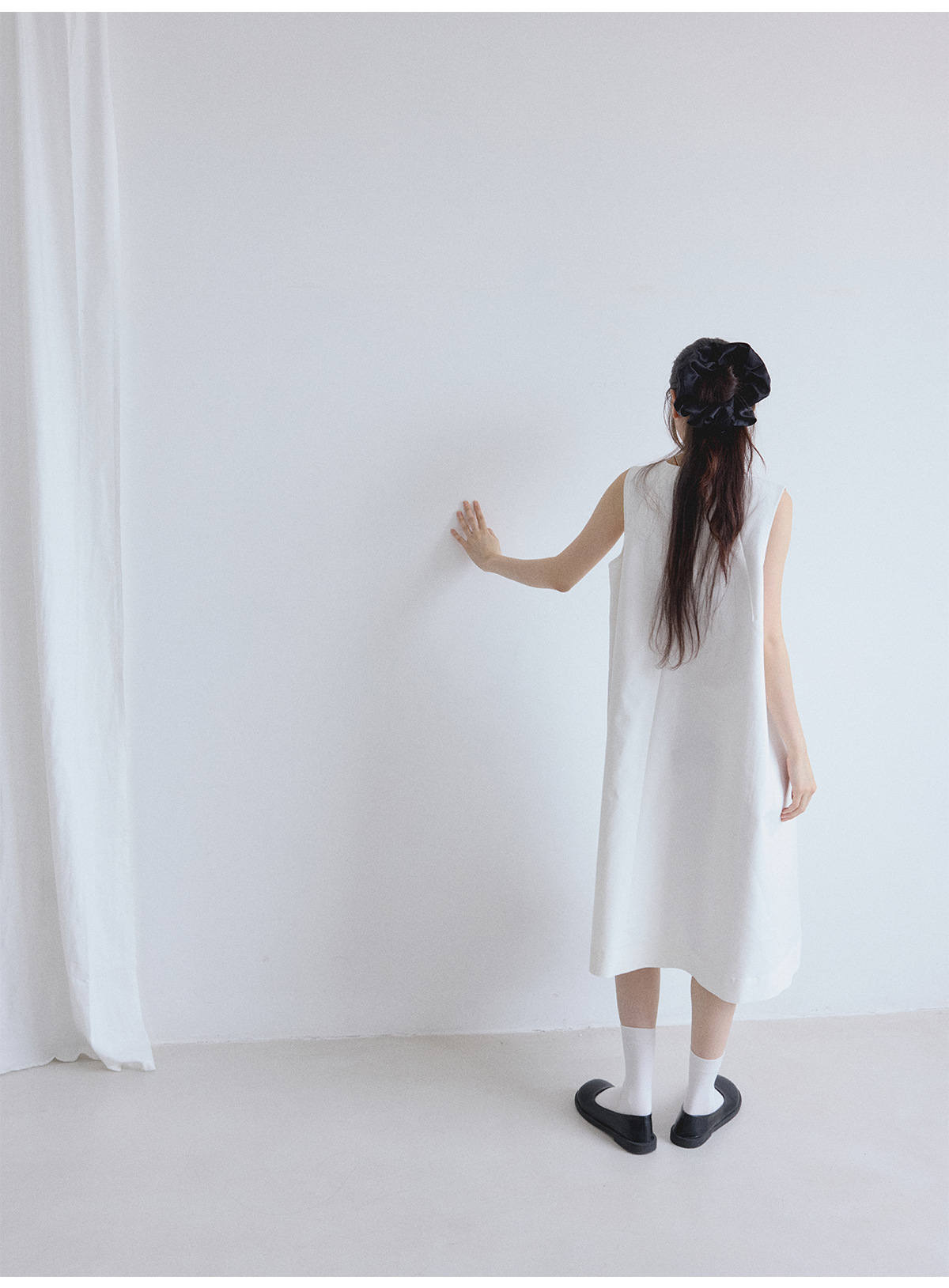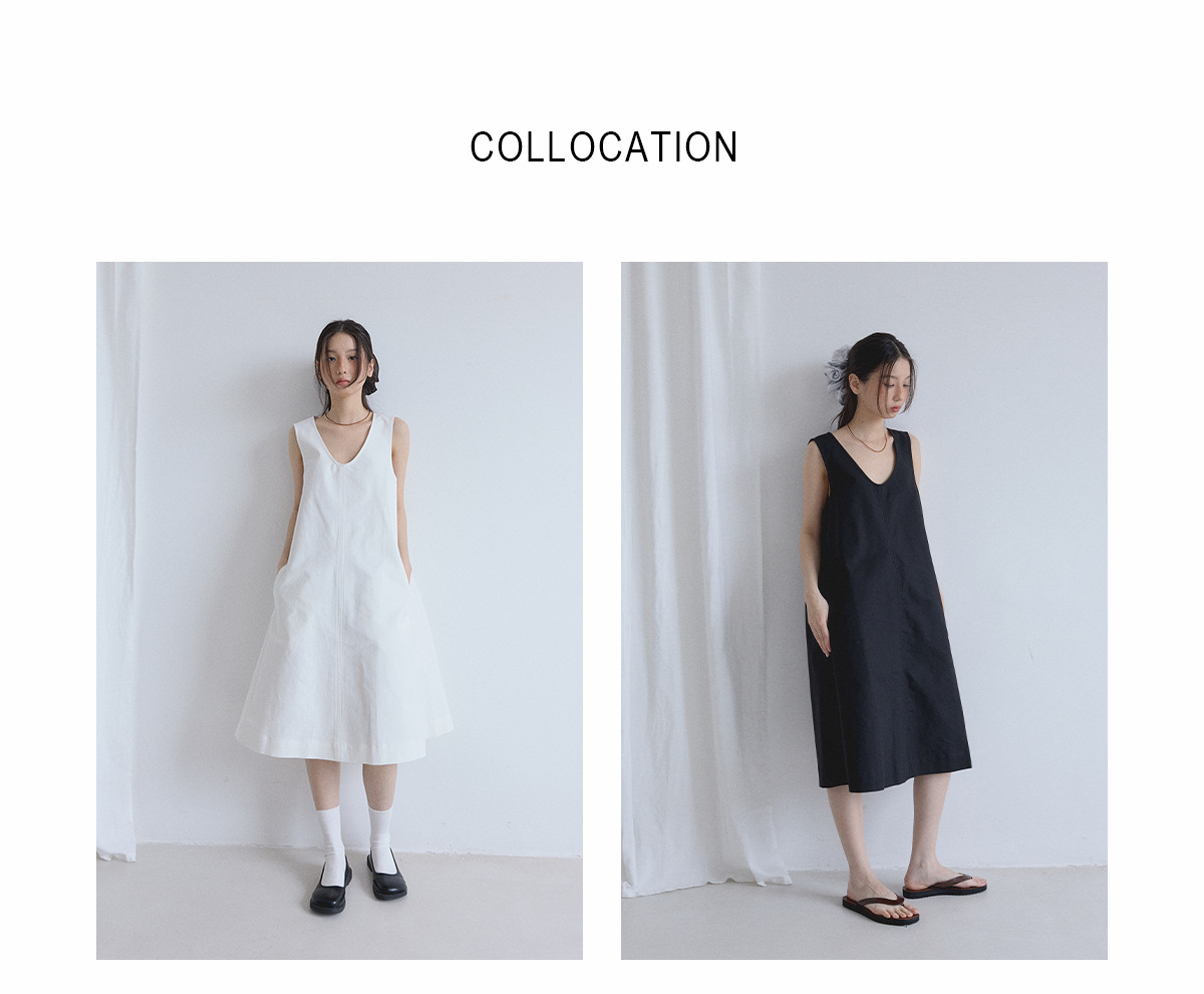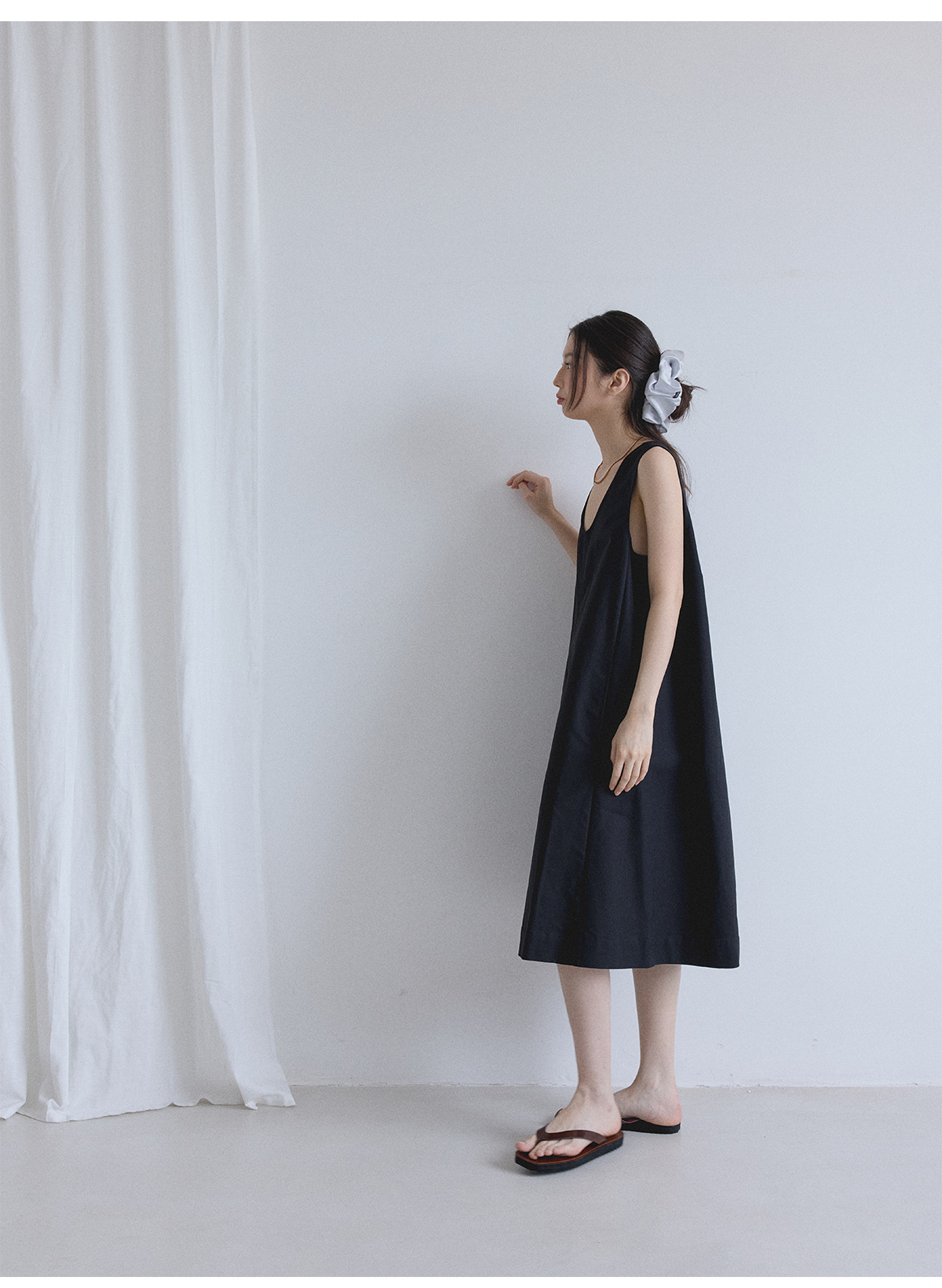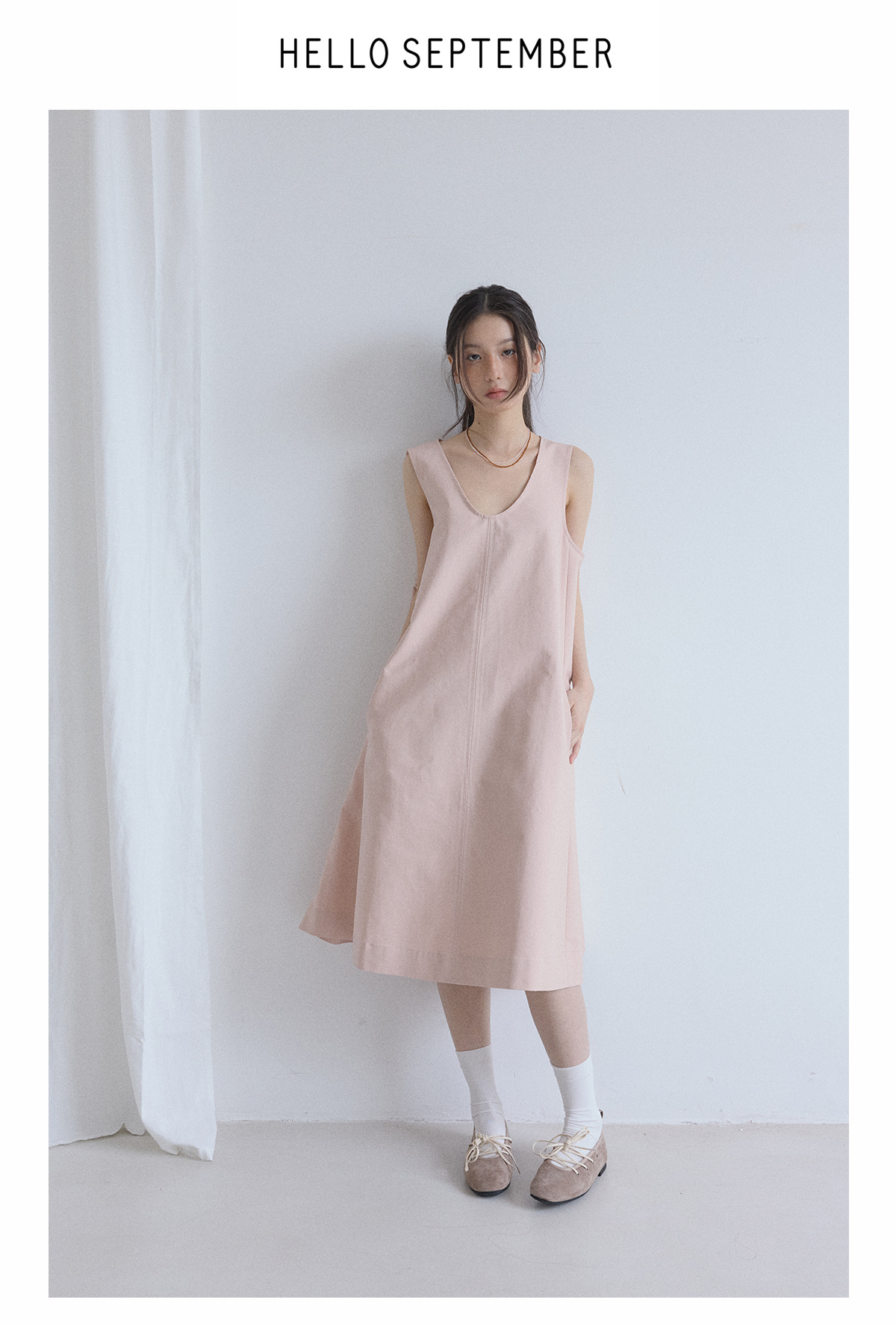 [다이허] 여름 새로운 캐주얼 간단한 쉬운 코튼 U-넥 순수 에디션 솔리드 컬러 조끼 원피스 H8559