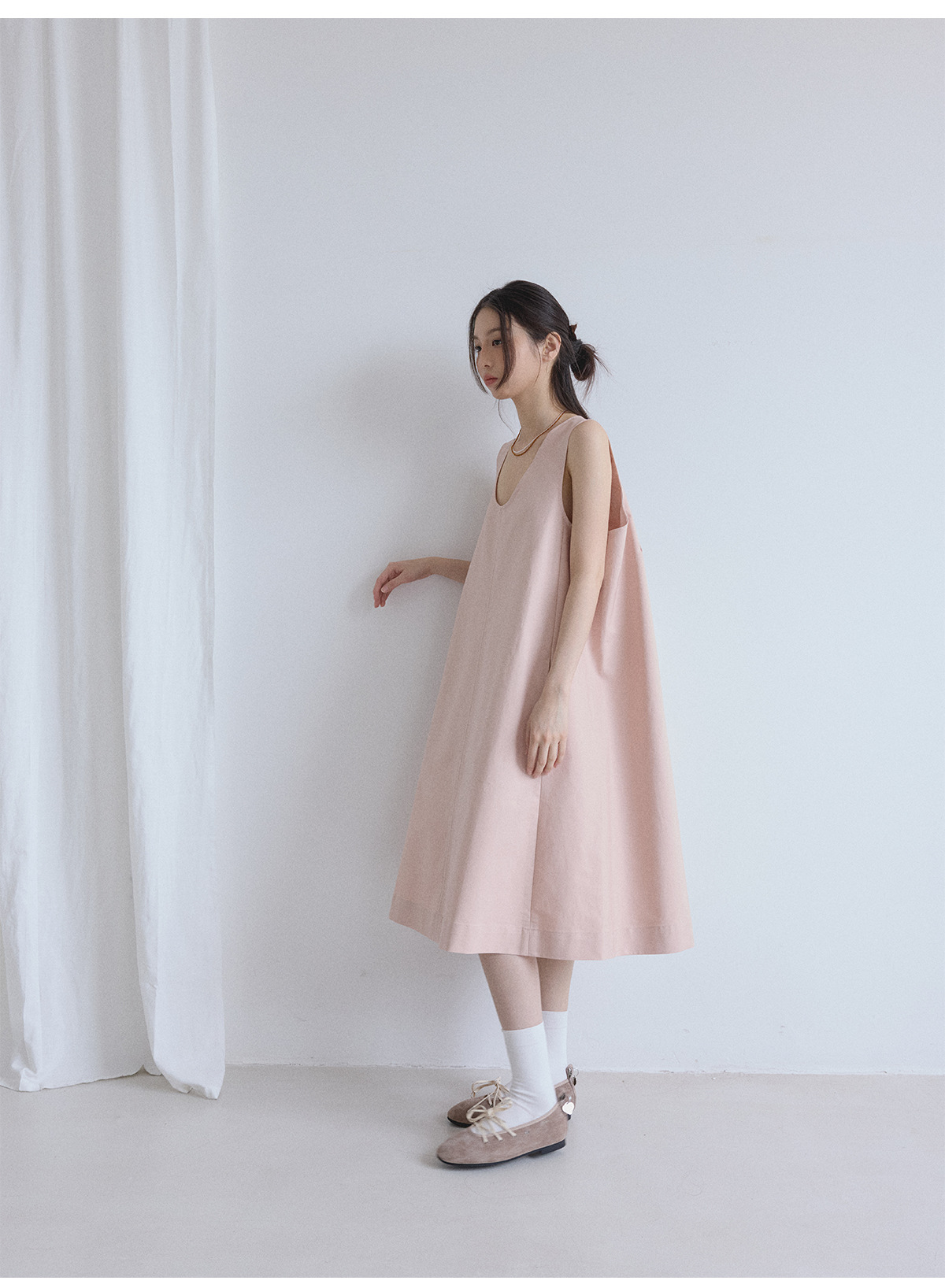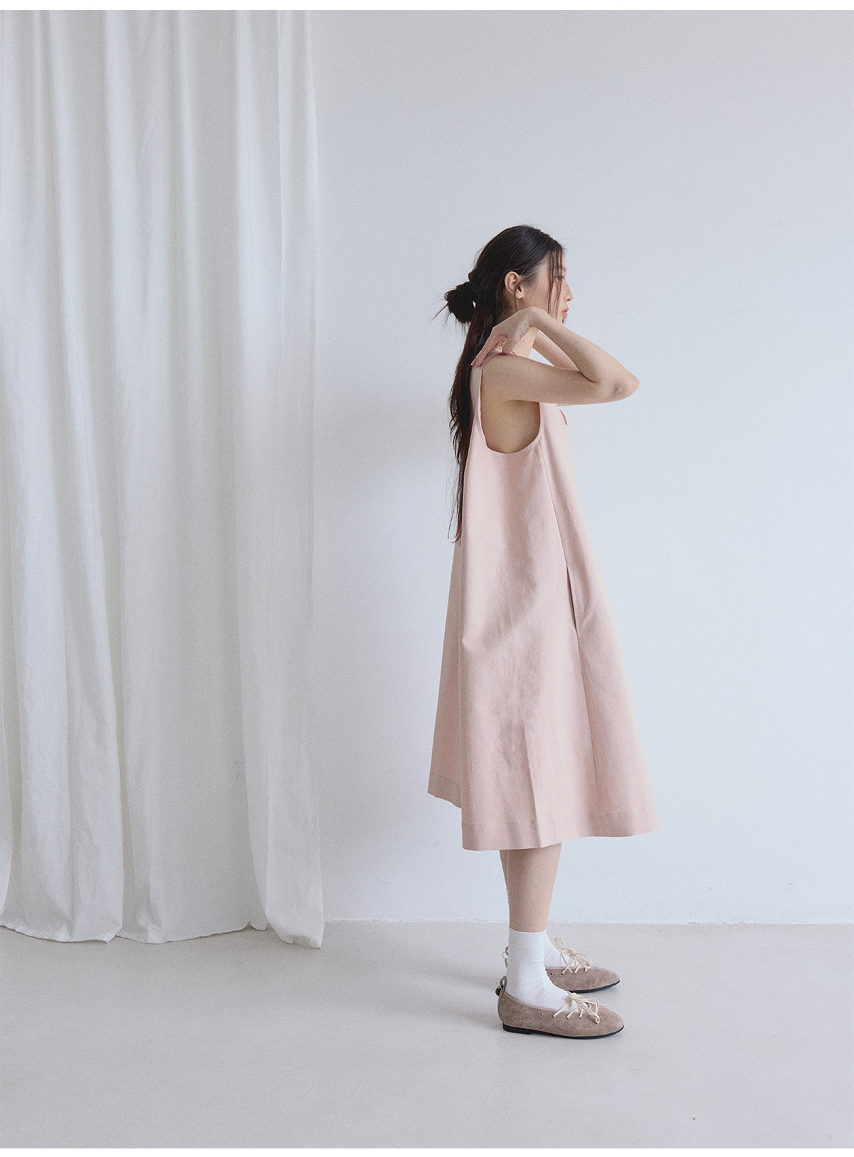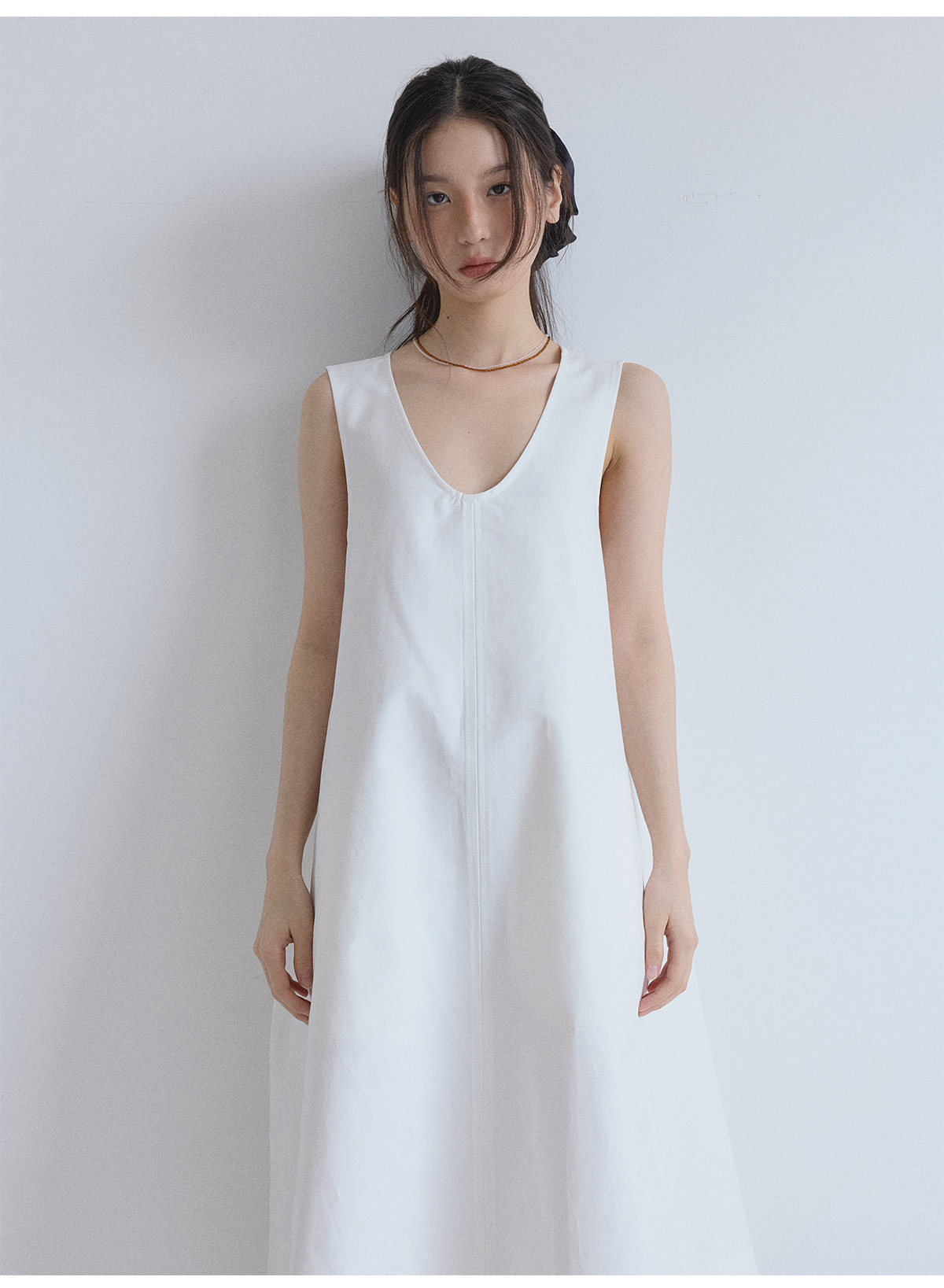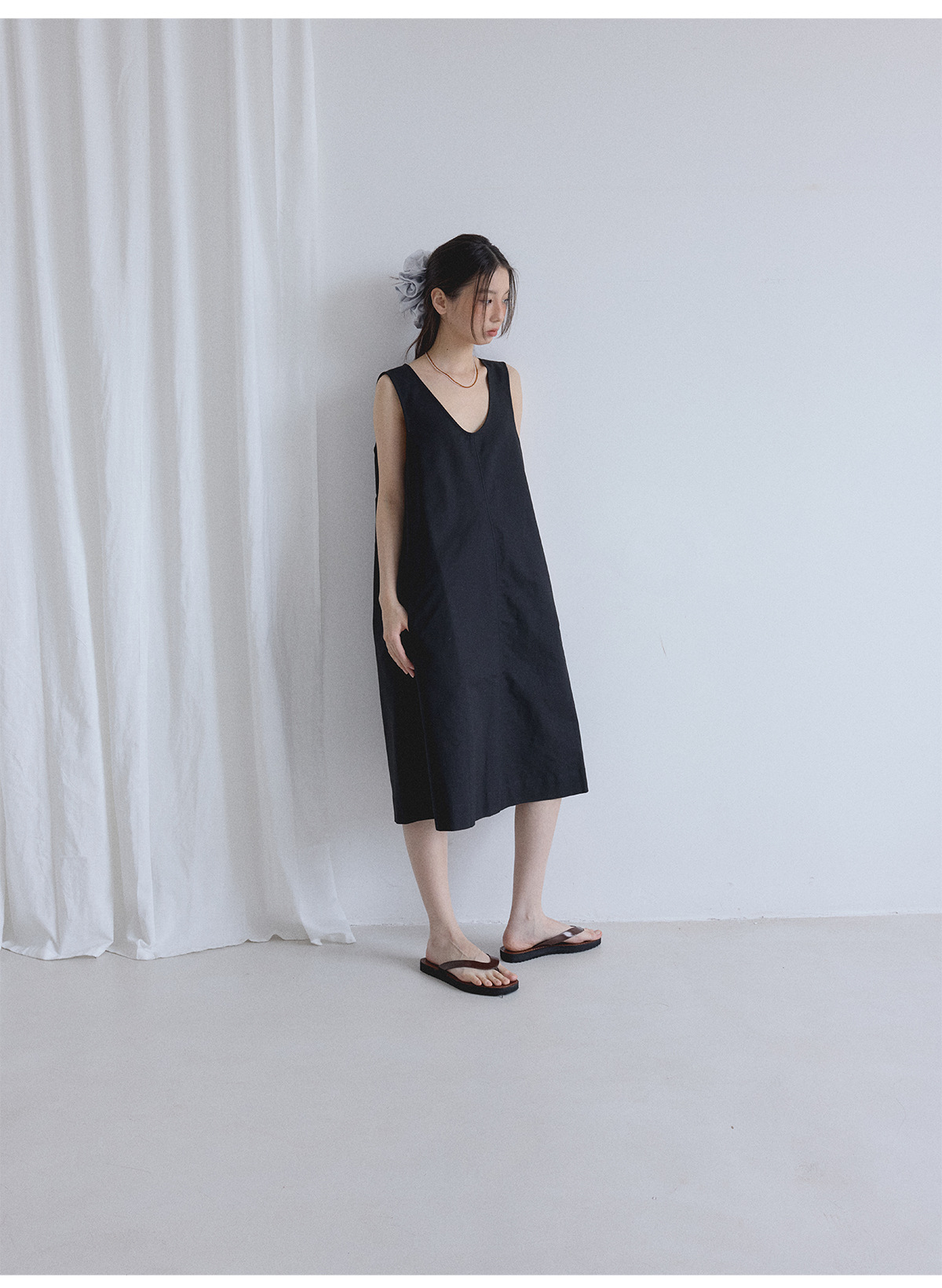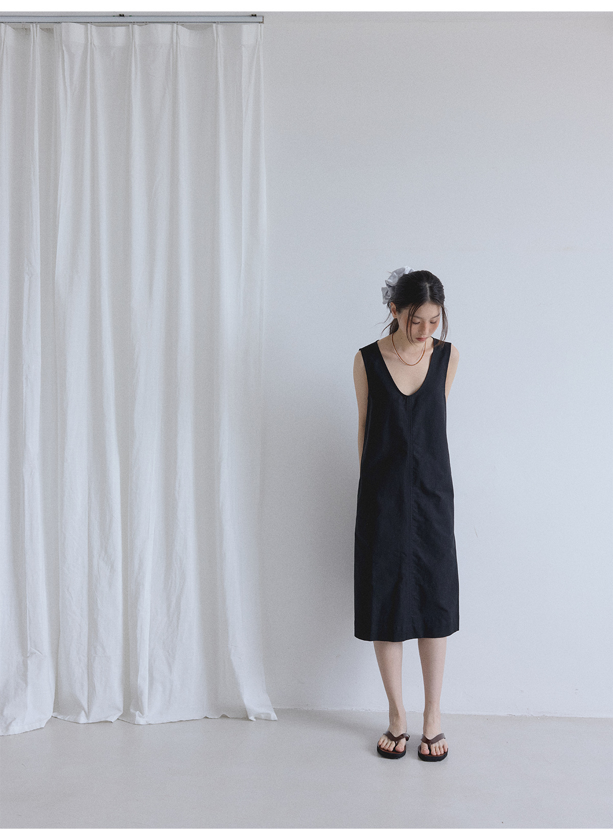 [다이허] 여름 새로운 캐주얼 간단한 쉬운 코튼 U-넥 순수 에디션 솔리드 컬러 조끼 원피스 H8559