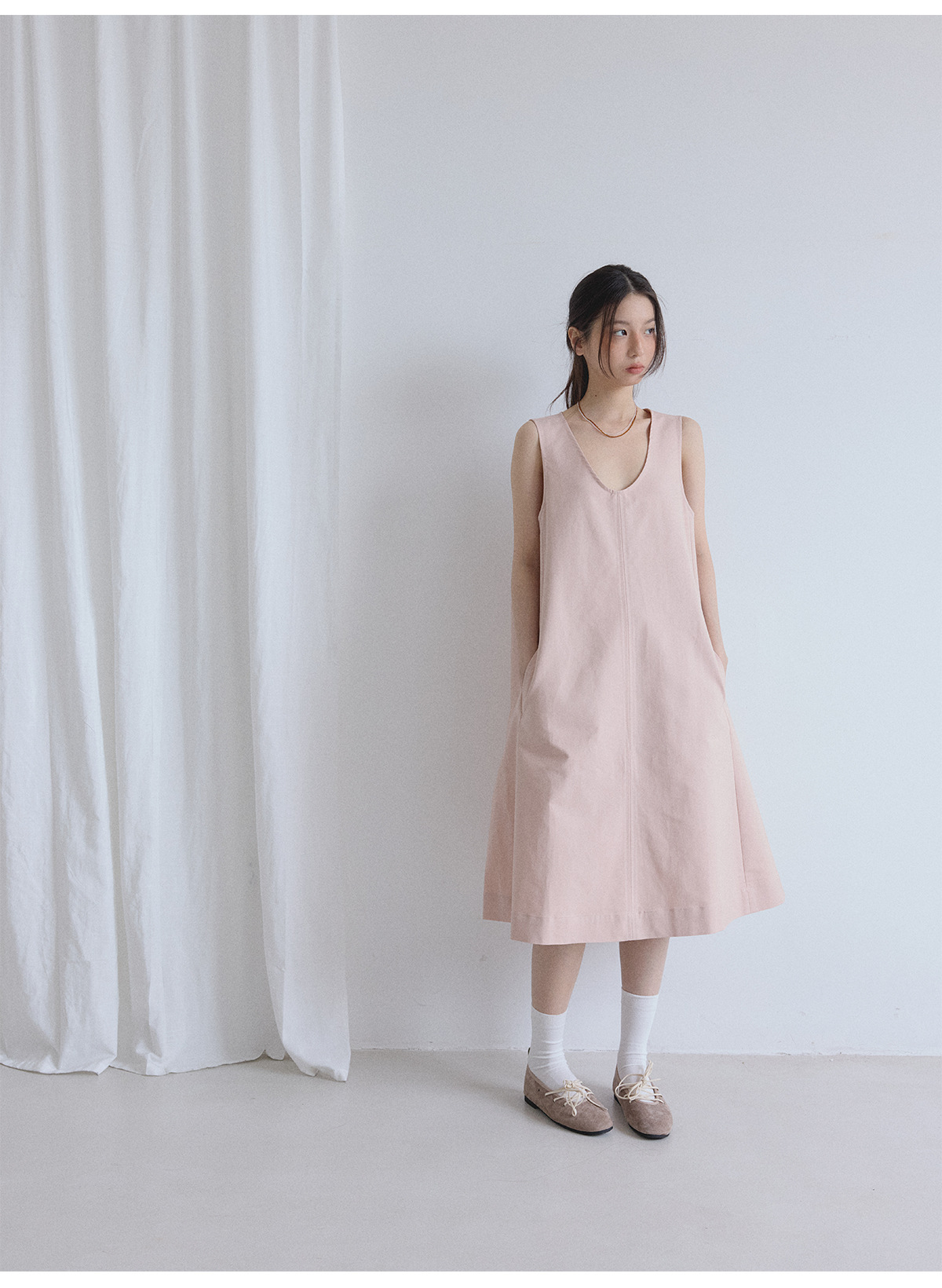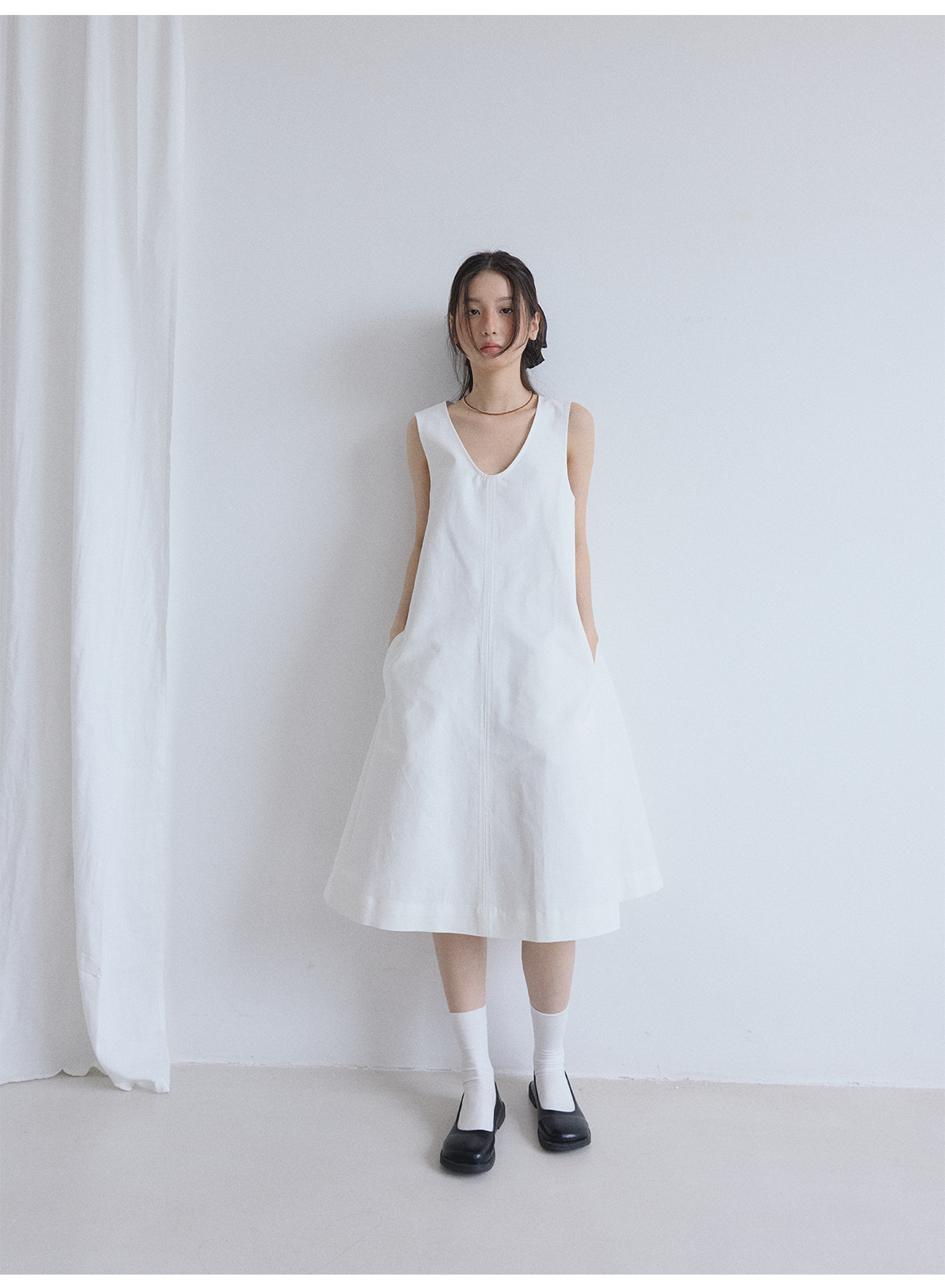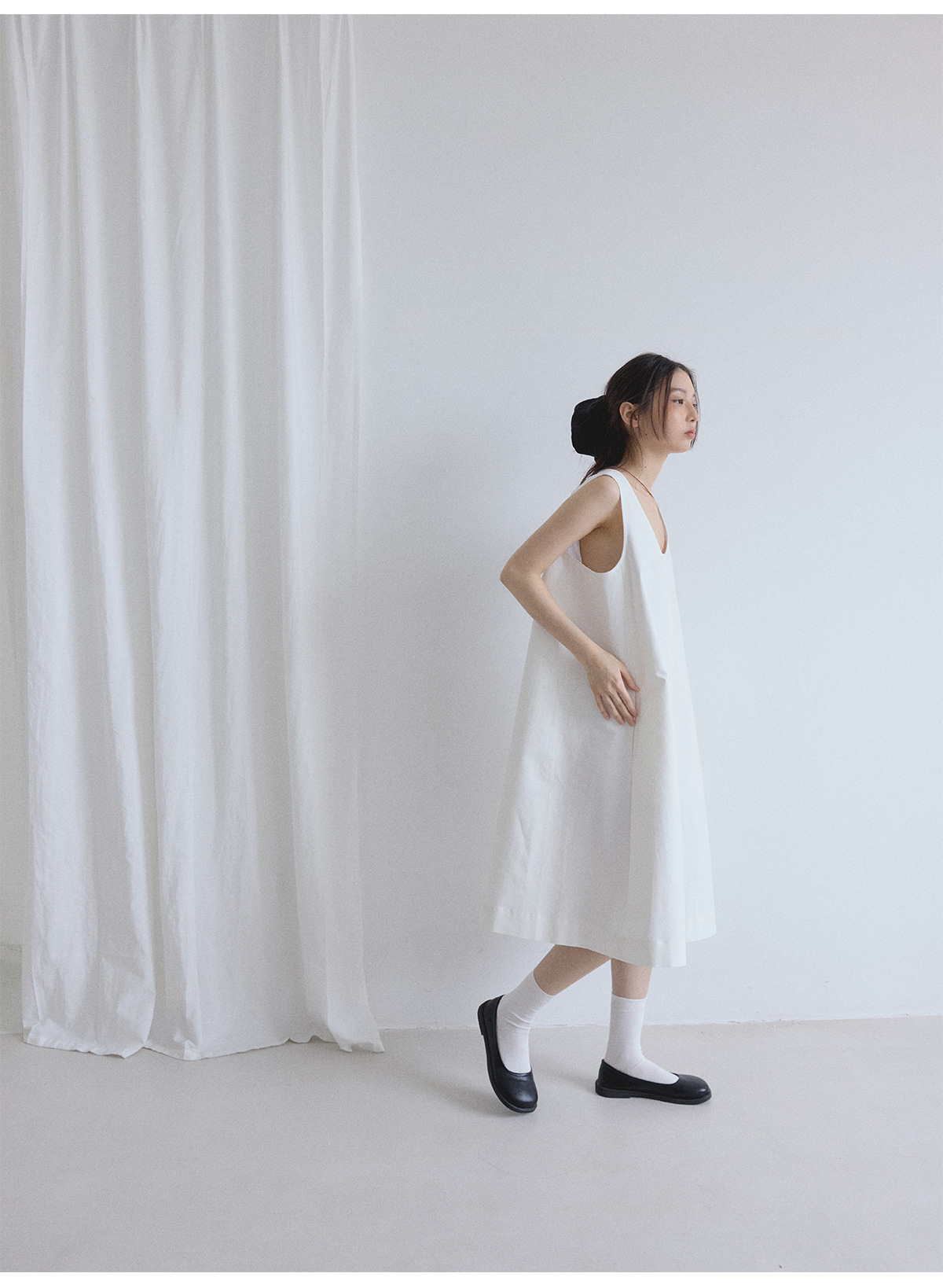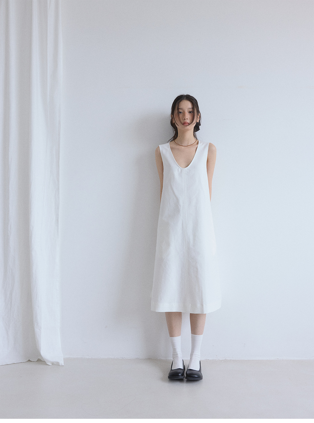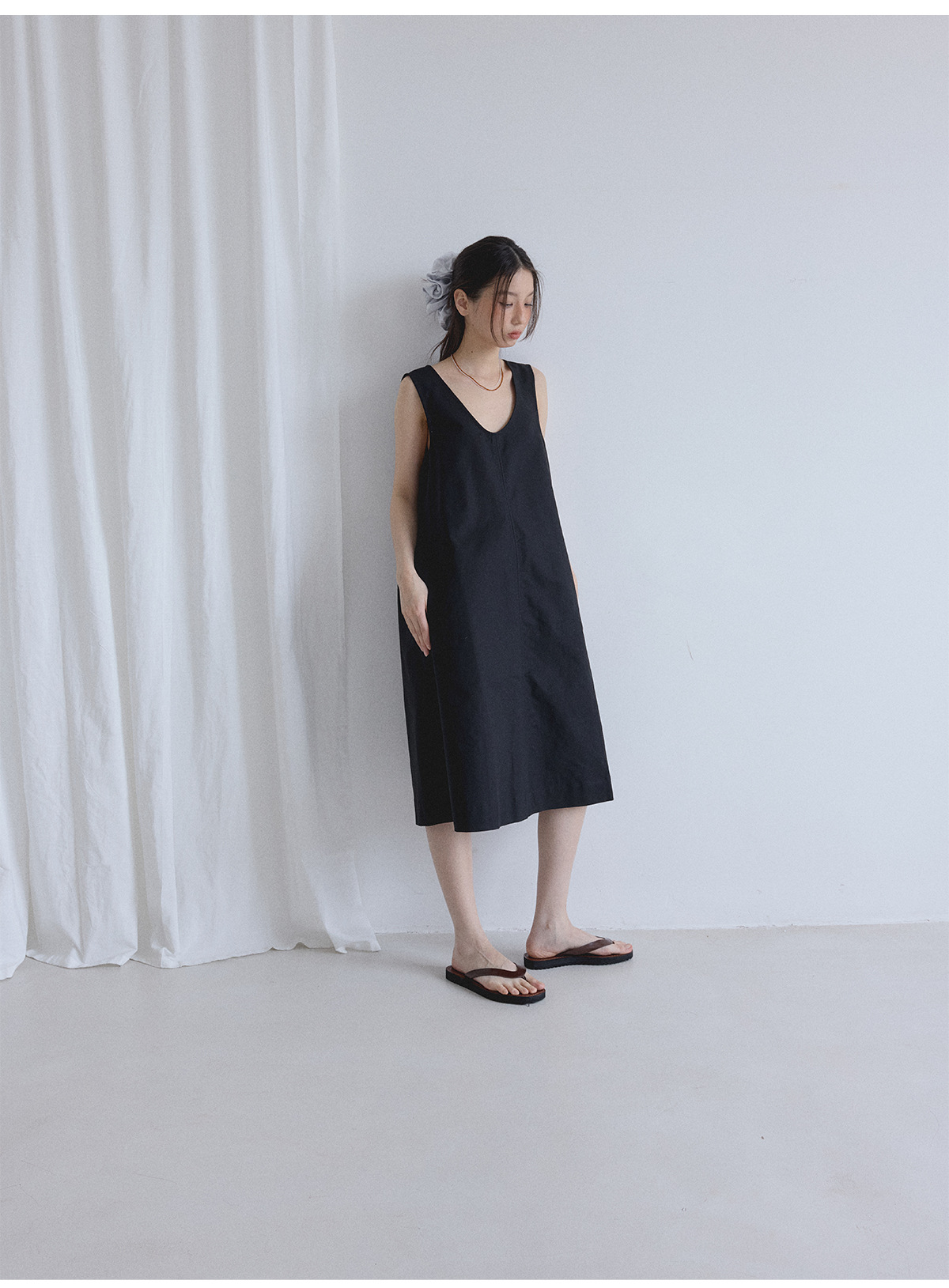 [다이허] 여름 새로운 캐주얼 간단한 쉬운 코튼 U-넥 순수 에디션 솔리드 컬러 조끼 원피스 H8559