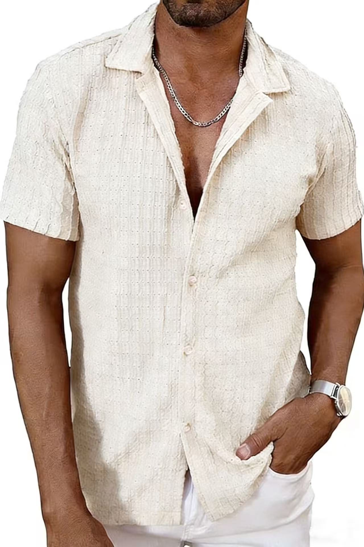 2025년 여름 신상 남성 반팔 상의 유럽 및 미국 패션 니트 빈티지 통기성 시원한 캐주얼 셔츠 남성복