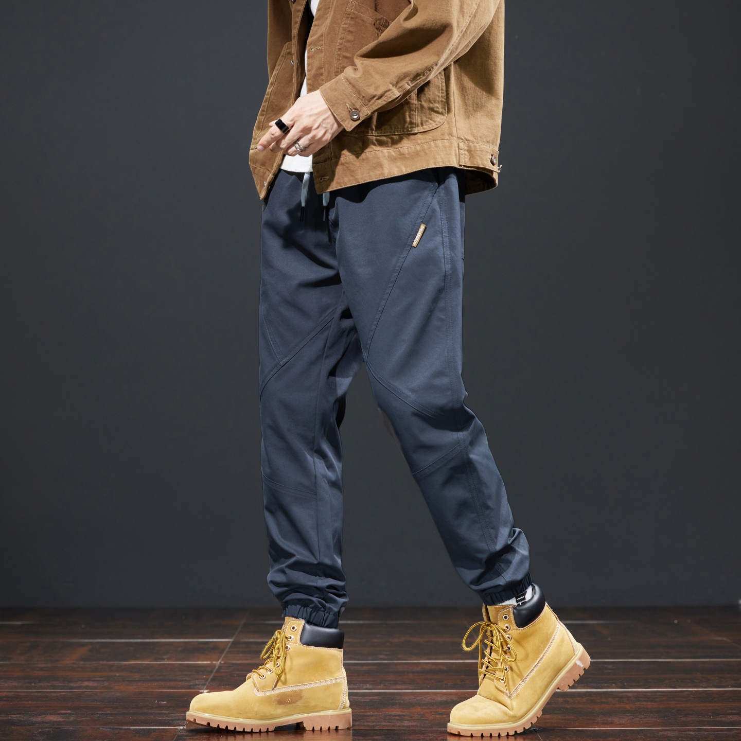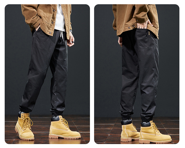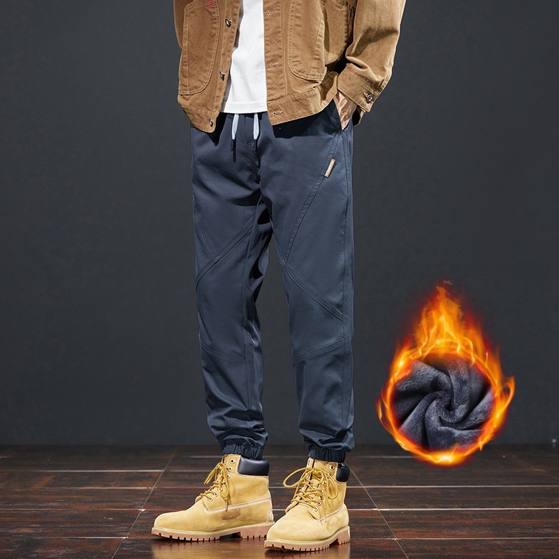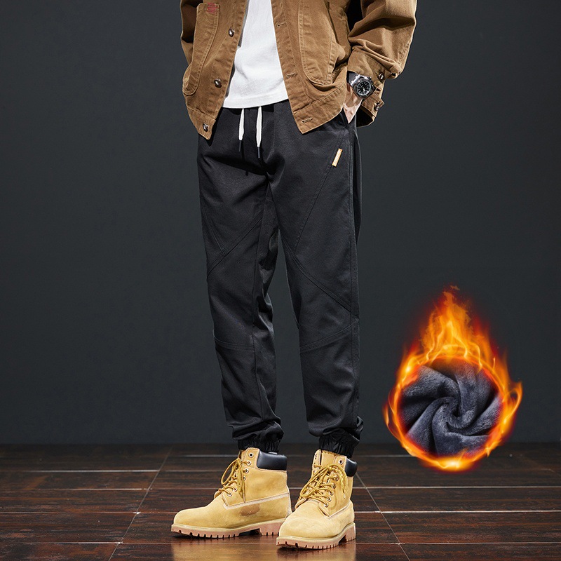 가을 겨울 기모 작업복 캐주얼 바지 남성용 루즈핏 한국 스타일 내구성 스포츠 하렘 바지 남성 패션스토어 가기