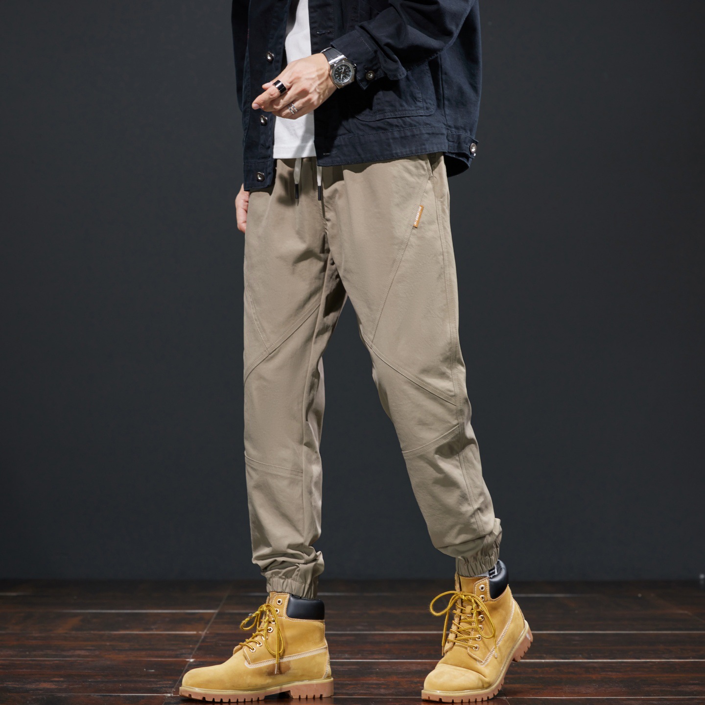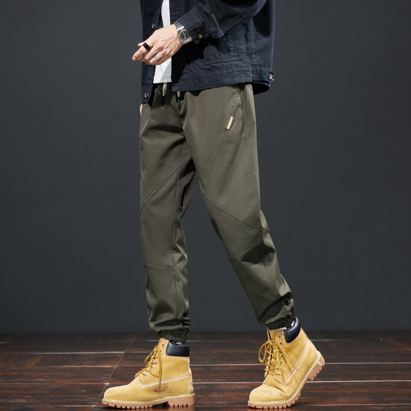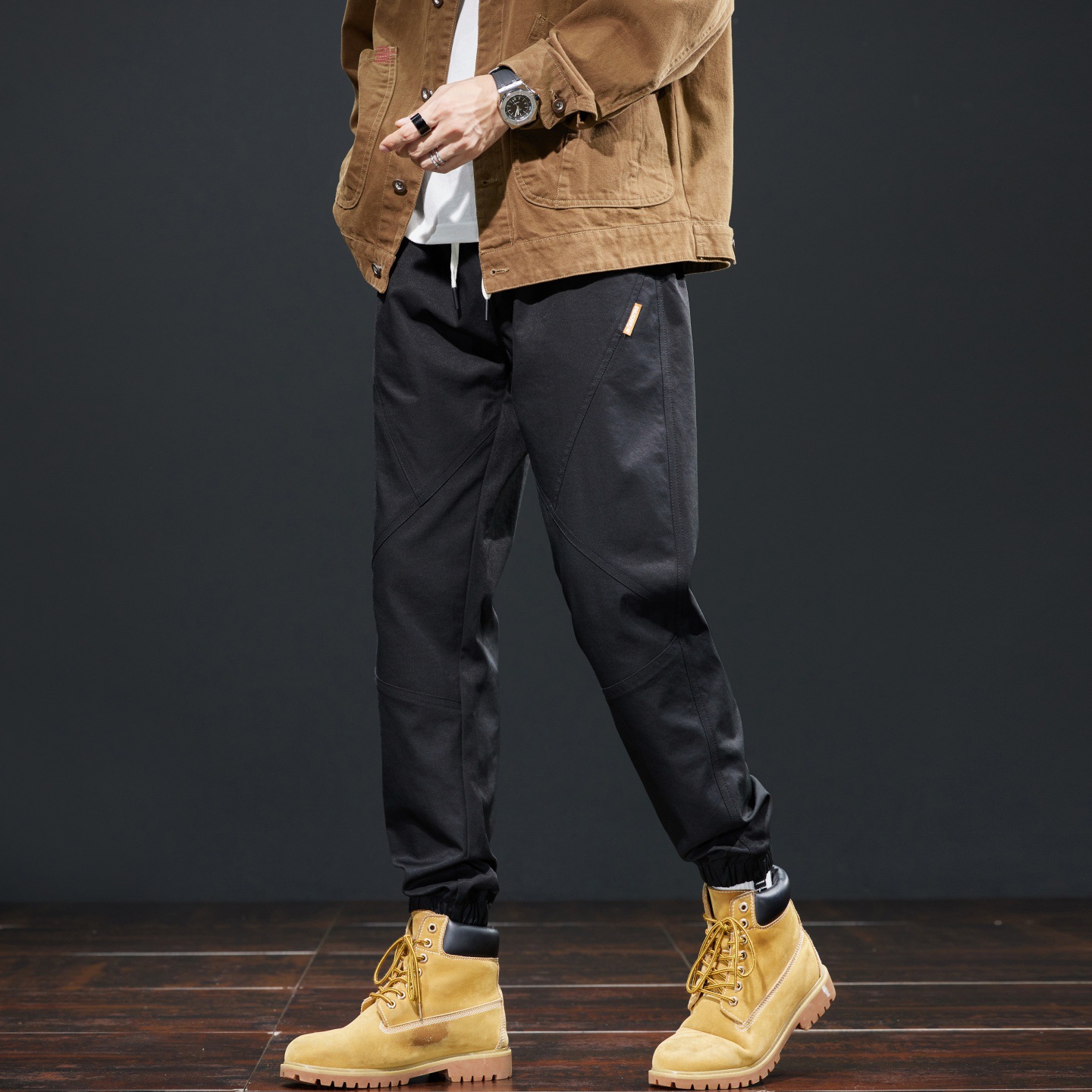 가을 겨울 기모 작업복 캐주얼 바지 남성용 루즈핏 한국 스타일 내구성 스포츠 하렘 바지 남성 패션스토어 가기