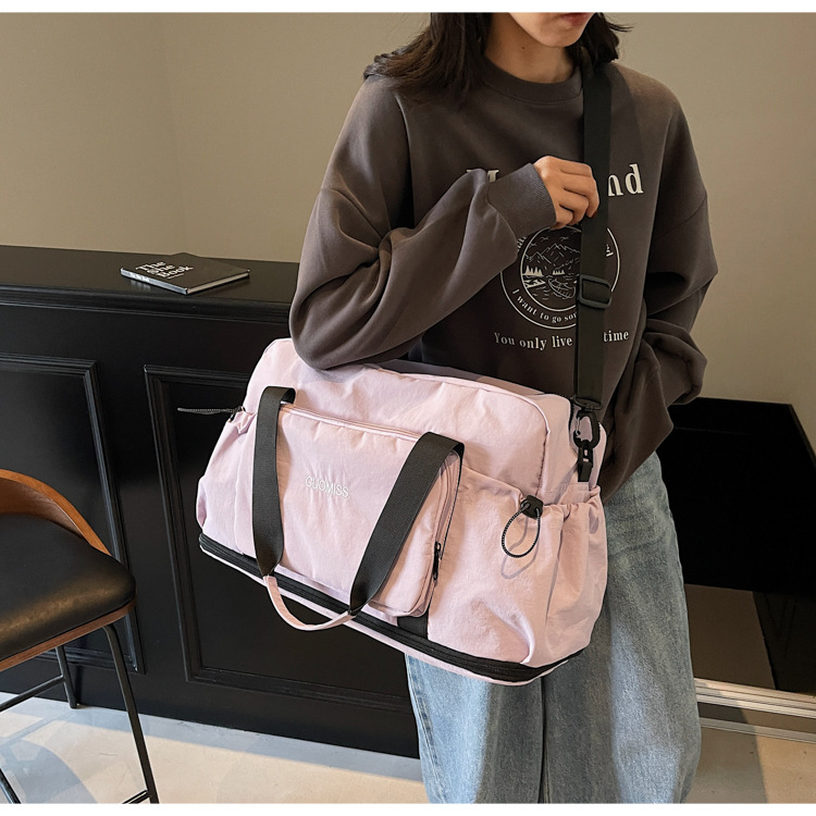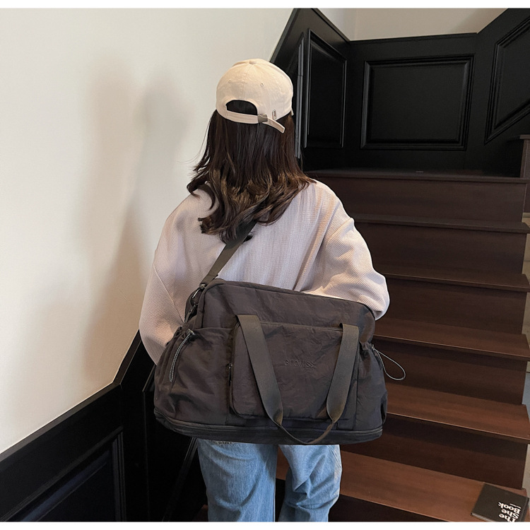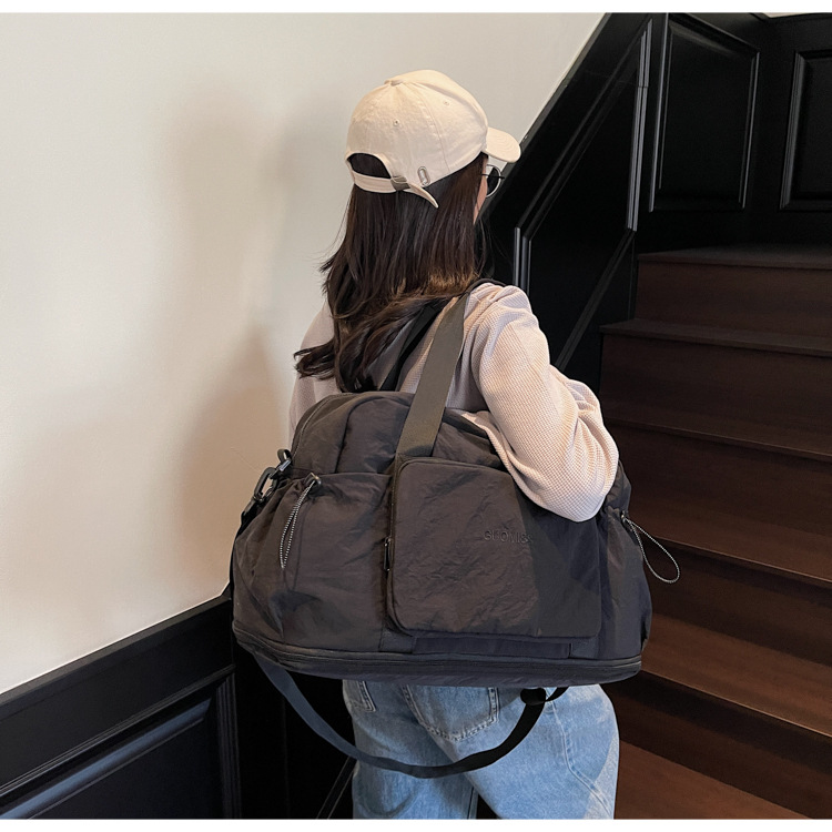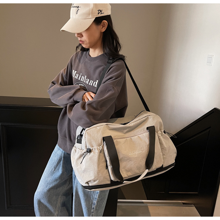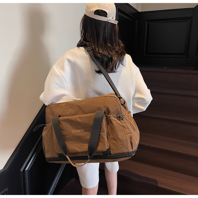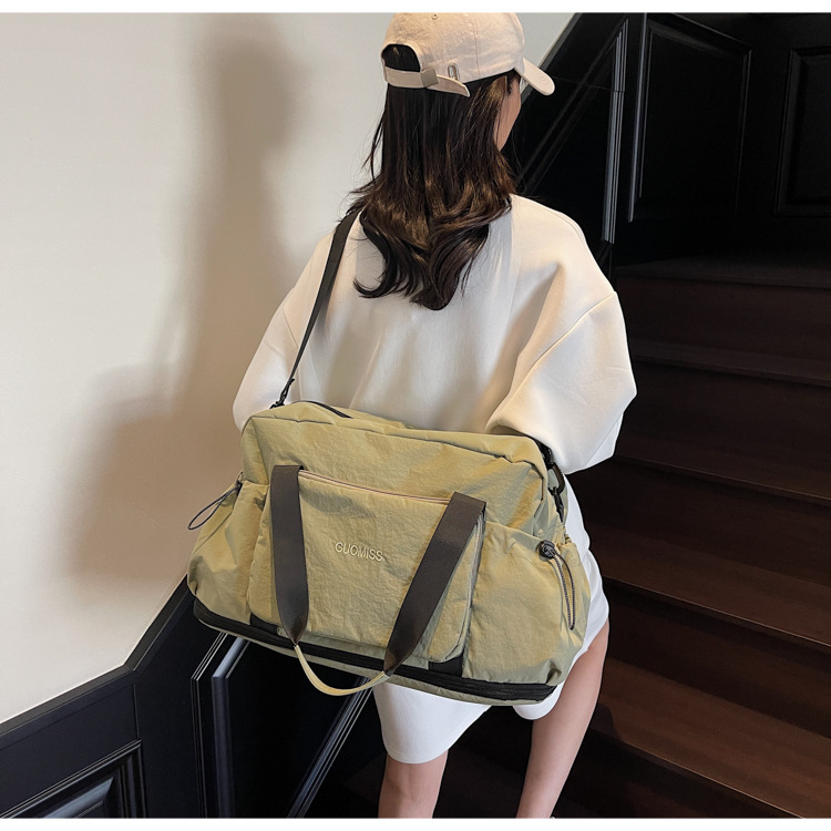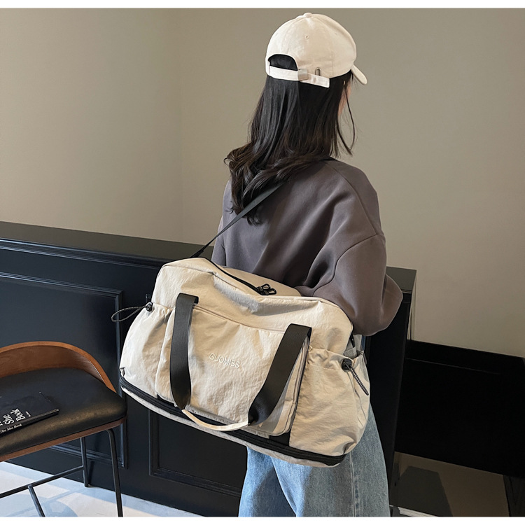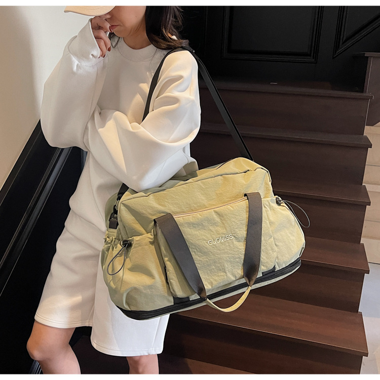 국경 간 레저 스포츠 가방 접이식 대용량 휴대용 여행 가방 건식 및 습식 분리 커버 트롤리 피트니스 요가 가방