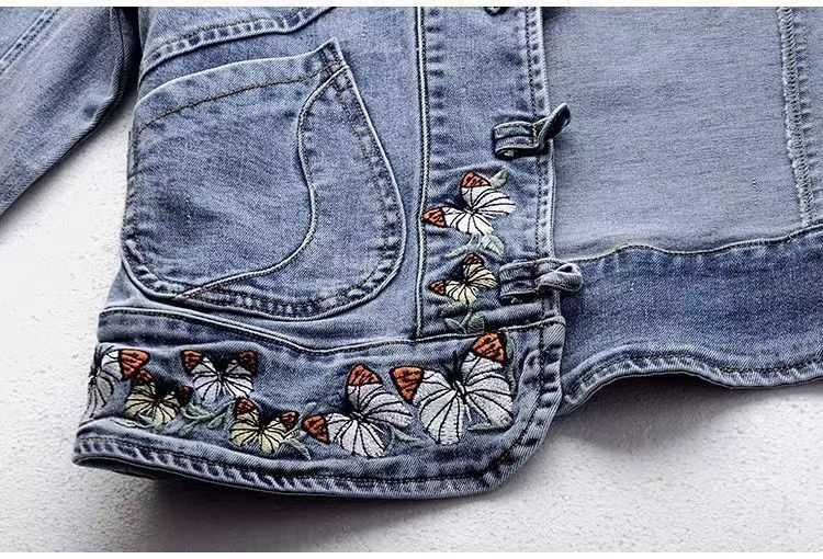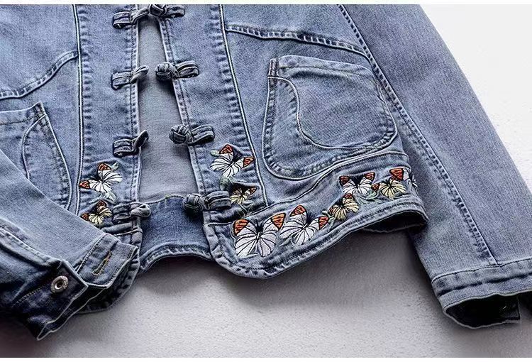 여성을위한 복고풍 중국 스타일 수 놓은 스트레치 짧은 데님 재킷 봄, 가을, 겨울 2023 새로운 재킷 루즈 탑스토어 가기