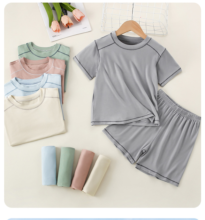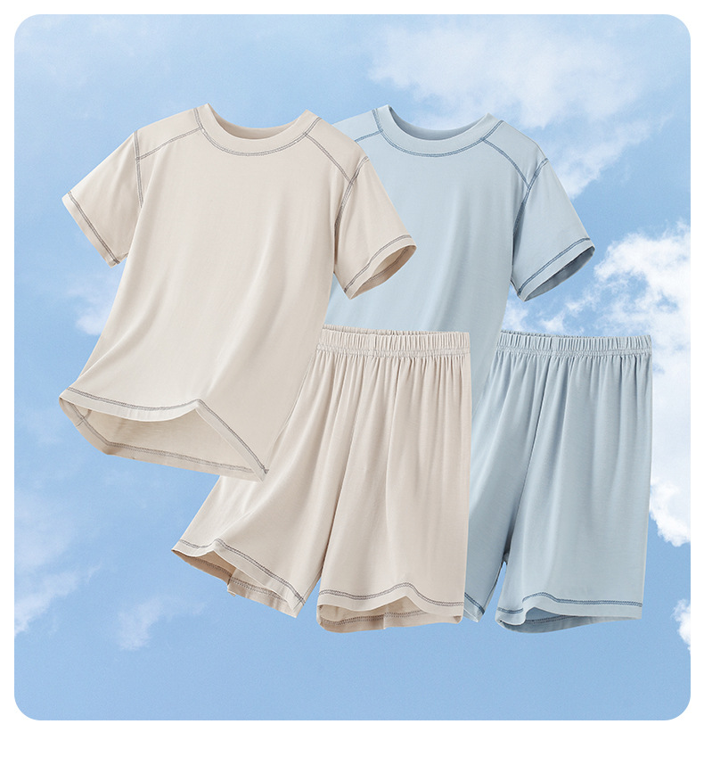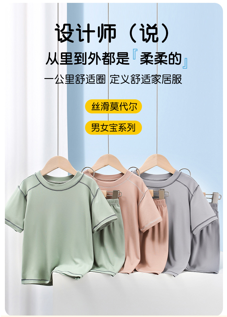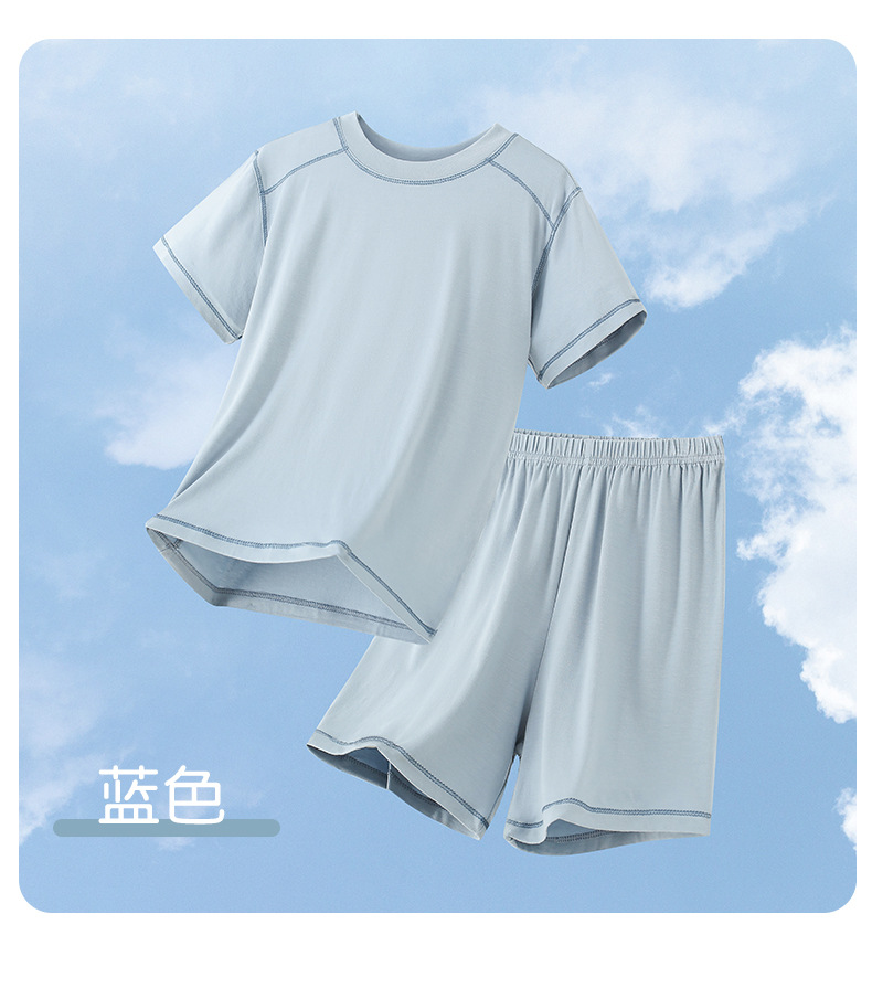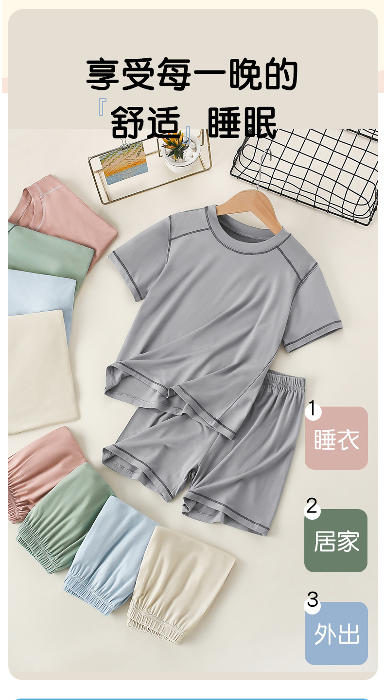 아동용 모달 잠옷, 남아용 가정복, 여아용 반팔 반바지, 중대형 아동용 남아용 아이스 실크 에어컨 슈트스토어 가기