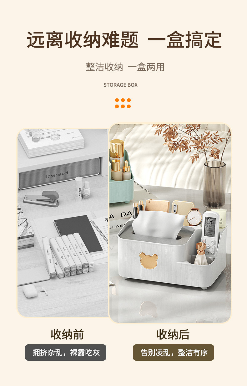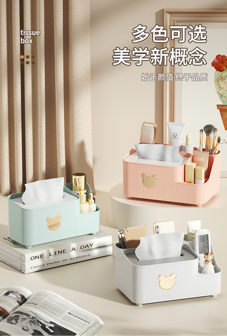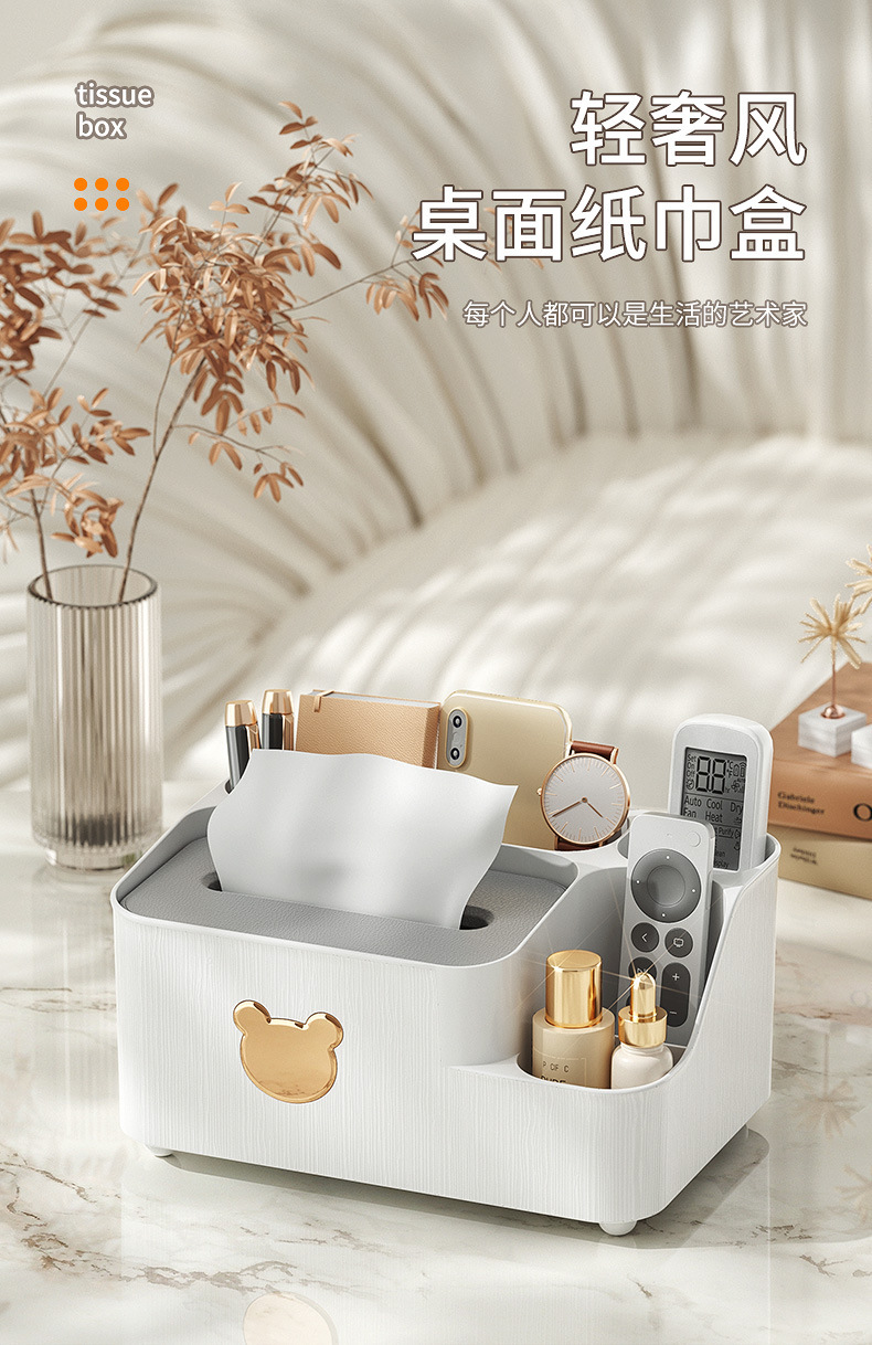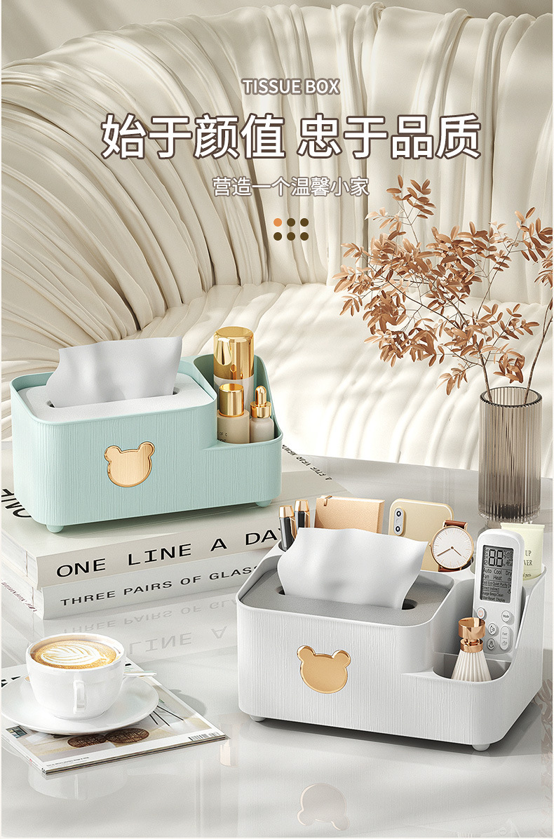 곰 데스크탑 티슈 박스 티슈 보관 상자 홈 거실 레스토랑 커피 테이블 북유럽 간단한 다기능 종이 티슈 박스스토어 가기