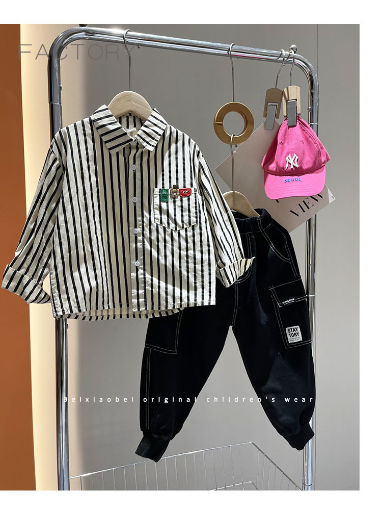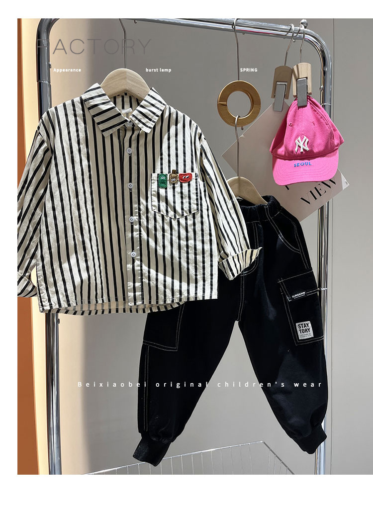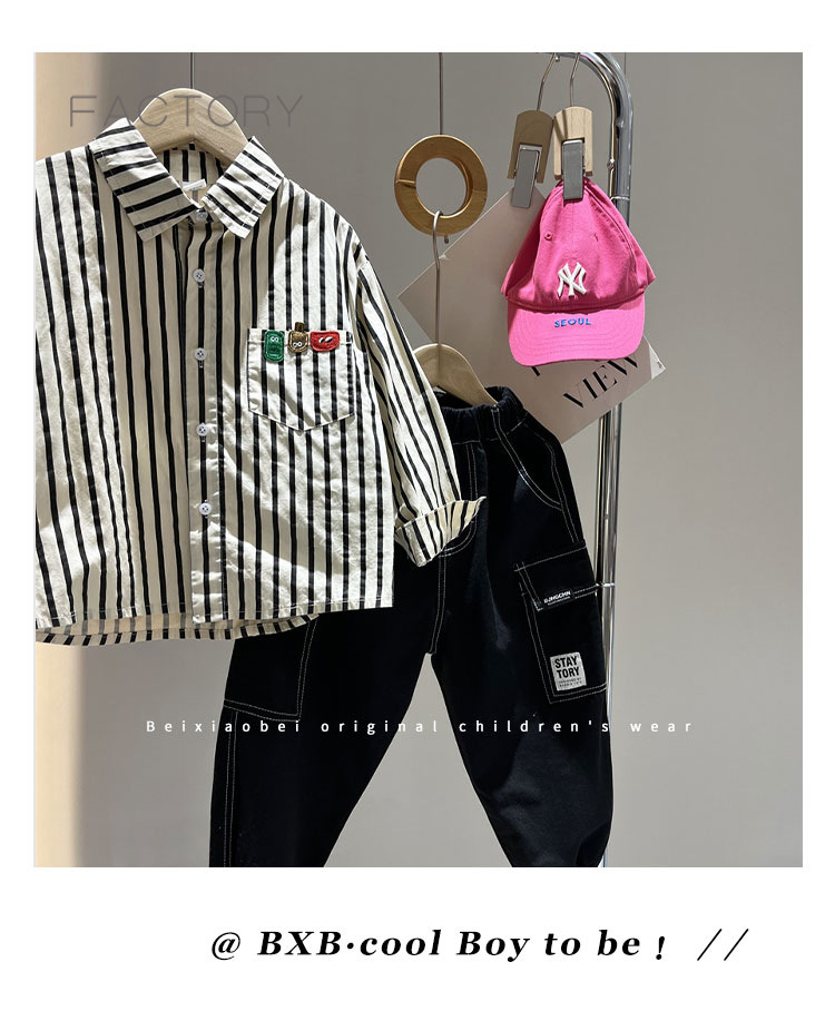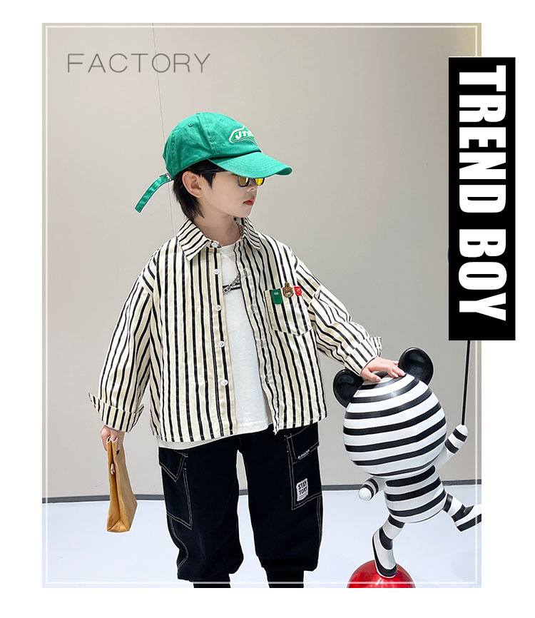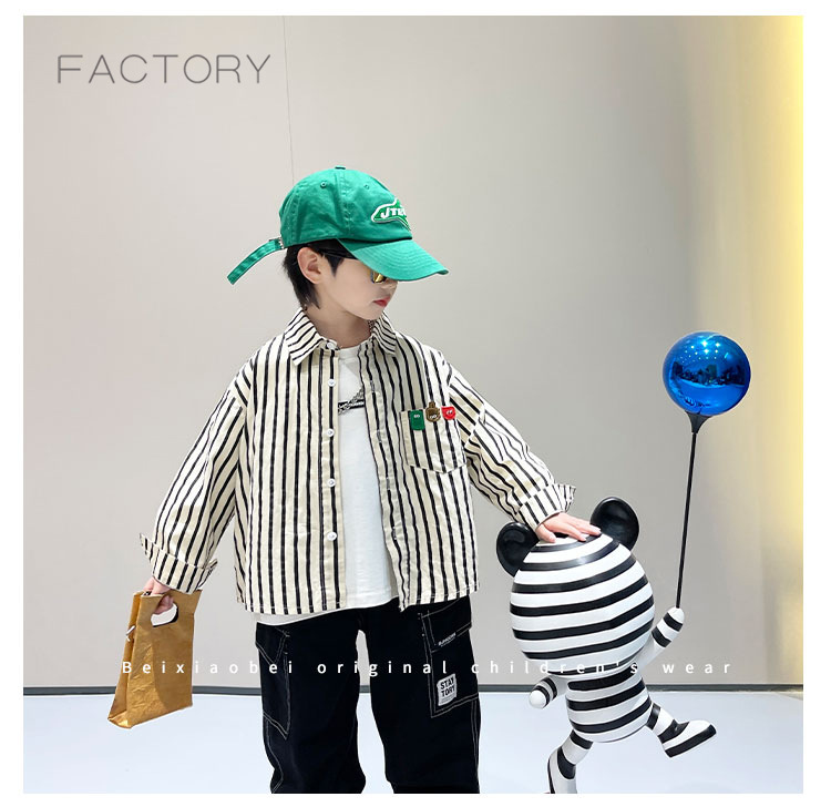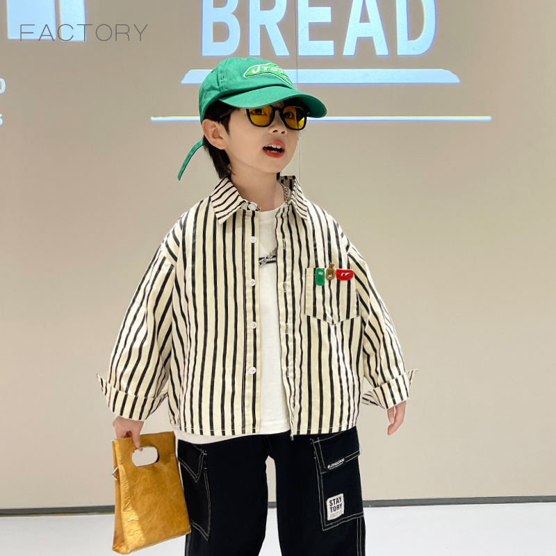 남아용 긴팔 셔츠 2026년 봄 신상 아동용 스타일리쉬 만화 줄무늬 셔츠 아기 멋스럽고 트렌디한 상의스토어 가기