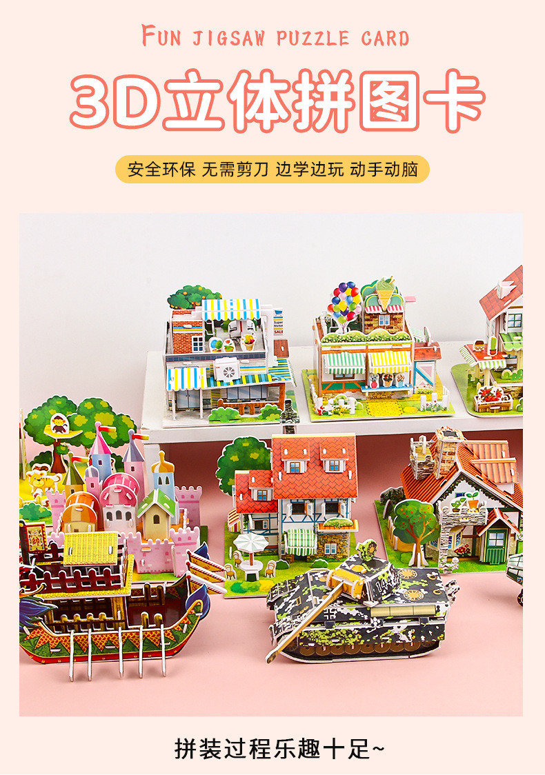 어린이 3D 입체 퍼즐 DIY 탱크 비행기 자동차 모델 조립 교육 장난감 어린 소년 4-9 세 선물스토어 가기