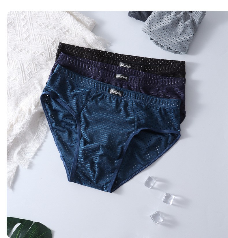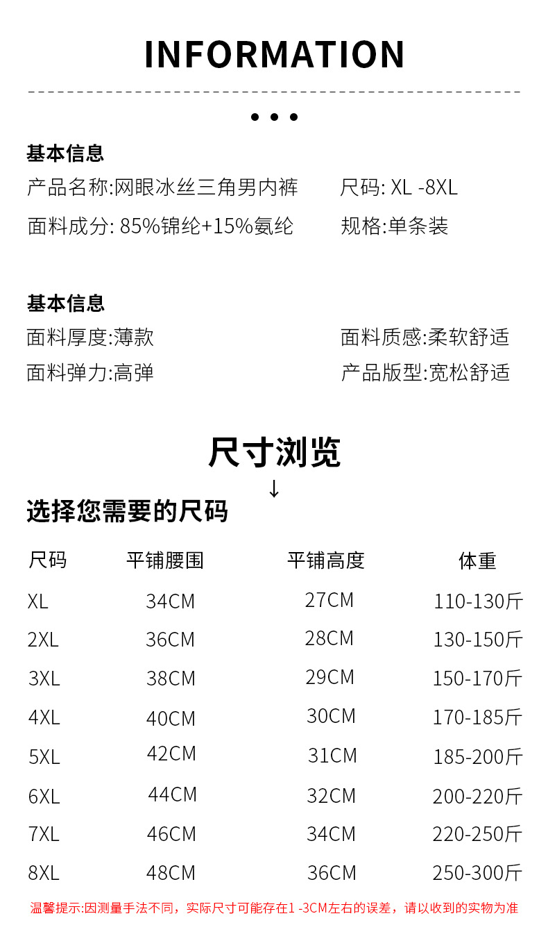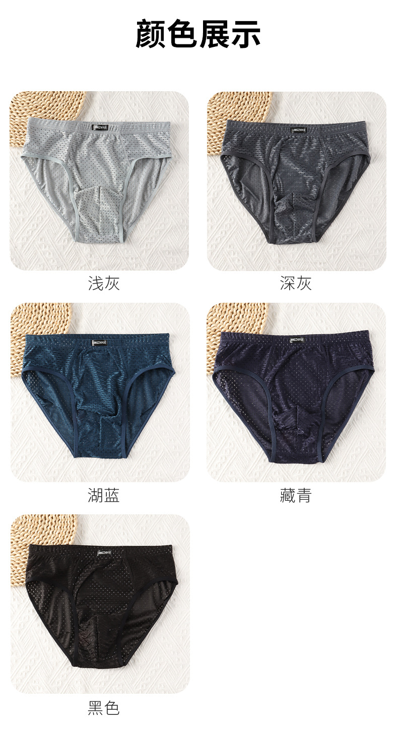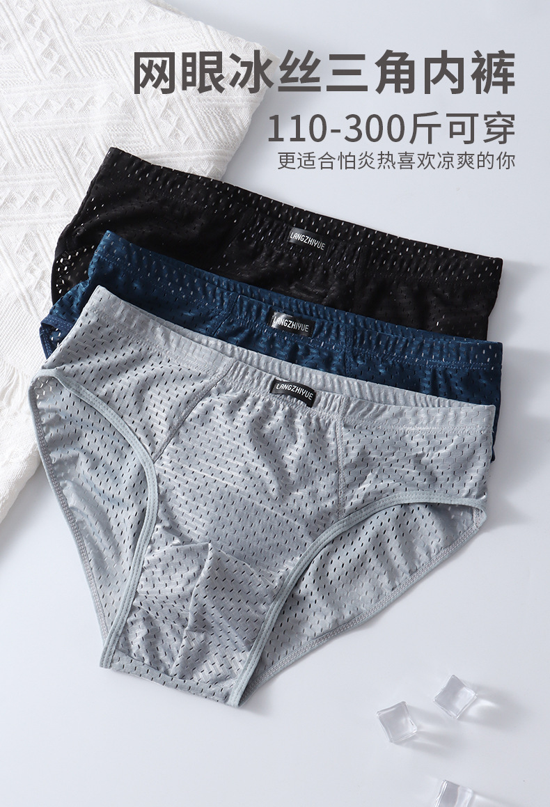 남성 속옷 여름 얼음 메쉬 통기성 팬티 얇은 시원한 느낌 플러스 뚱뚱한 대형 하이 웨이스트 깊은 가랑이 150kg