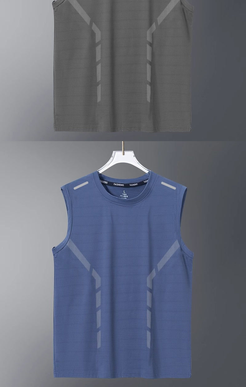 여름 남성용 아이스 실크 통기성 조끼 스포츠 피트니스 바닥 셔츠 넓은 어깨 트레이닝 민소매 티셔츠 조끼 속건성