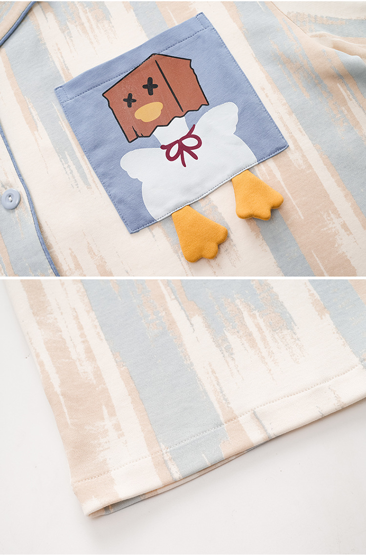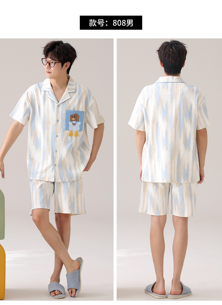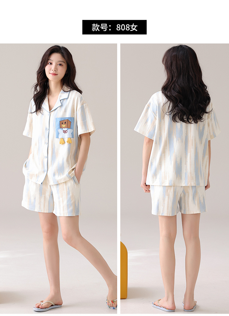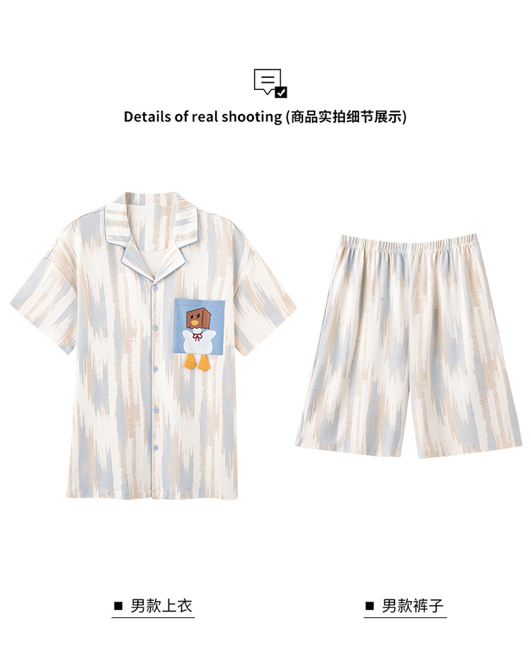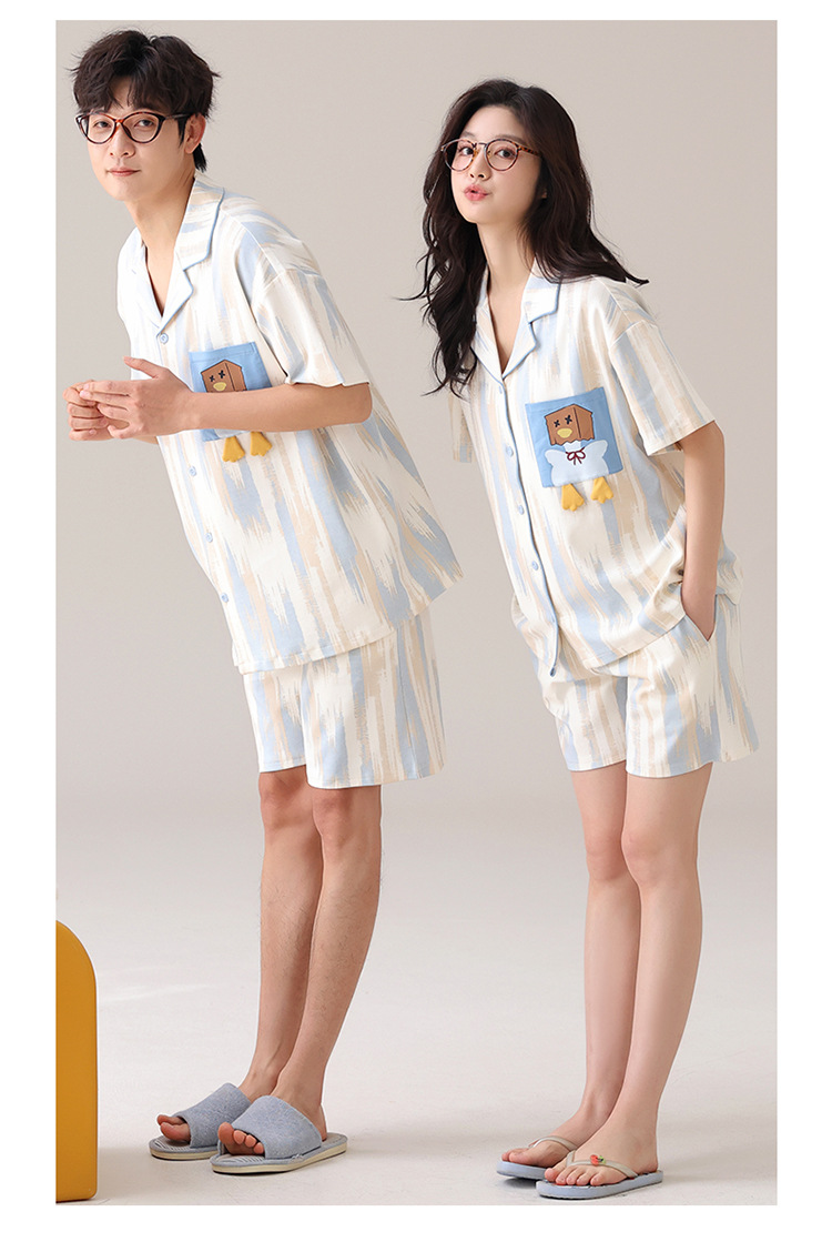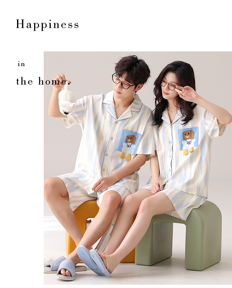 새로운 여름 커플 잠옷 면 반팔 만화 남성과 여성의 옷깃 얇은 홈 옷 투피스 세트스토어 가기