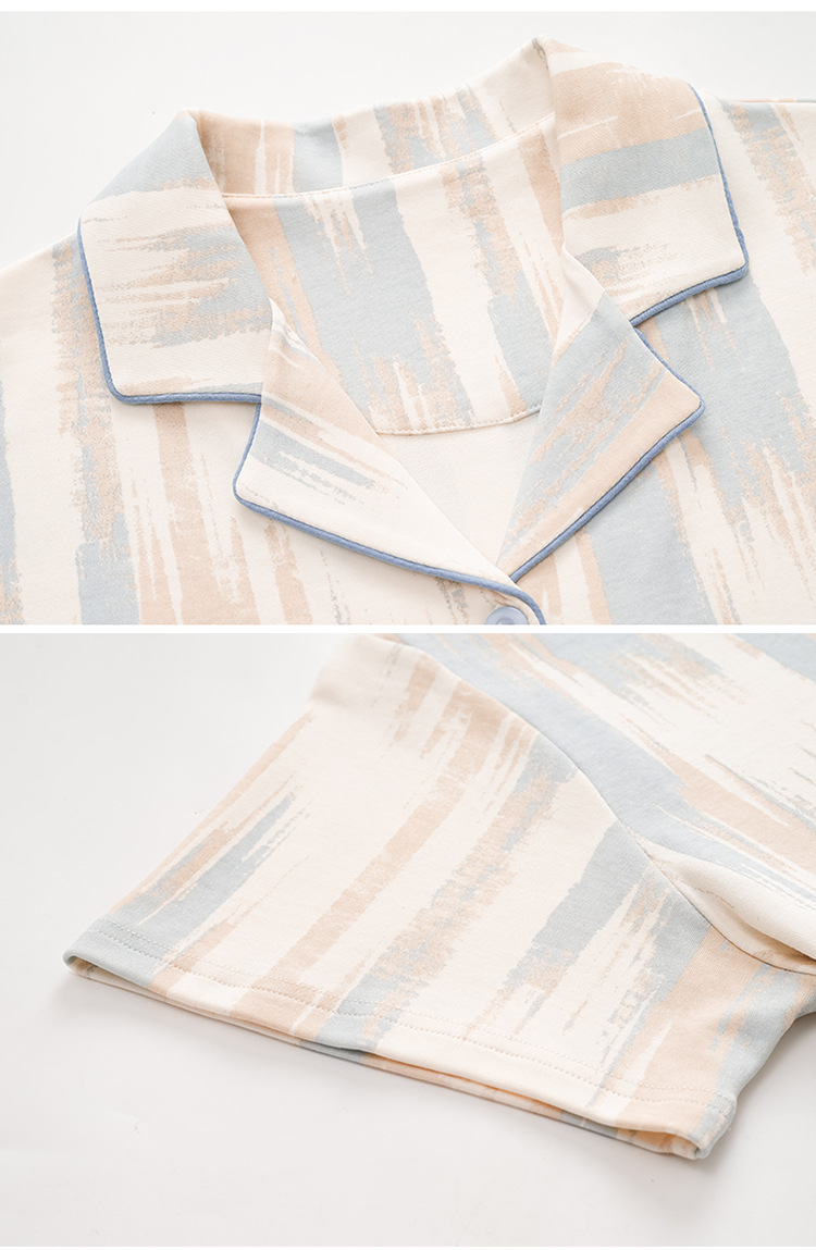 새로운 여름 커플 잠옷 면 반팔 만화 남성과 여성의 옷깃 얇은 홈 옷 투피스 세트