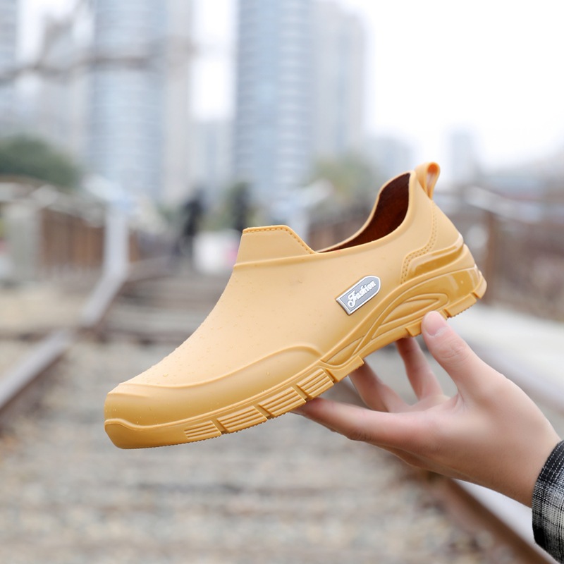 패션 로우 탑 비 신발 남성용 방수 미끄럼 방지 두꺼운 바닥 내마모성 얕은 입 신발 세차 주방 요리사 작업 고무 신발스토어 가기