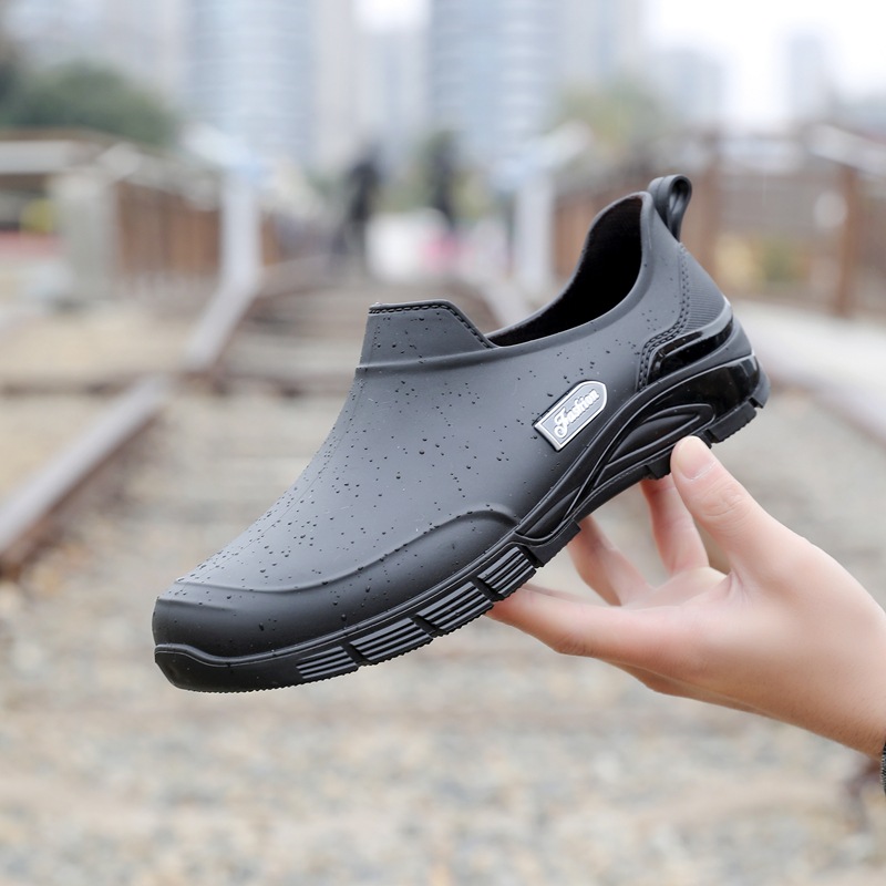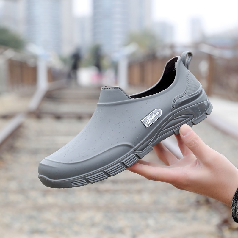 패션 로우 탑 비 신발 남성용 방수 미끄럼 방지 두꺼운 바닥 내마모성 얕은 입 신발 세차 주방 요리사 작업 고무 신발