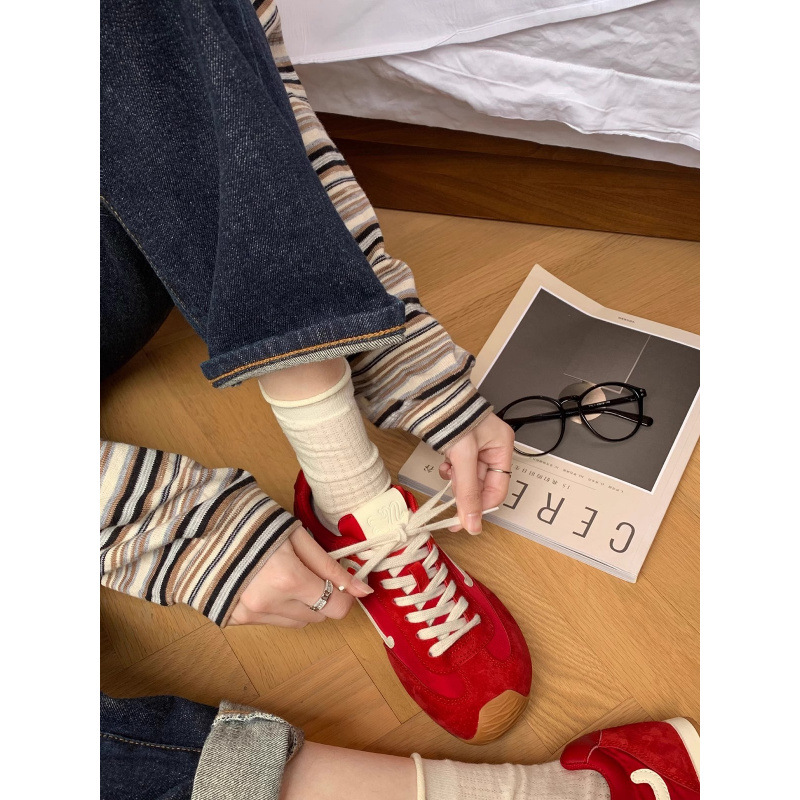 Cowhide Edition 정품 가죽 플랫 내부 높이 증가 독일 훈련 신발 여성의 2025 봄 미운 귀여운 레트로 포레스트 검프 신발 캐주얼 운동화스토어 가기