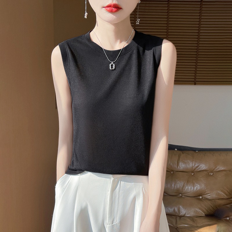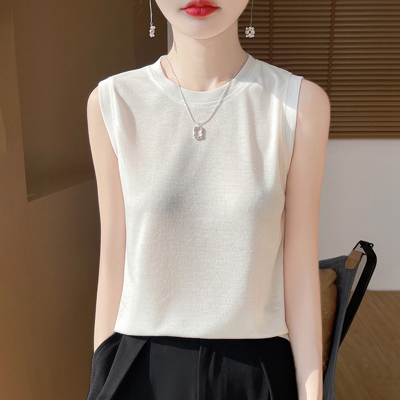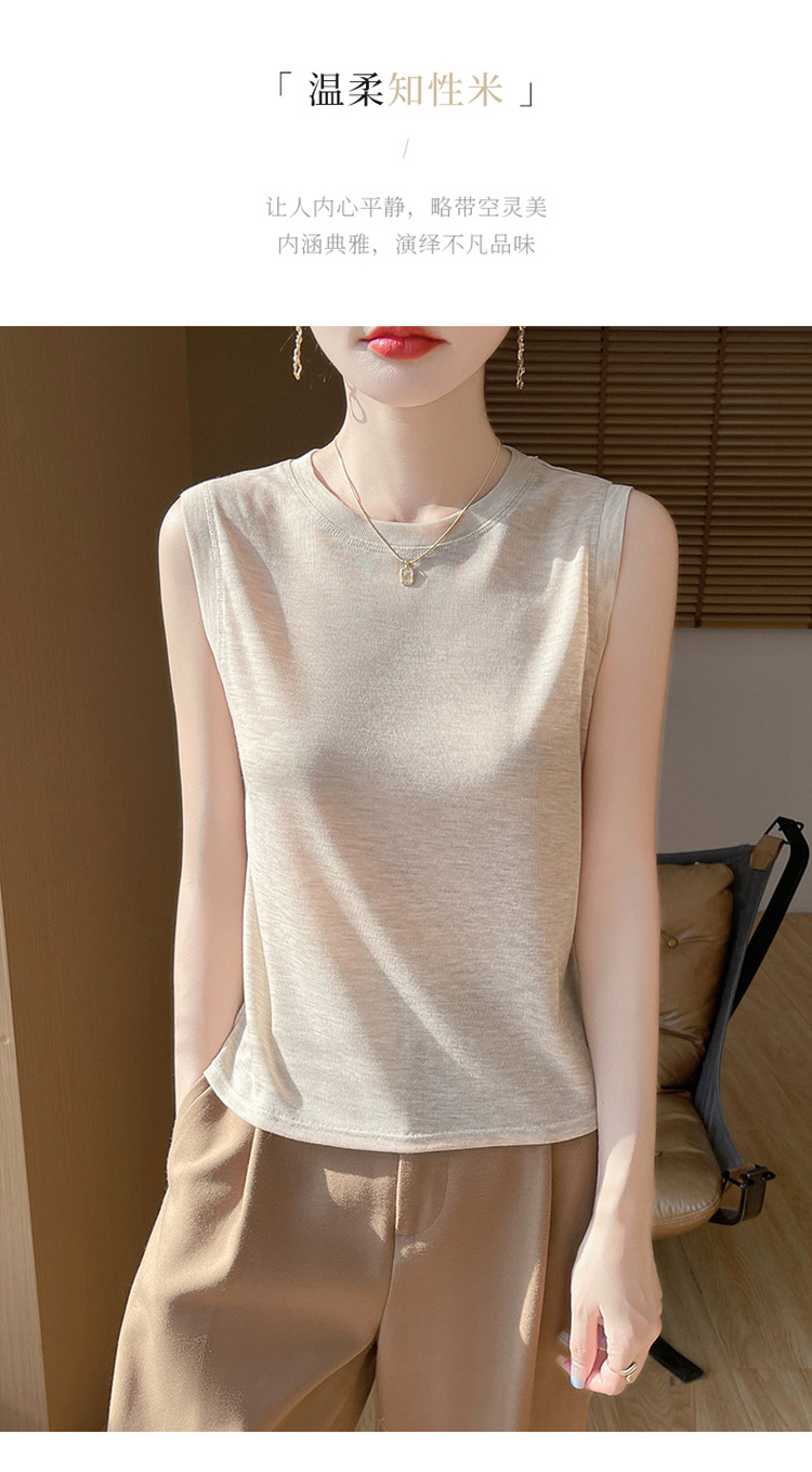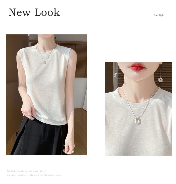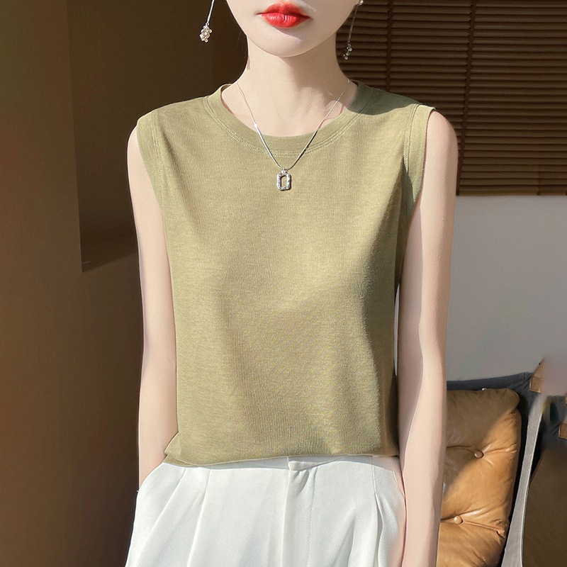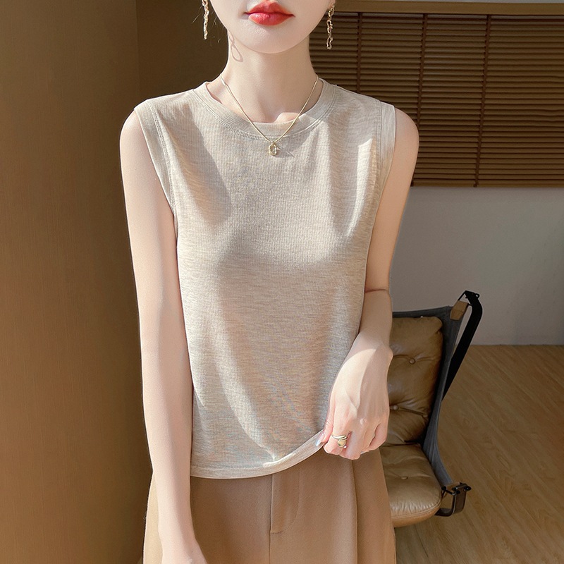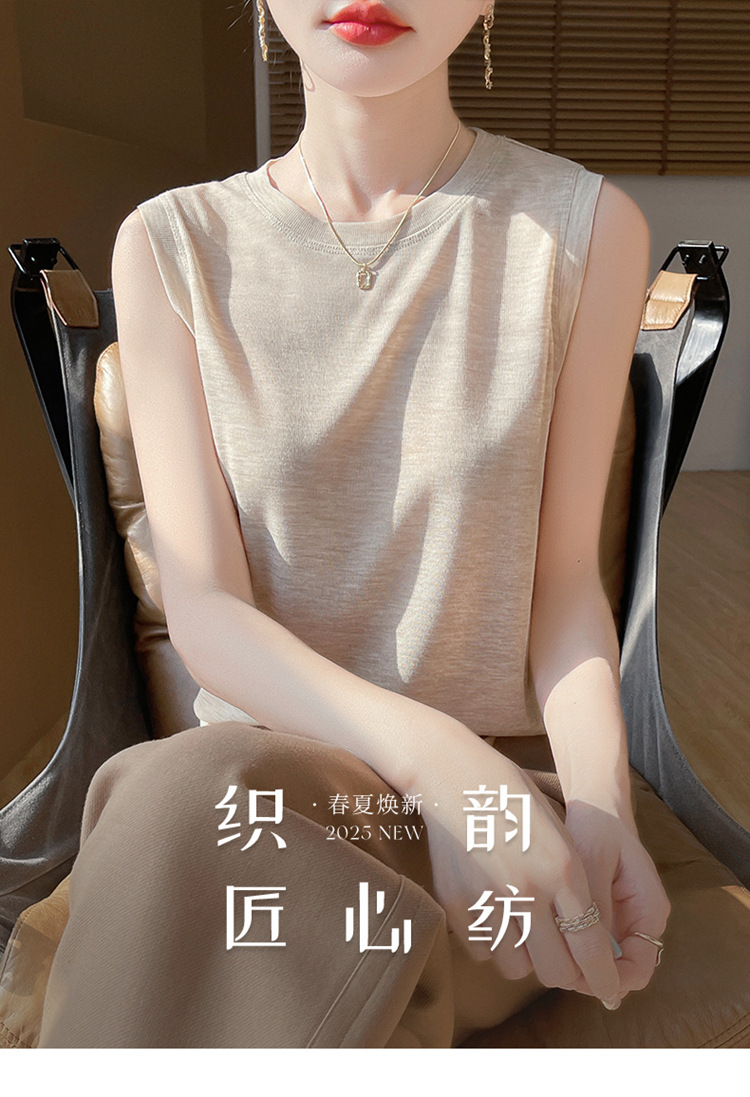 2025년 여름 신상품, 고급스러운 라운드넥 니트 민소매 캐미솔 여성용 얇은 이너웨어 탑스토어 가기