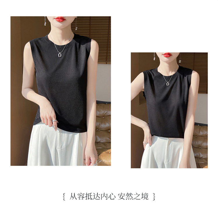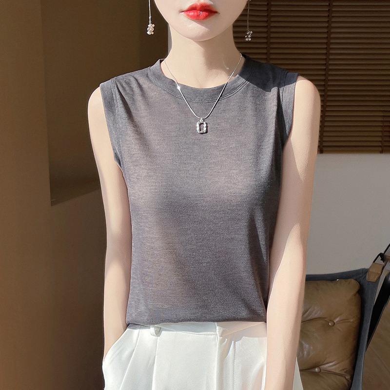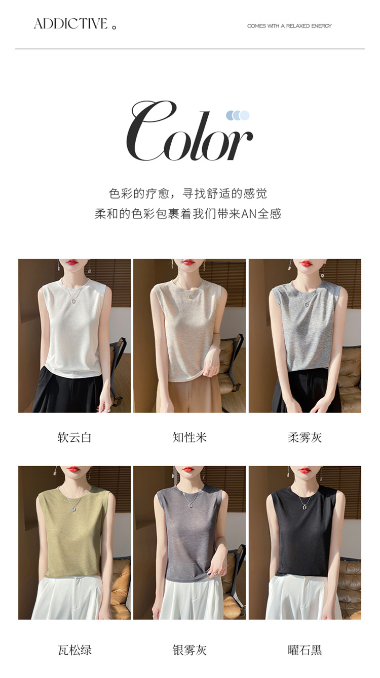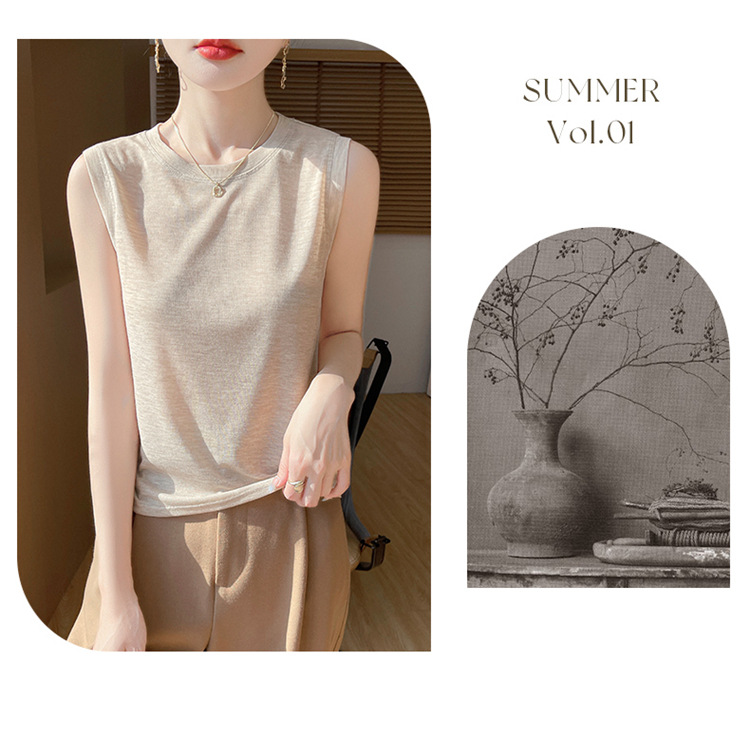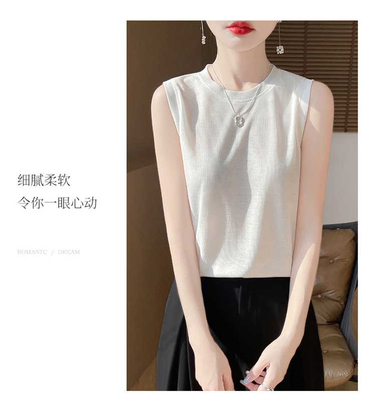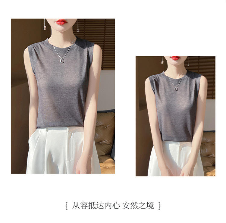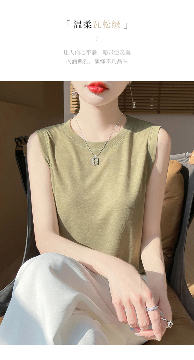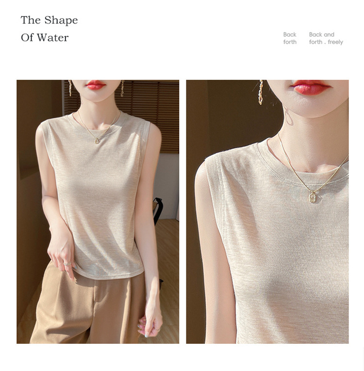 2025년 여름 신상품, 고급스러운 라운드넥 니트 민소매 캐미솔 여성용 얇은 이너웨어 탑스토어 가기
