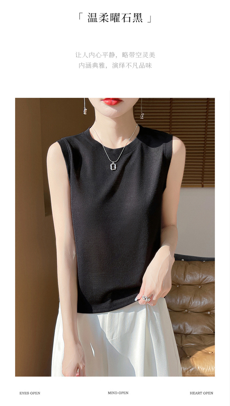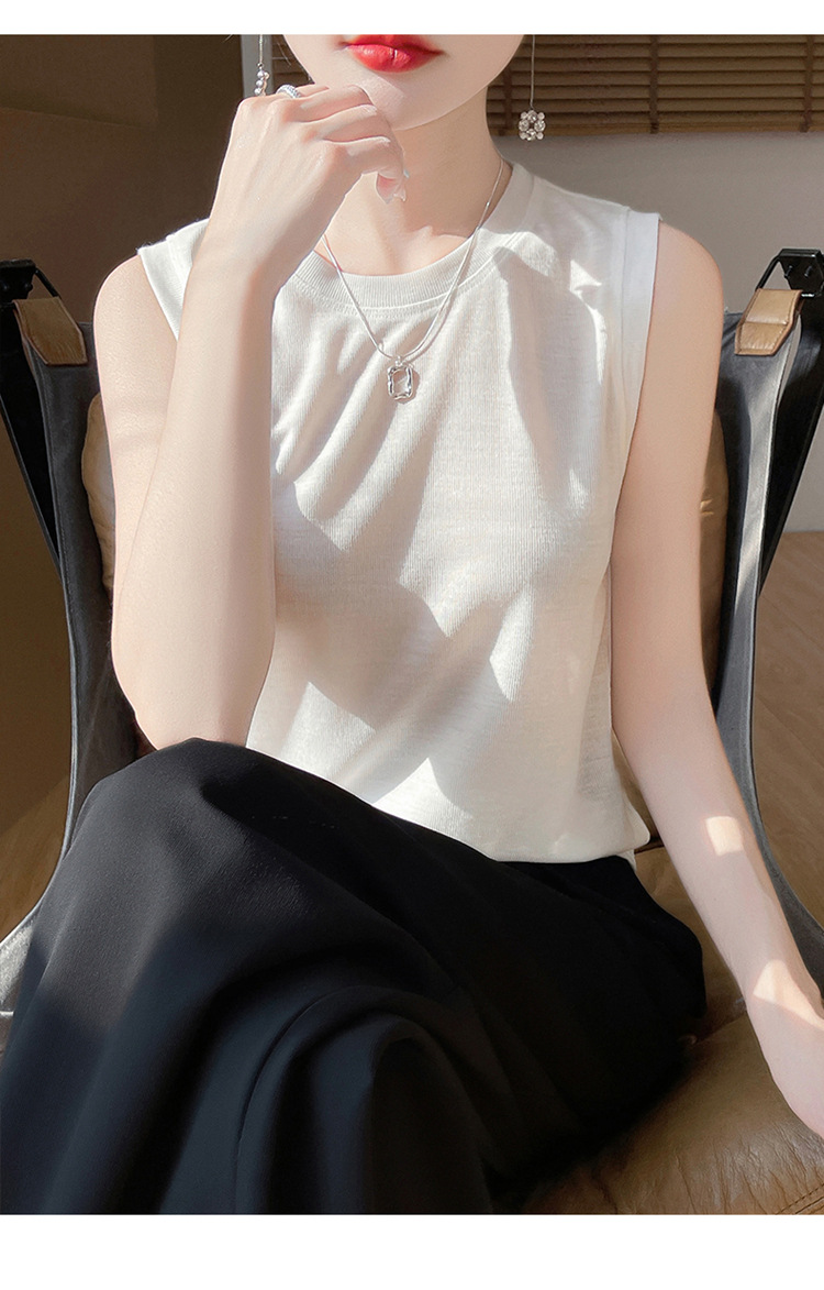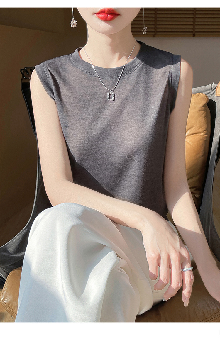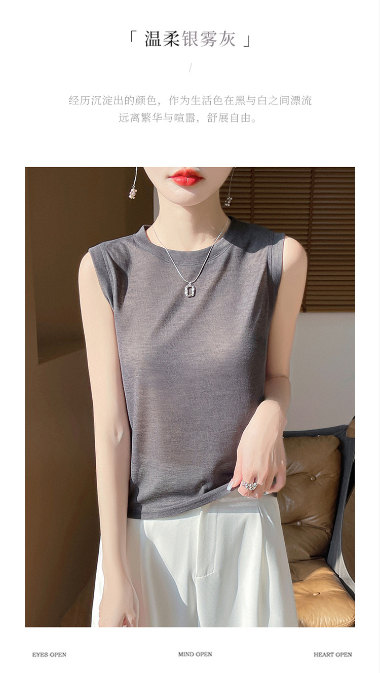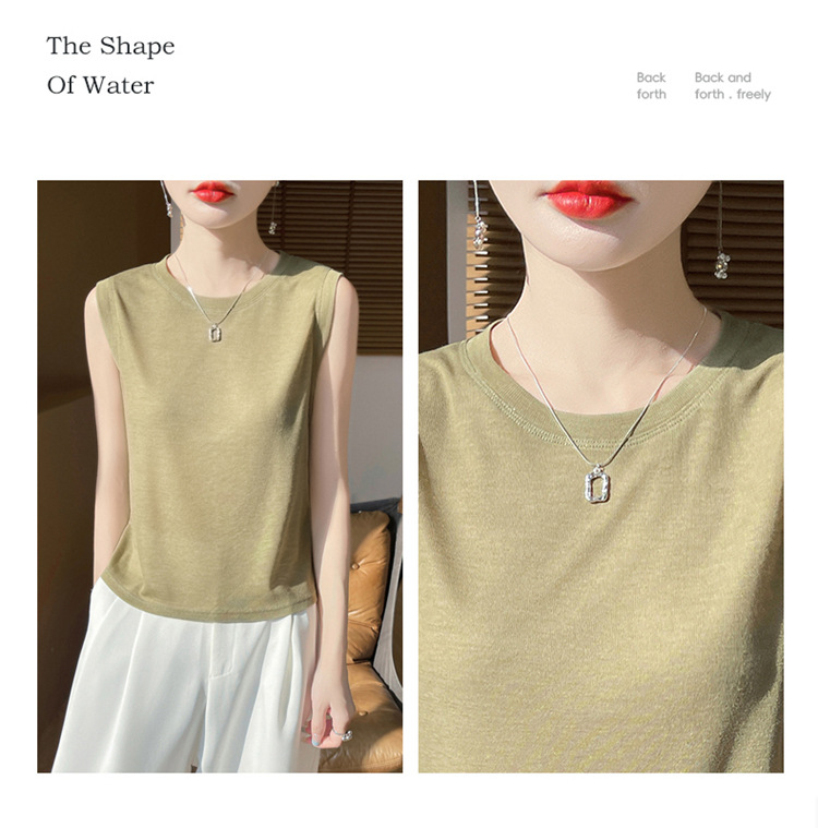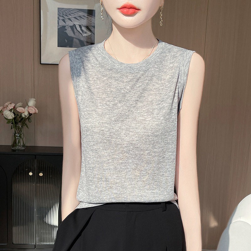 2025년 여름 신상품, 고급스러운 라운드넥 니트 민소매 캐미솔 여성용 얇은 이너웨어 탑스토어 가기