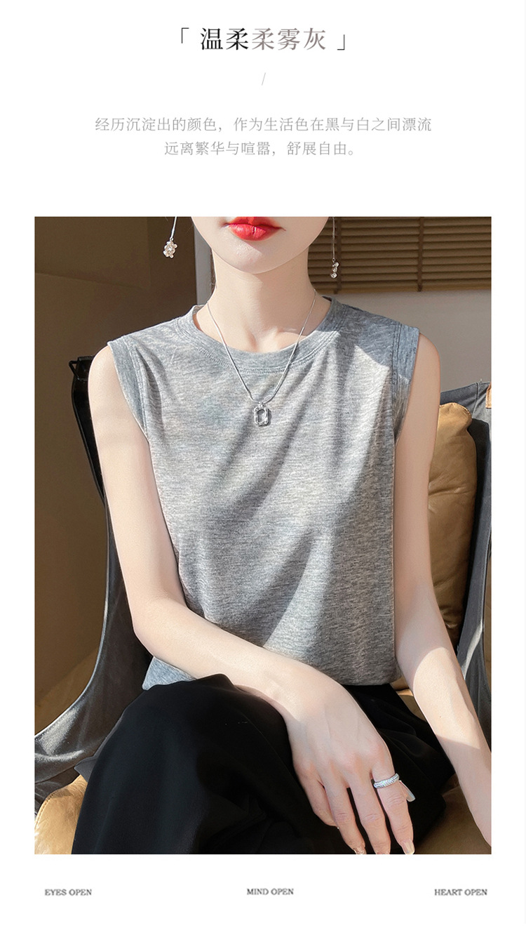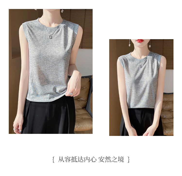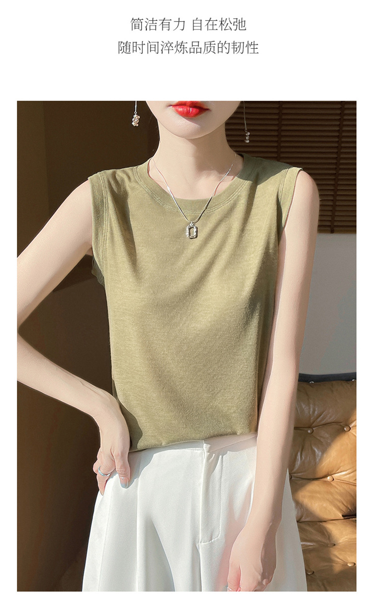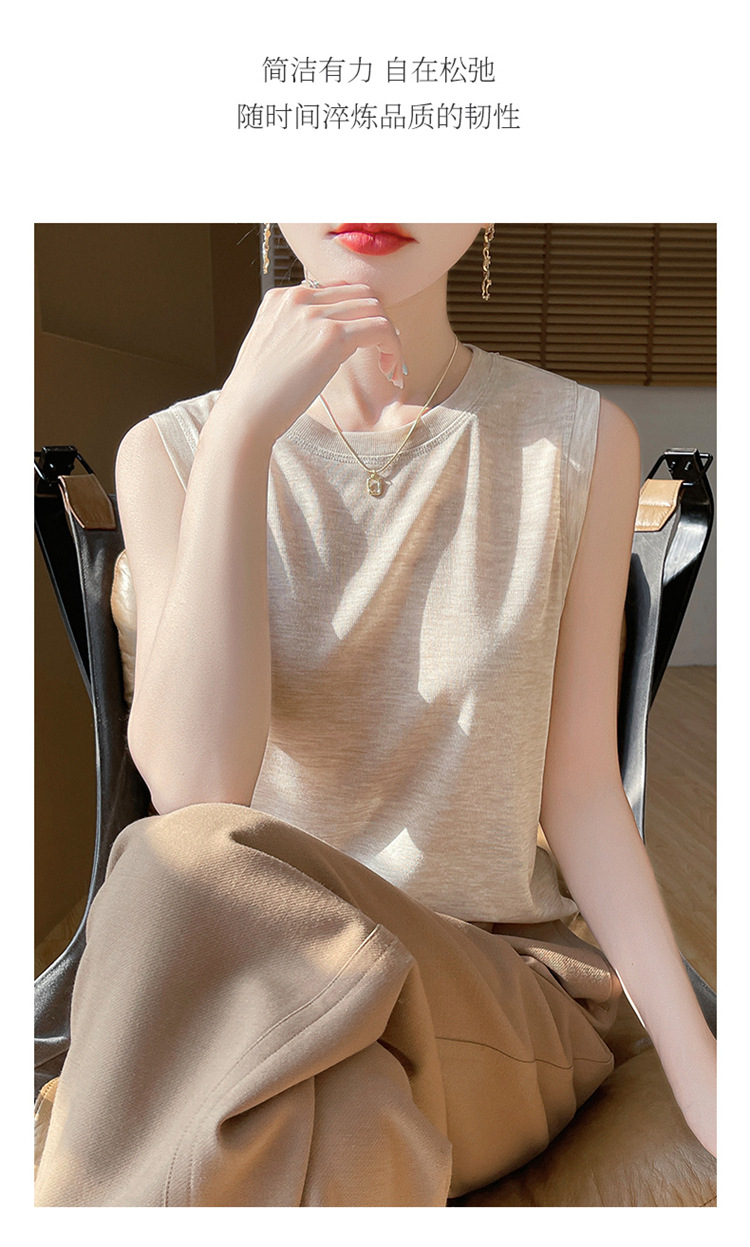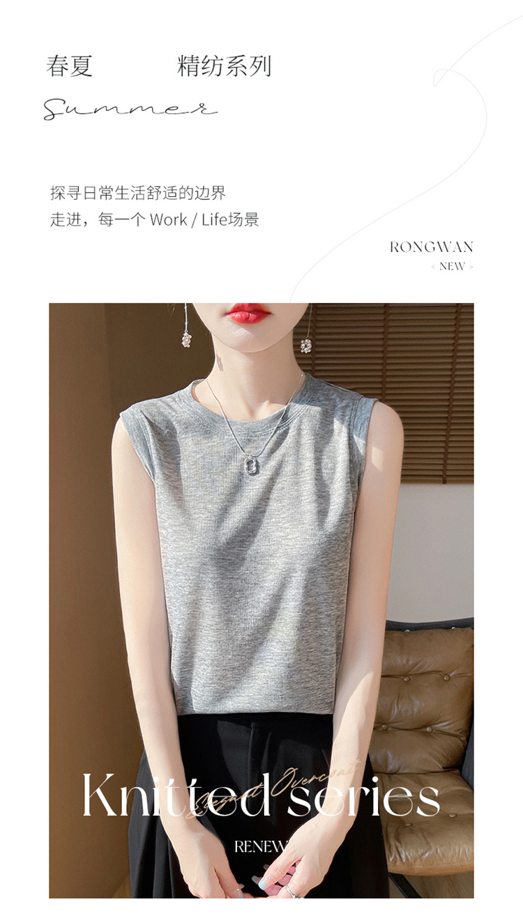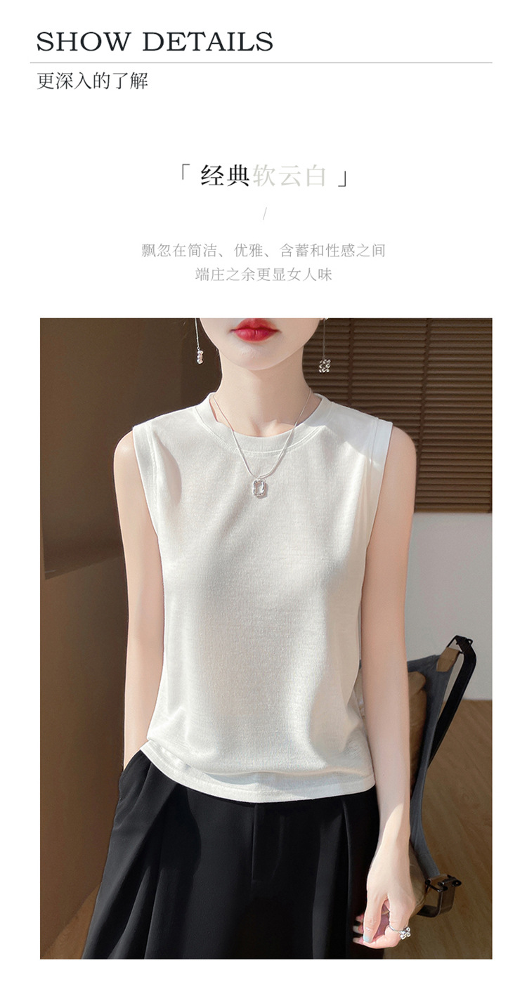 2025년 여름 신상품, 고급스러운 라운드넥 니트 민소매 캐미솔 여성용 얇은 이너웨어 탑스토어 가기