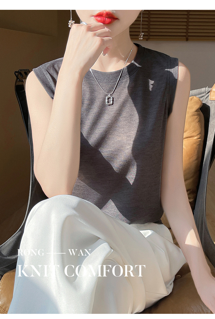 2025년 여름 신상품, 고급스러운 라운드넥 니트 민소매 캐미솔 여성용 얇은 이너웨어 탑
