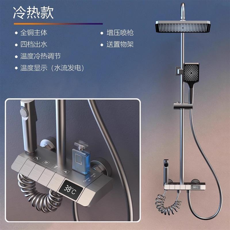 새로운 업그레이드 된 샤워 세트 건 그레이 모든 구리 샤워 가정용 일정한 온도 압력 스프링클러 비