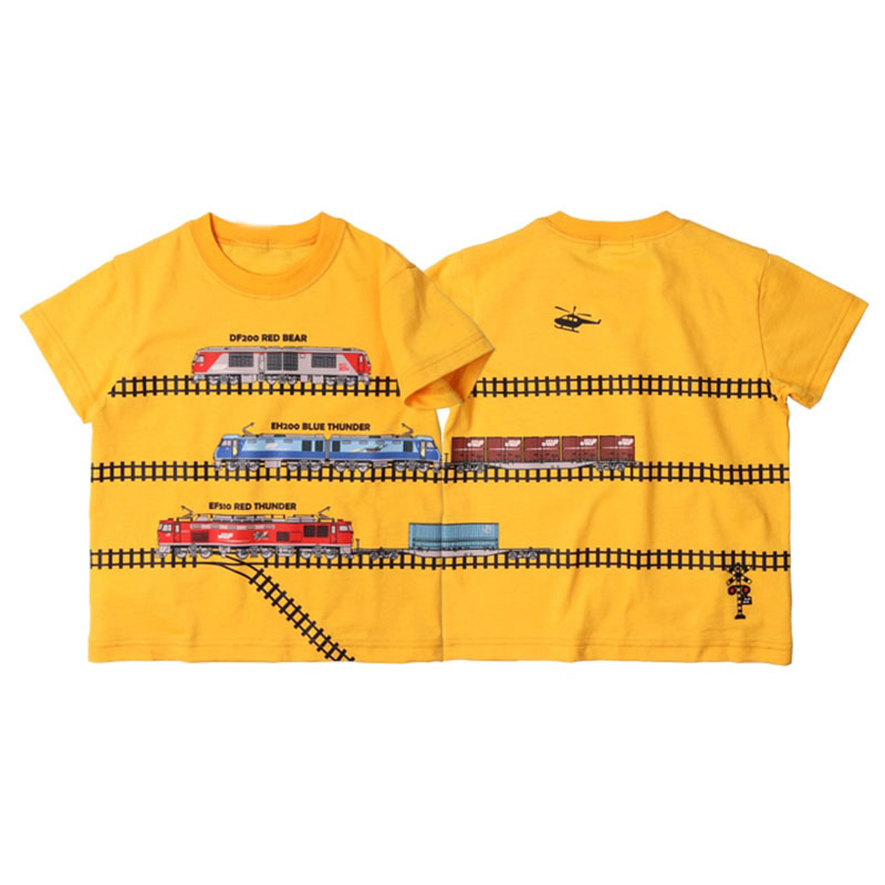 새로운 면 스티칭 트랙 기차 반 소매 소년 봄과 여름 짧은 소매 탑 귀여운 만화 어린이 티셔츠스토어 가기