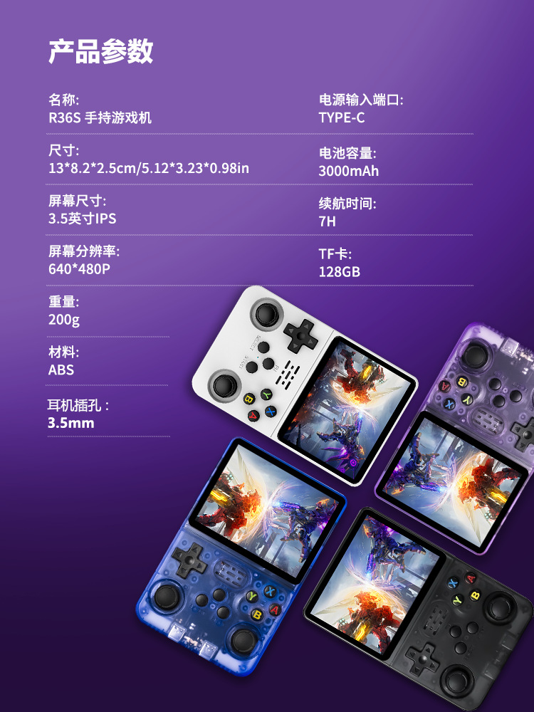 R36 휴대용 게임 콘솔 레트로 아케이드 3D 스크린 HD 쿼드 코어 듀얼 시스템 게임 휴대용 오픈 소스 시스템스토어 가기