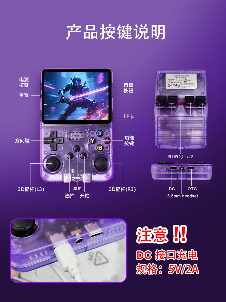 R36 휴대용 게임 콘솔 레트로 아케이드 3D 스크린 HD 쿼드 코어 듀얼 시스템 게임 휴대용 오픈 소스 시스템