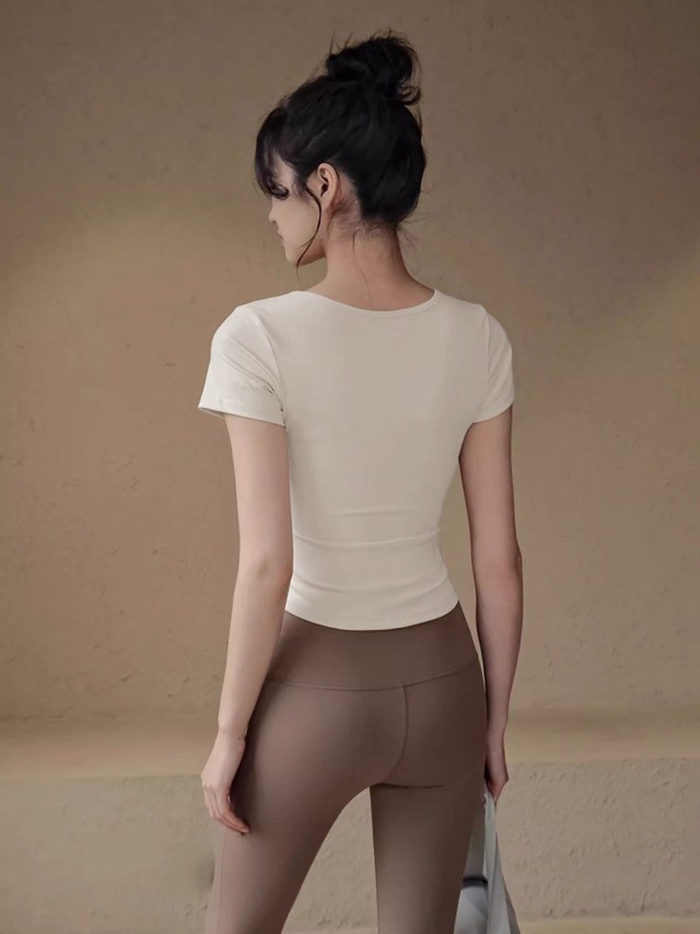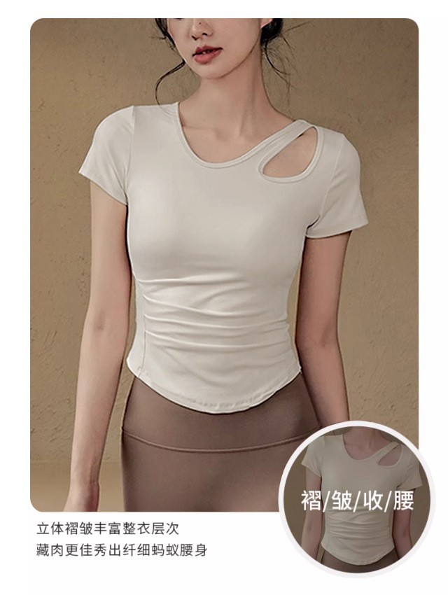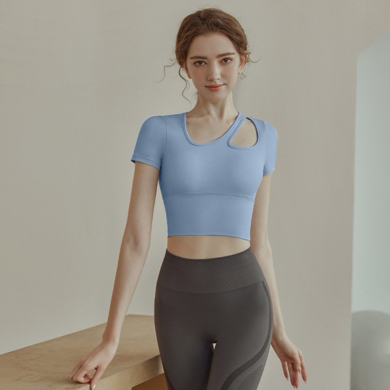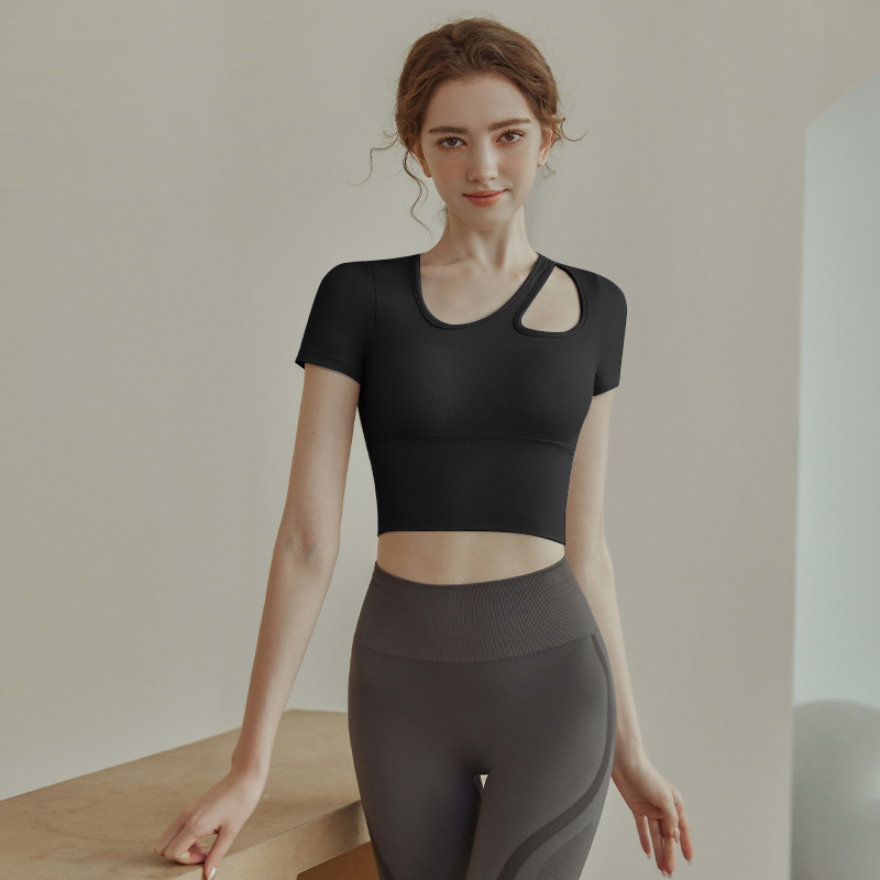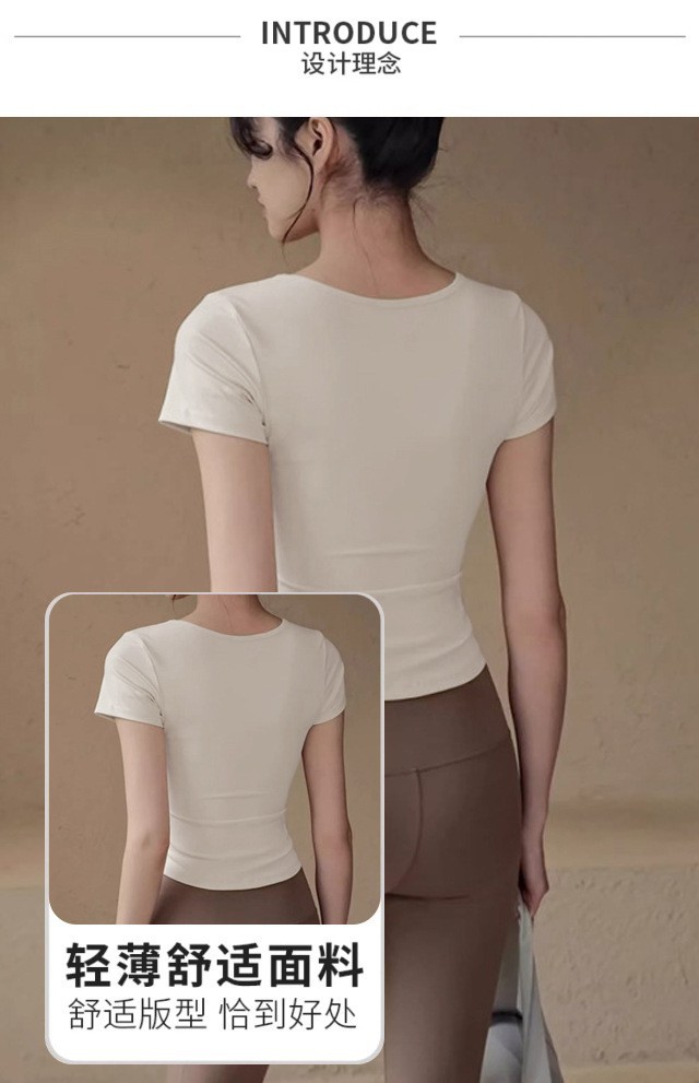 알몸 피부 친화적 인 봄 새로운 반팔 스포츠 피트니스 가슴 패드 고급 티셔츠가있는 필라테스 요가 세트 탑스토어 가기