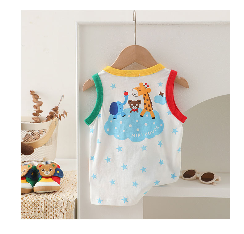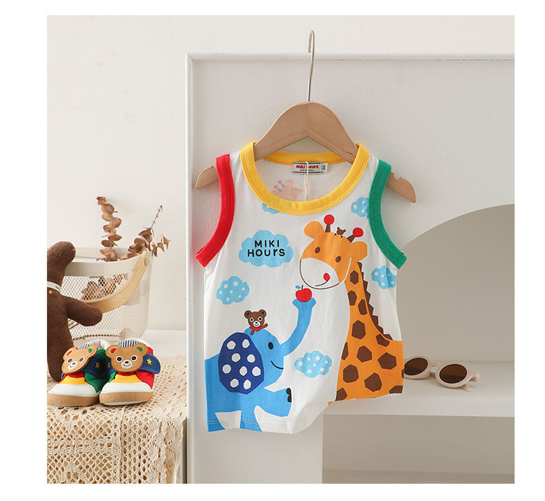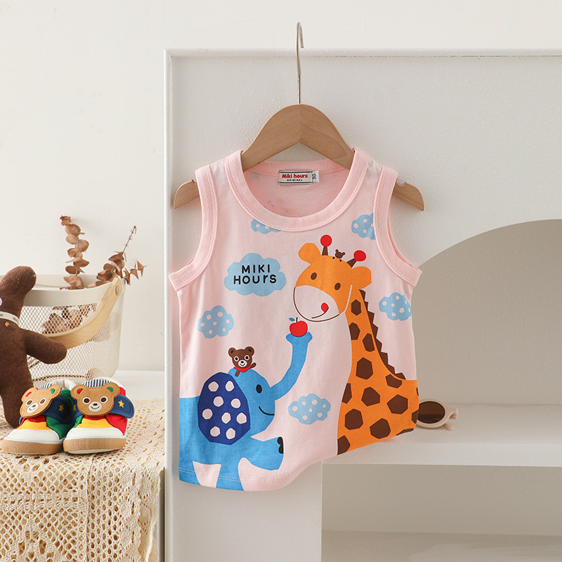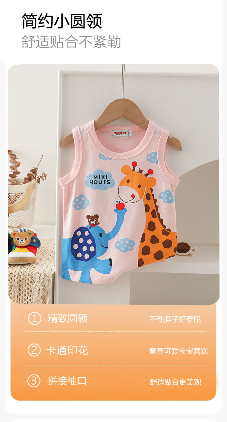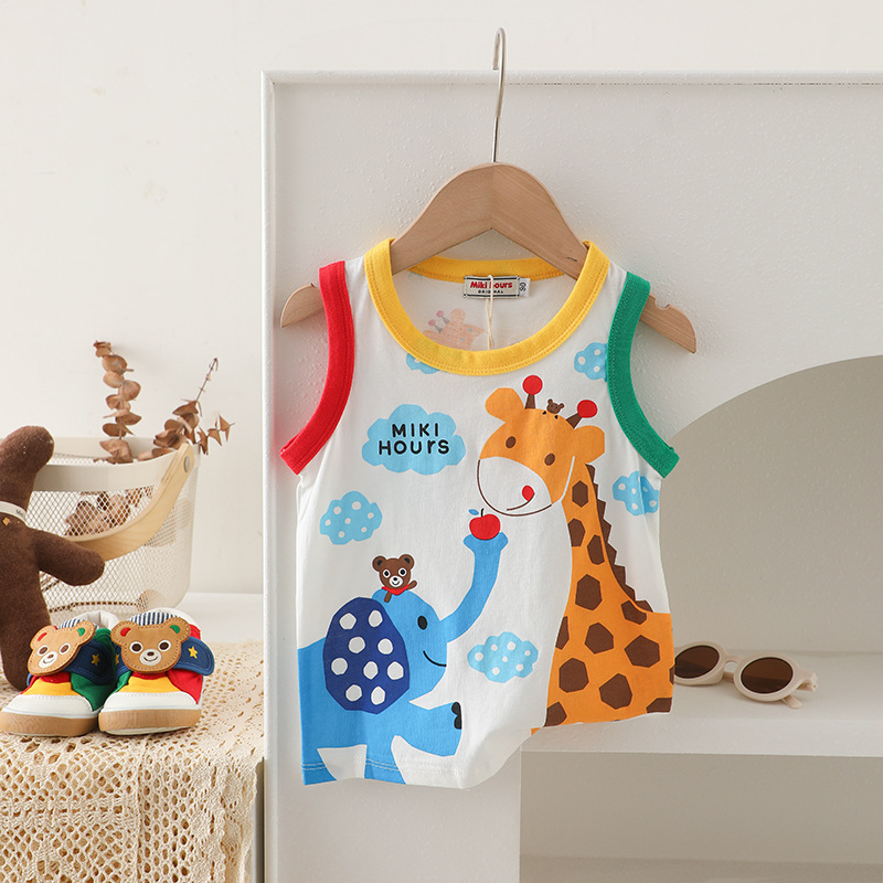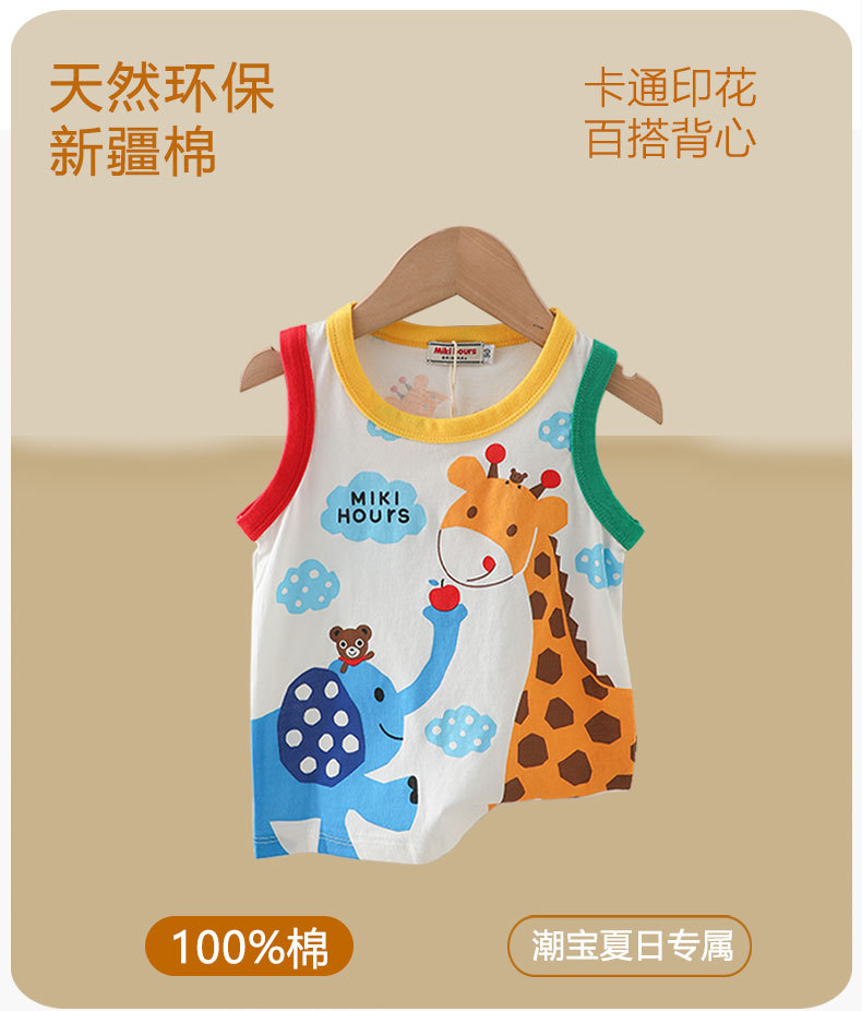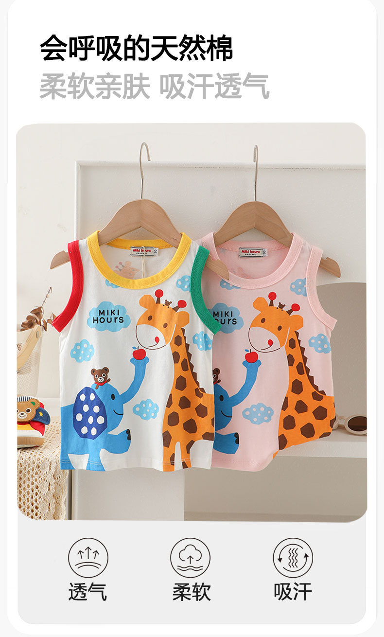 Mikihours 어린이 조끼 여름 새로운 면 만화 대비 컬러 니트베이스 탑 소년 소녀 조끼스토어 가기