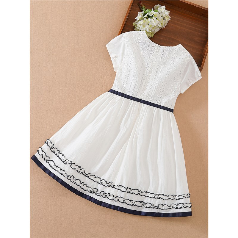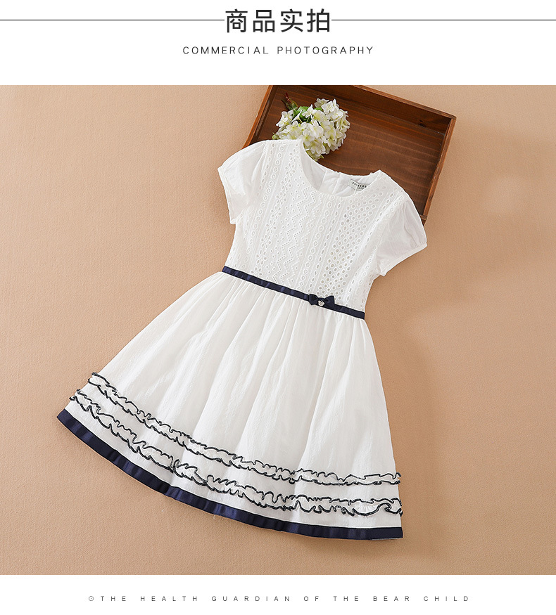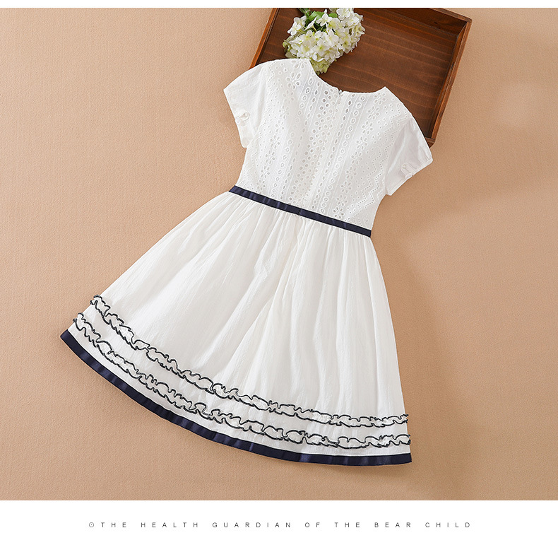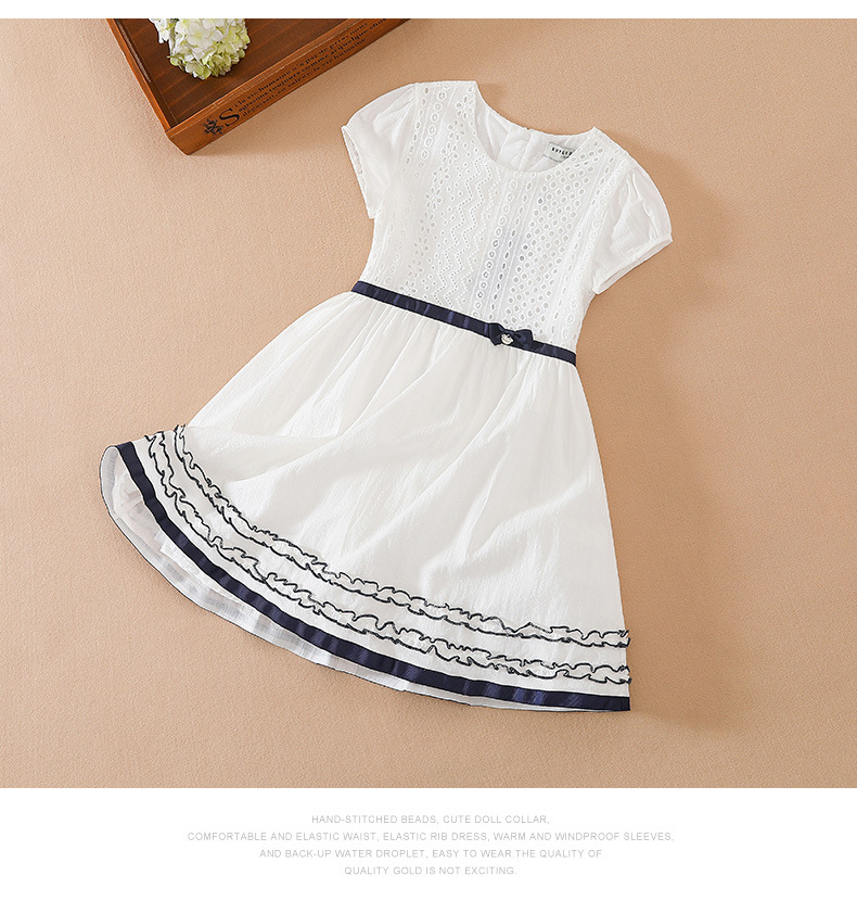소녀 여름 공주 원피스 2025 새로운 순면 한국 스타일 화이트 패션 중 큰 어린이 반팔 원피스 유행스토어 가기