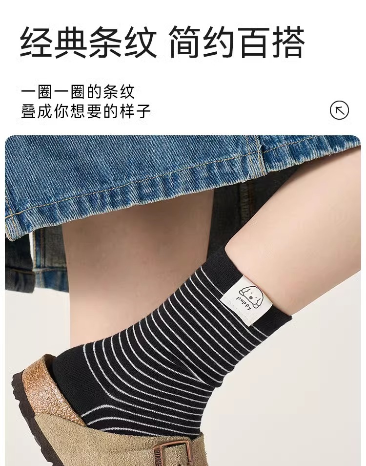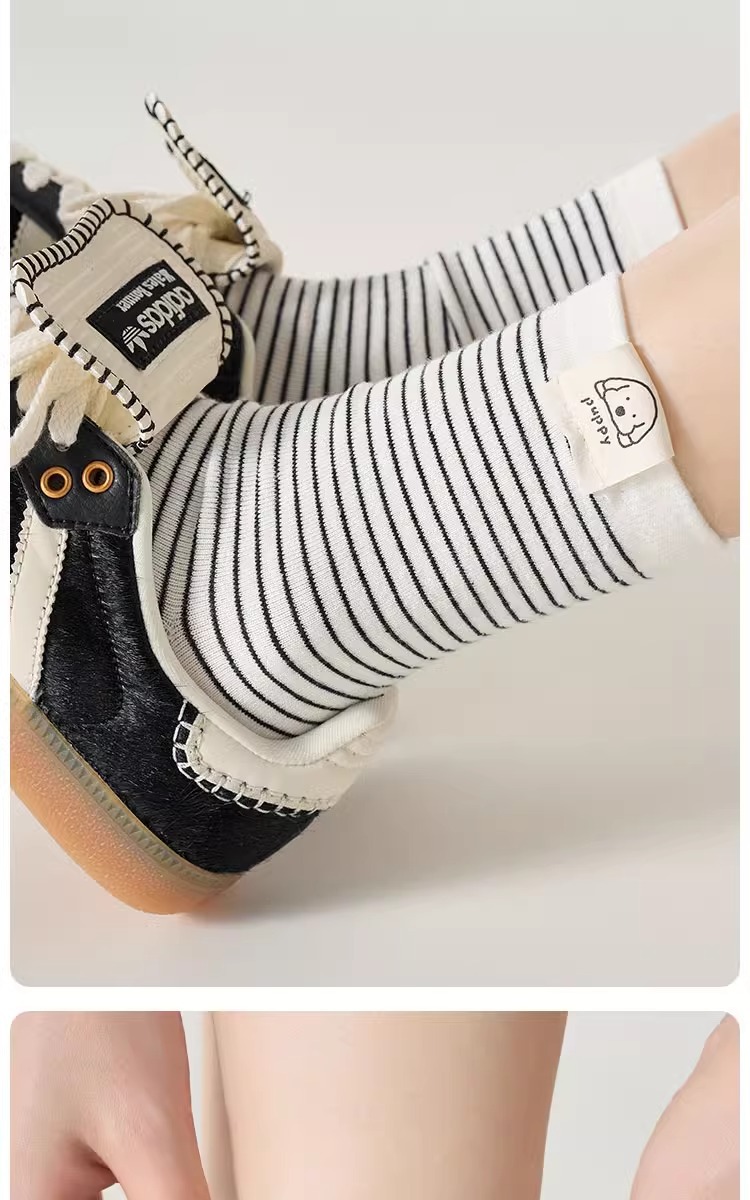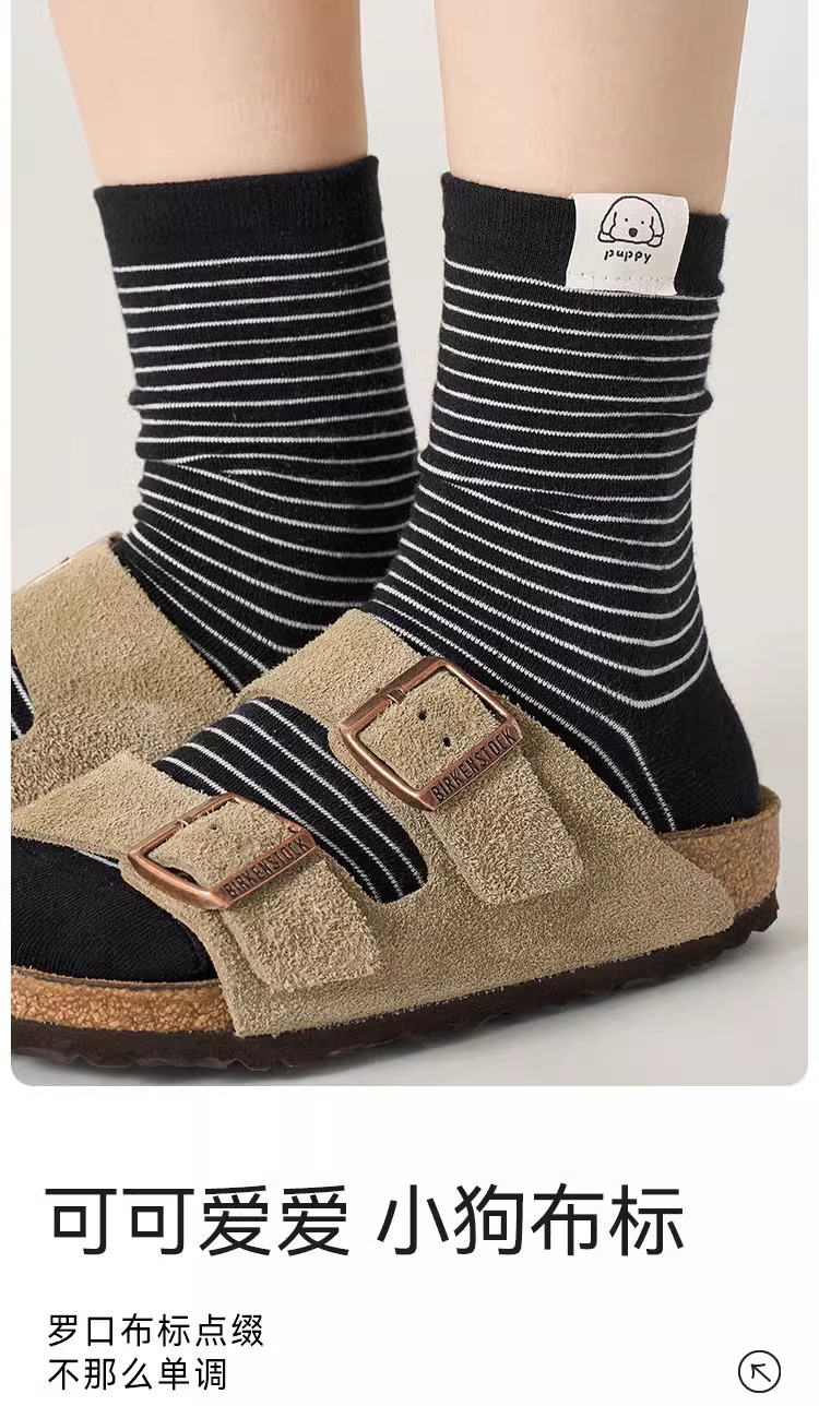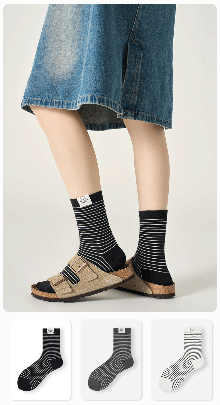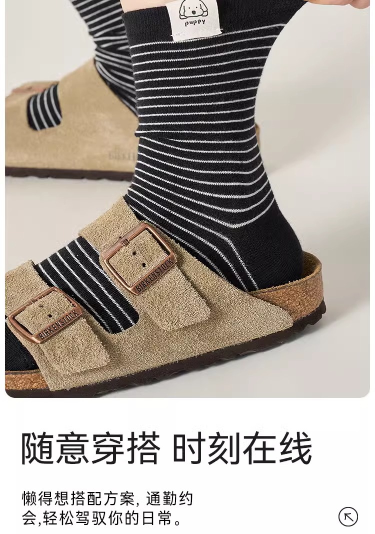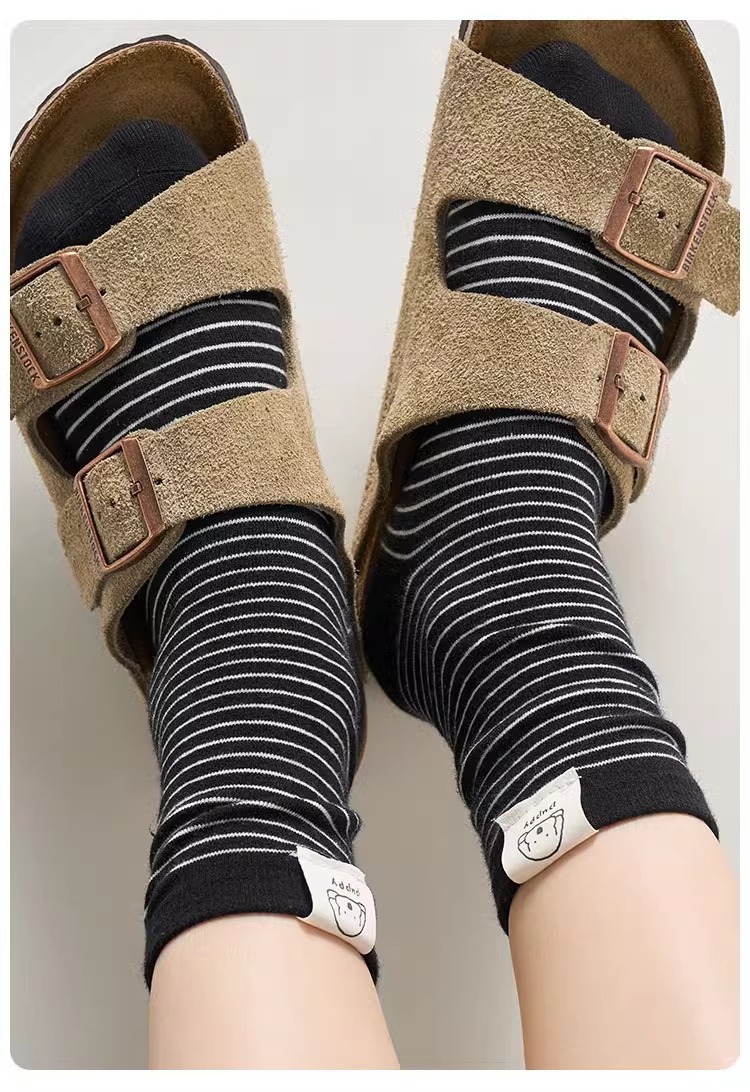 여성용 검은색 줄무늬 양말, Birkenstock 신발이 달린 여름 종아리 중간 양말, 강아지 인 트렌디한 한국식 긴 양말, 순면 양말스토어 가기