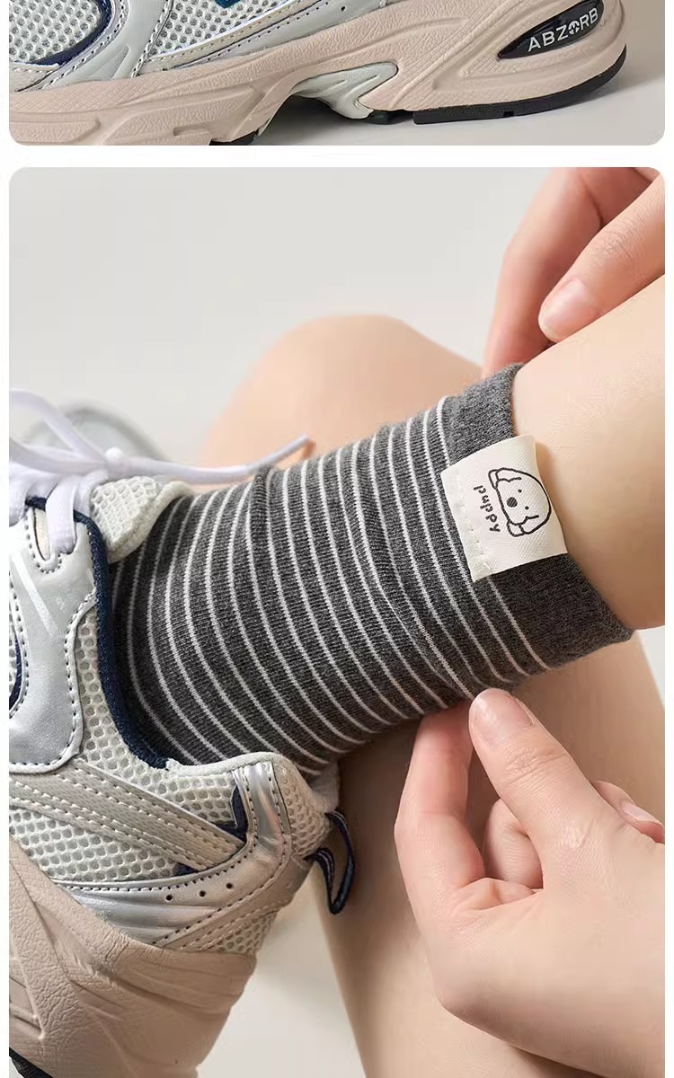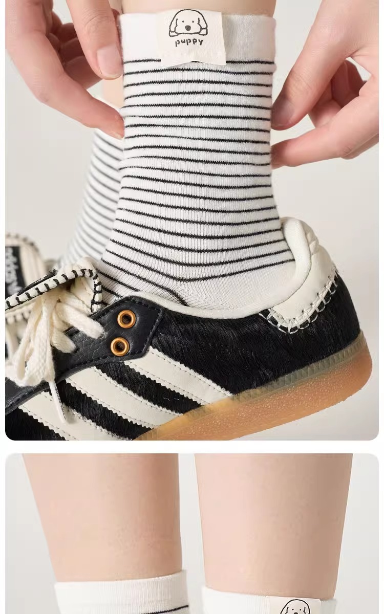 여성용 검은색 줄무늬 양말, Birkenstock 신발이 달린 여름 종아리 중간 양말, 강아지 인 트렌디한 한국식 긴 양말, 순면 양말