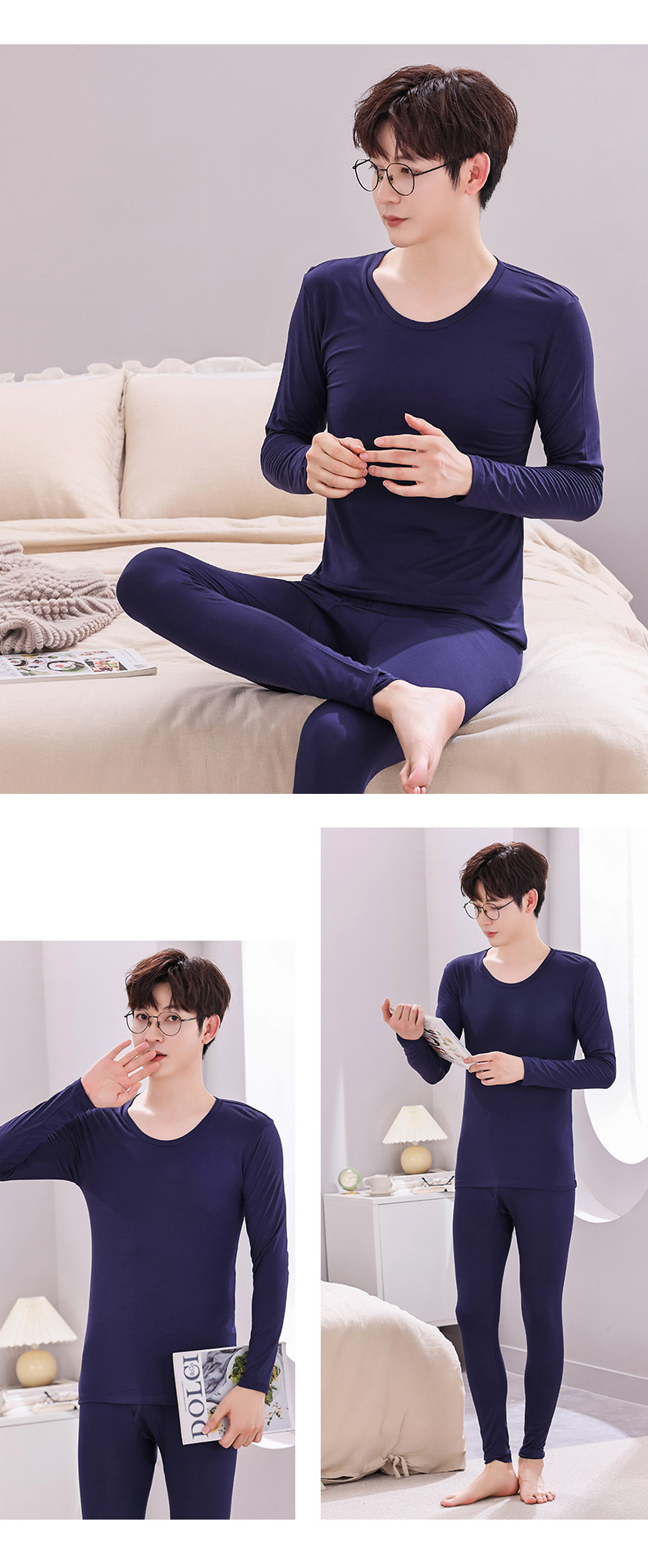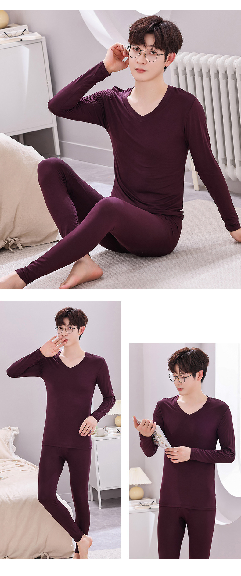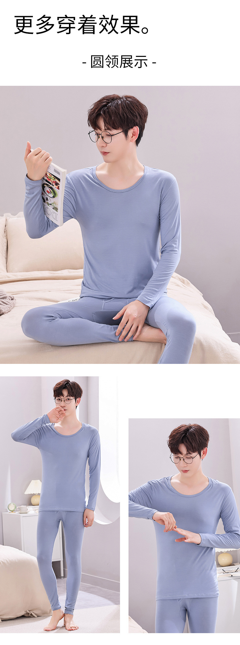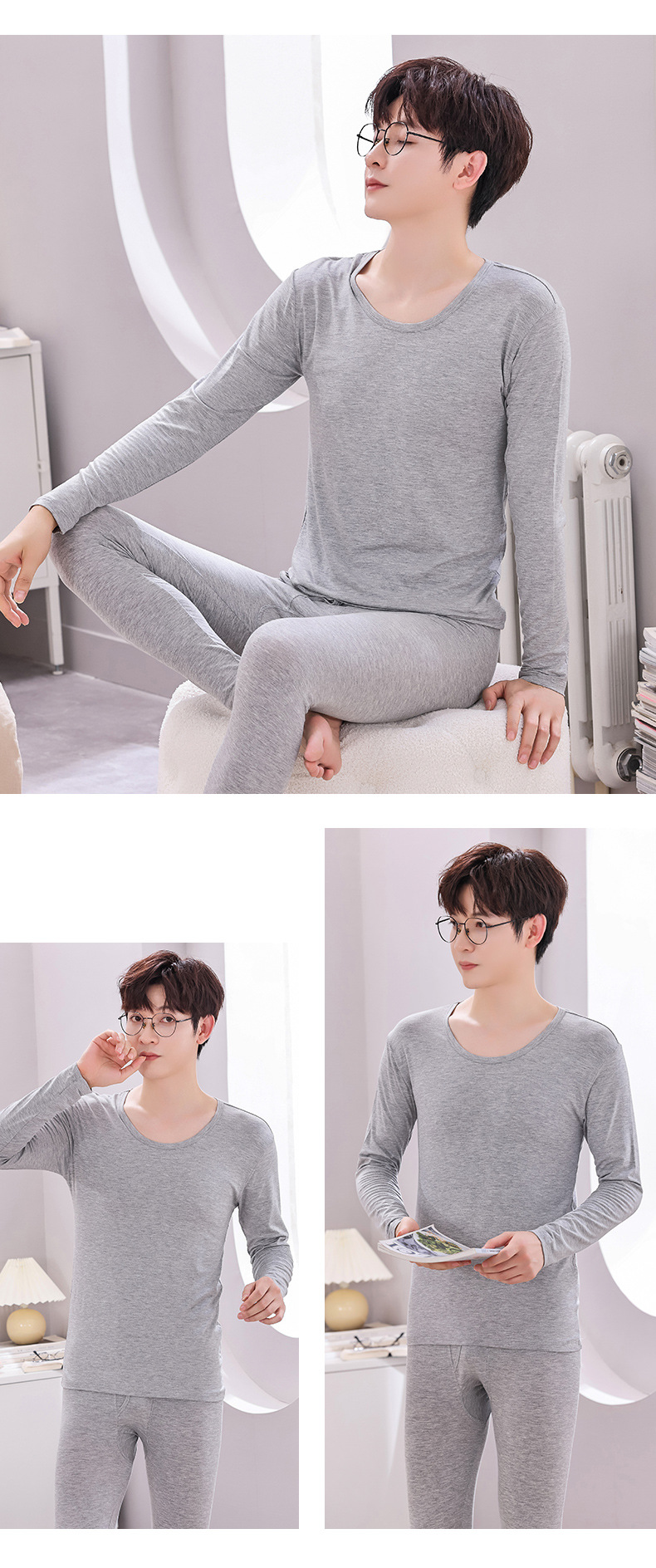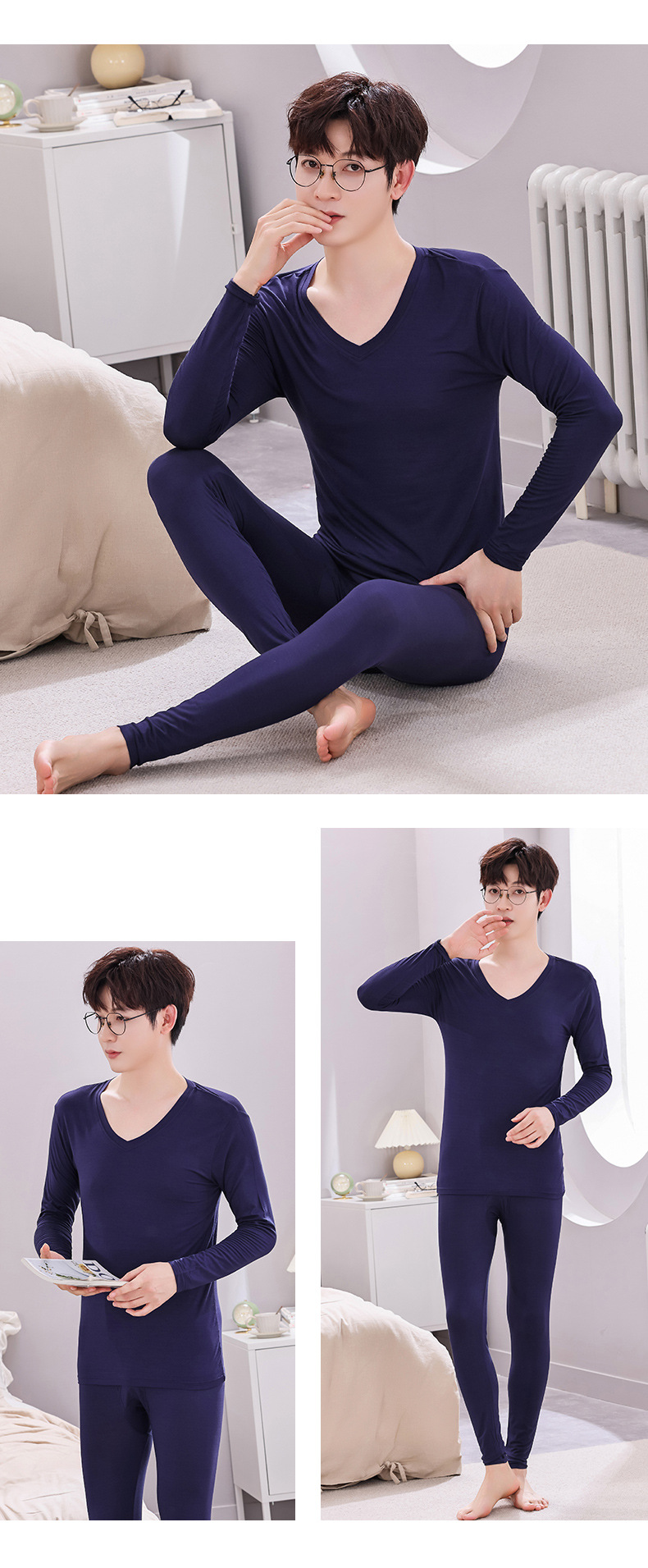 가을 의류 및 바지 남성용 모달 세트 얇은 솔리드 컬러 스트레치 백킹 셔츠 열 속옷 얇은 내부 목 및 바지스토어 가기
