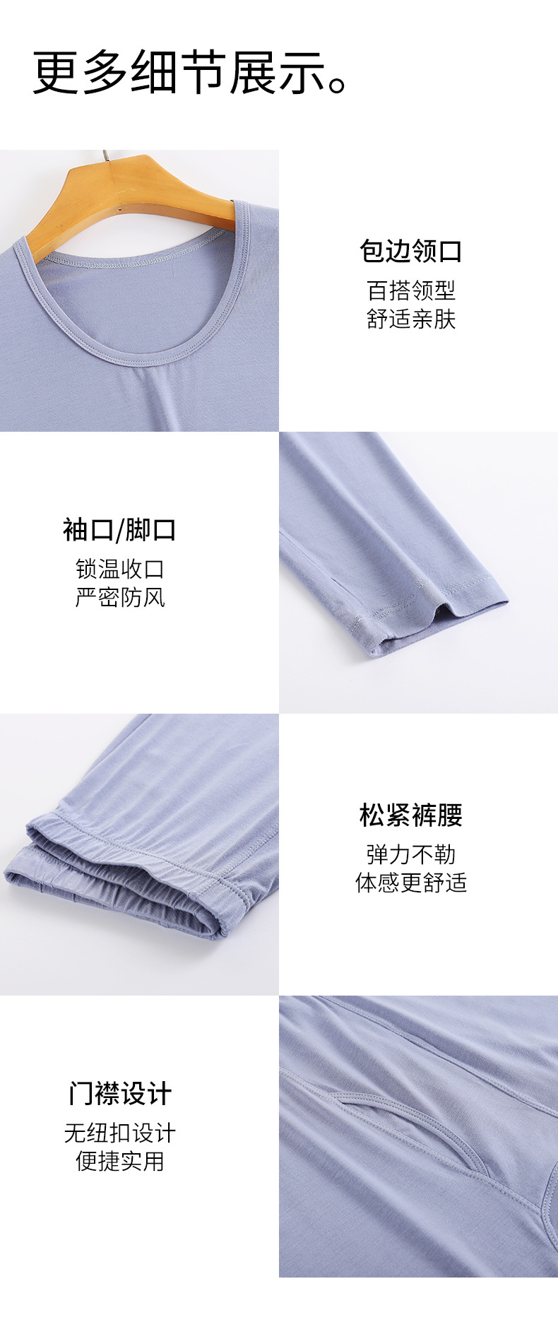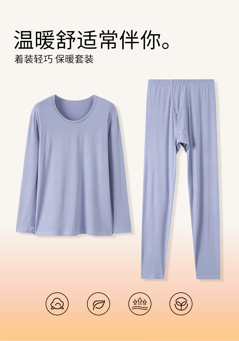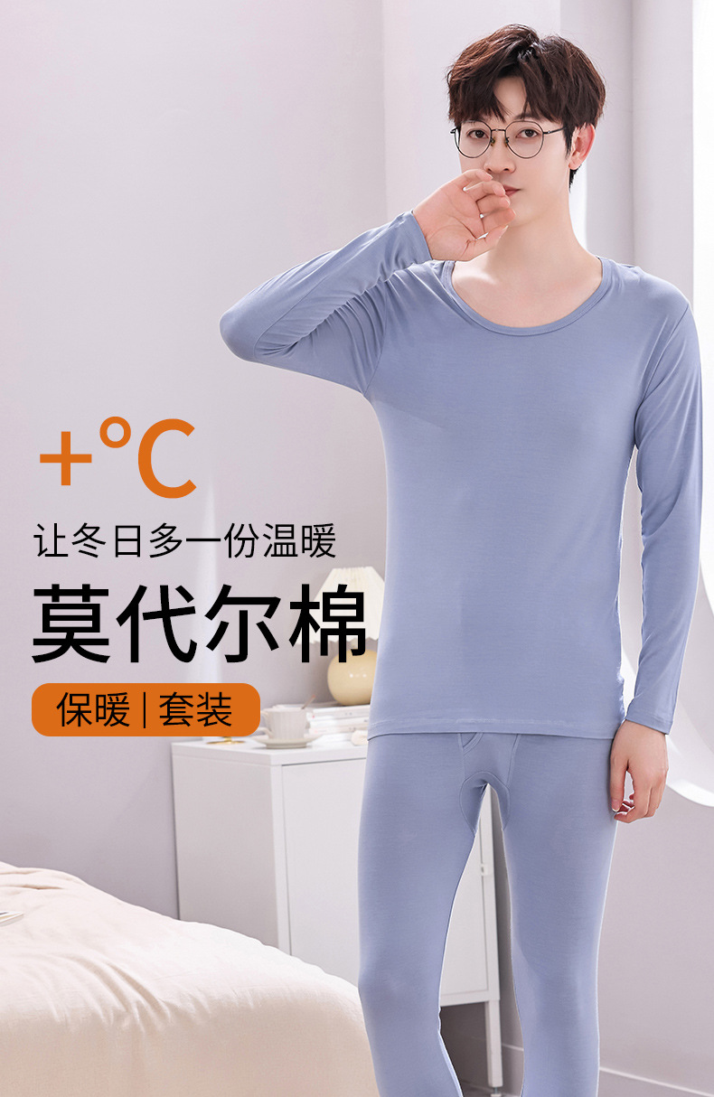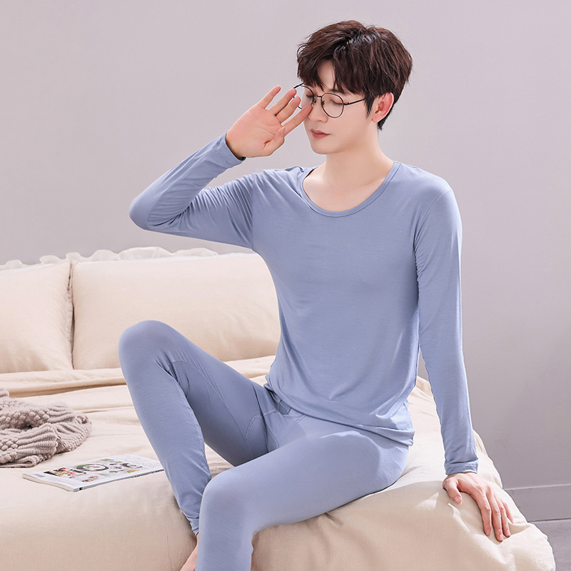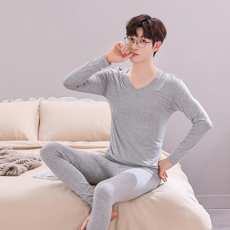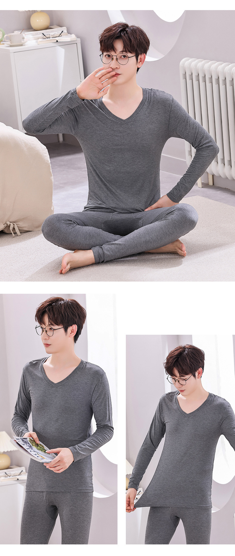 가을 의류 및 바지 남성용 모달 세트 얇은 솔리드 컬러 스트레치 백킹 셔츠 열 속옷 얇은 내부 목 및 바지스토어 가기