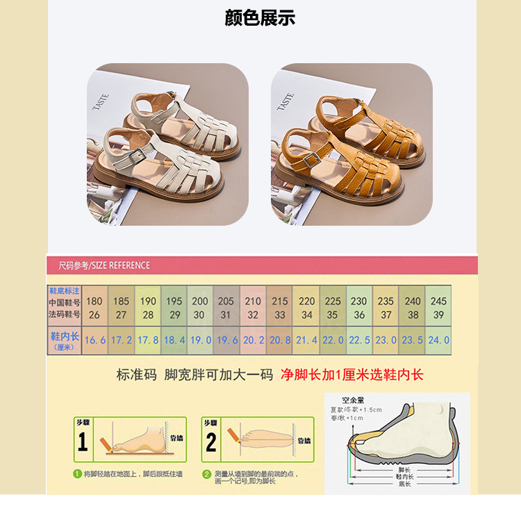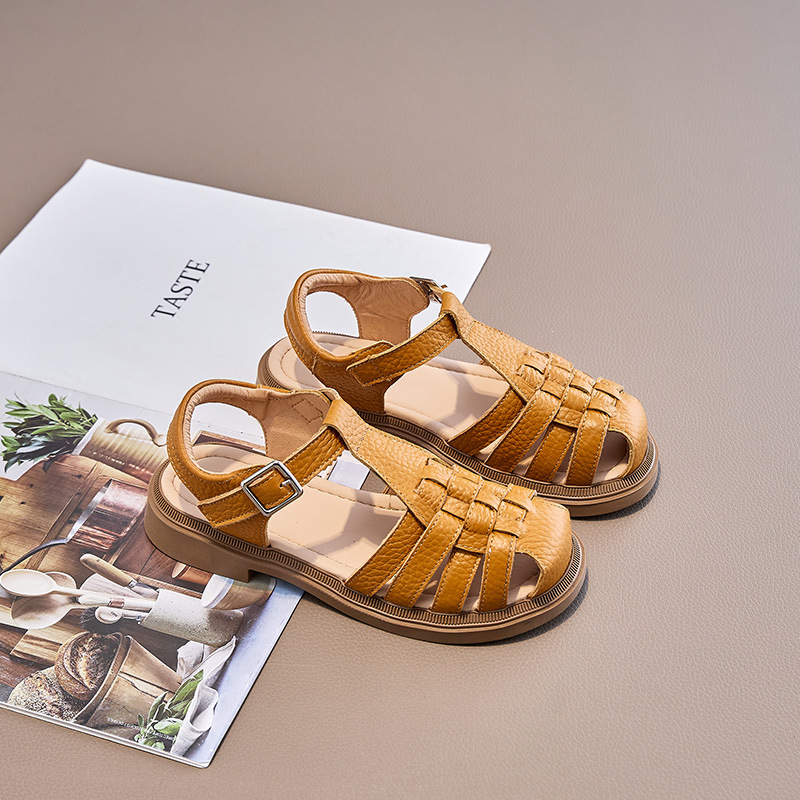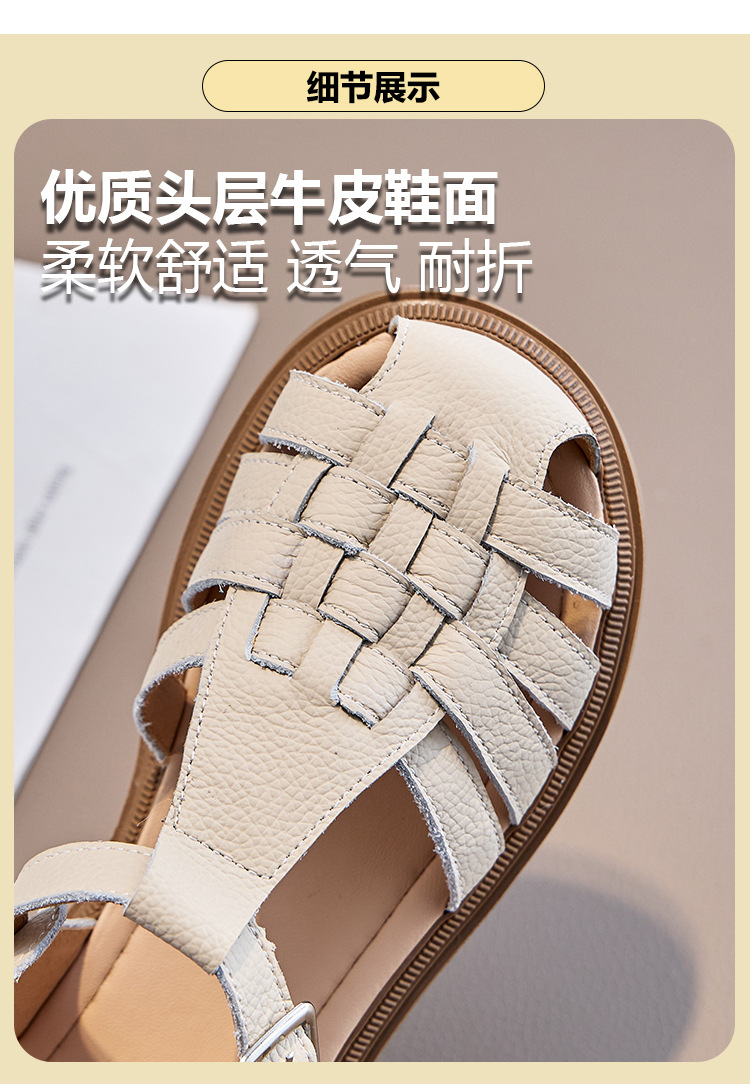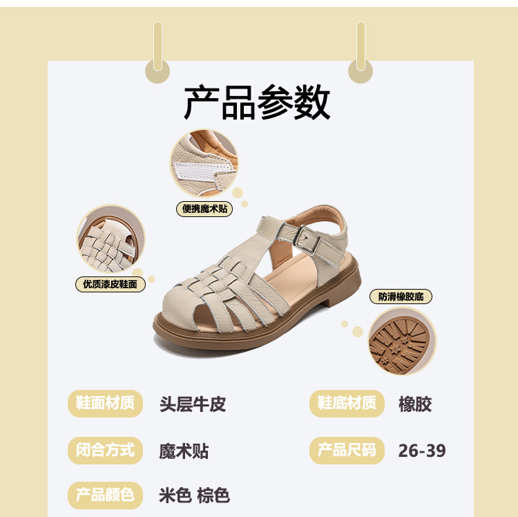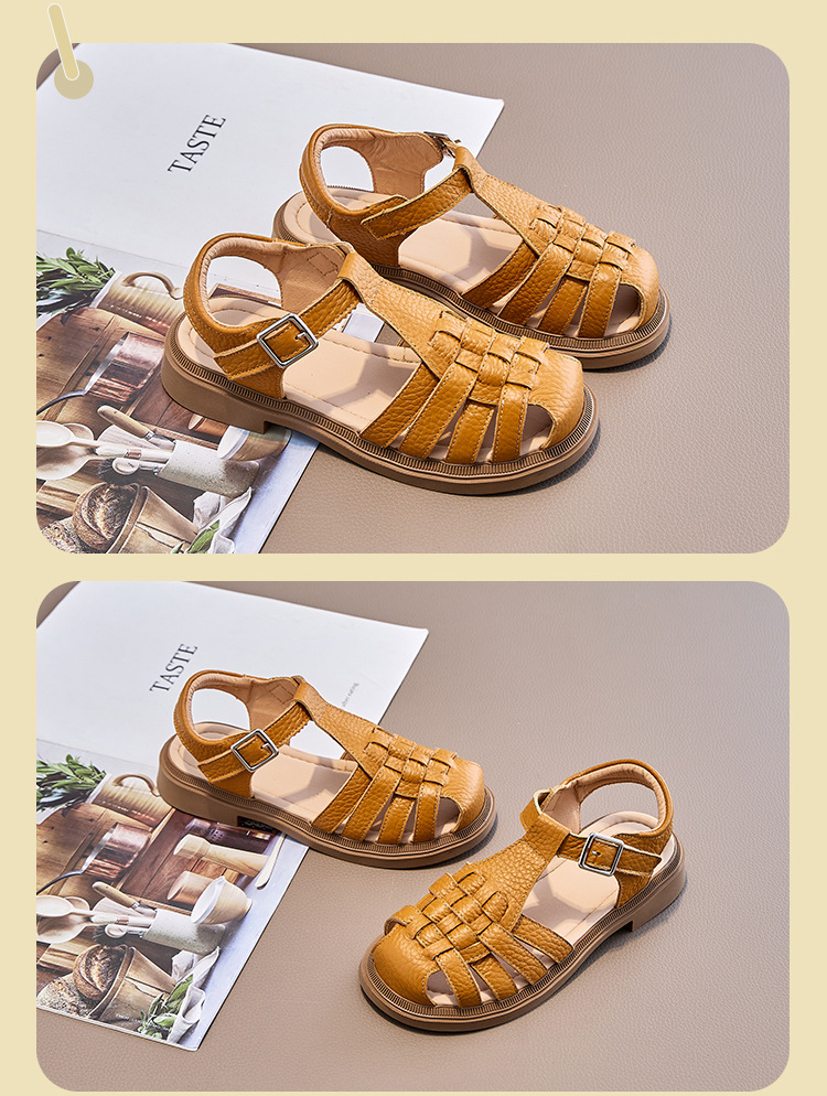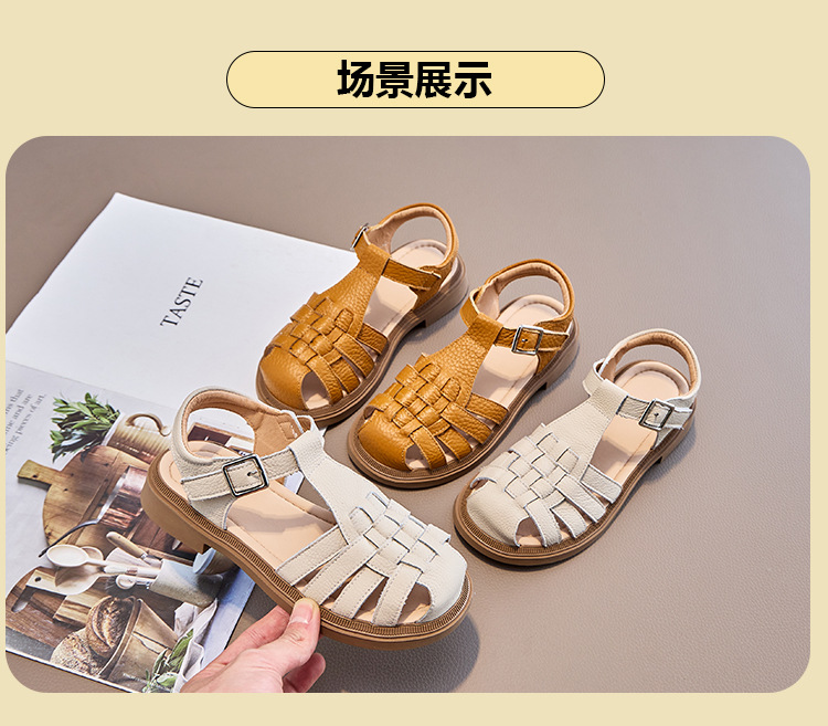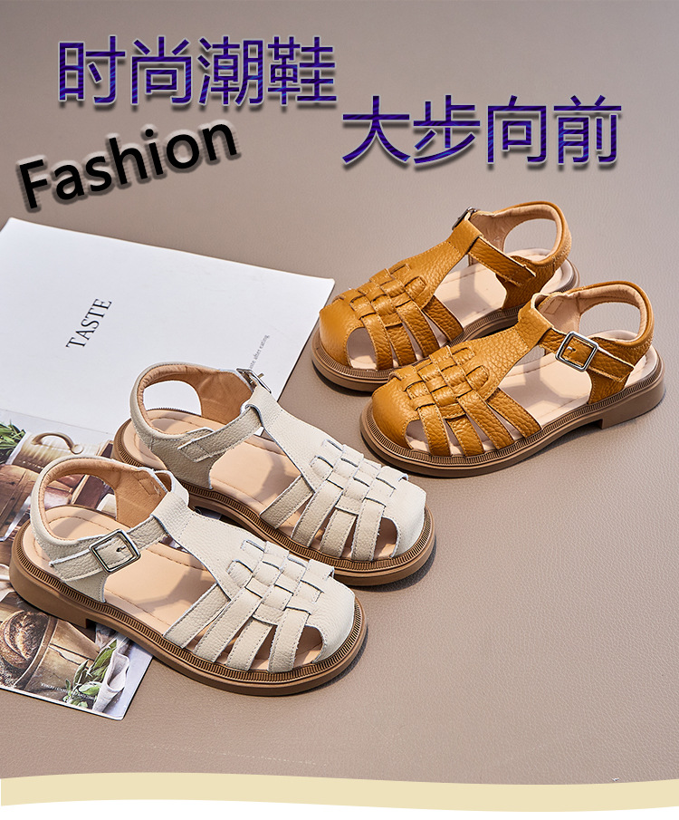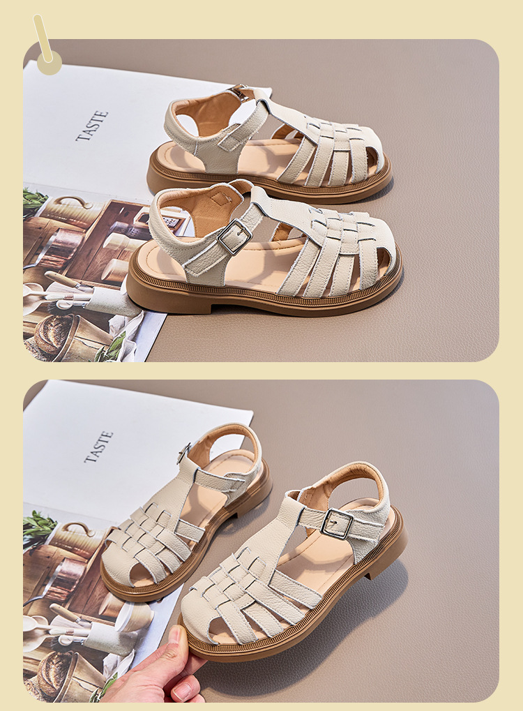정품 가죽 소녀 신발 2025 새로운 여름 어린이 샌들 Baotou 봄과 가을 스타일 작은 공주 소녀 부드러운 바닥 중대형 어린이스토어 가기