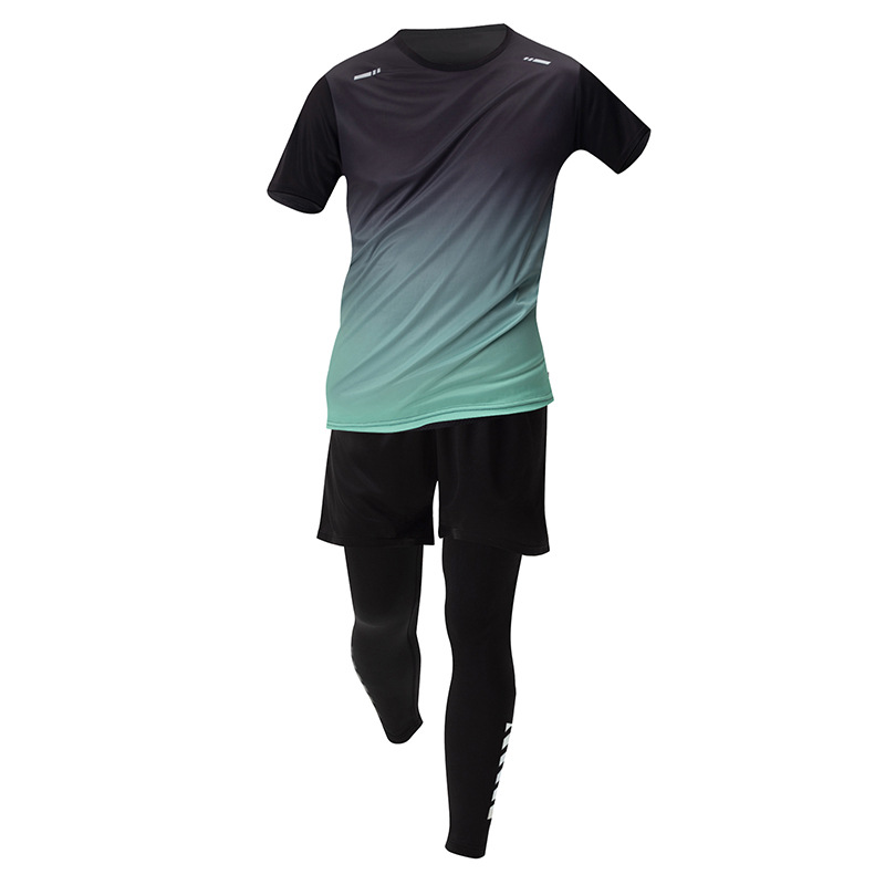 해외 국경 간 대외 무역 3 피스 그라디언트 스포츠 피트니스 세트 달리기 훈련 세트 긴팔 타이츠 티셔츠 세트스토어 가기
