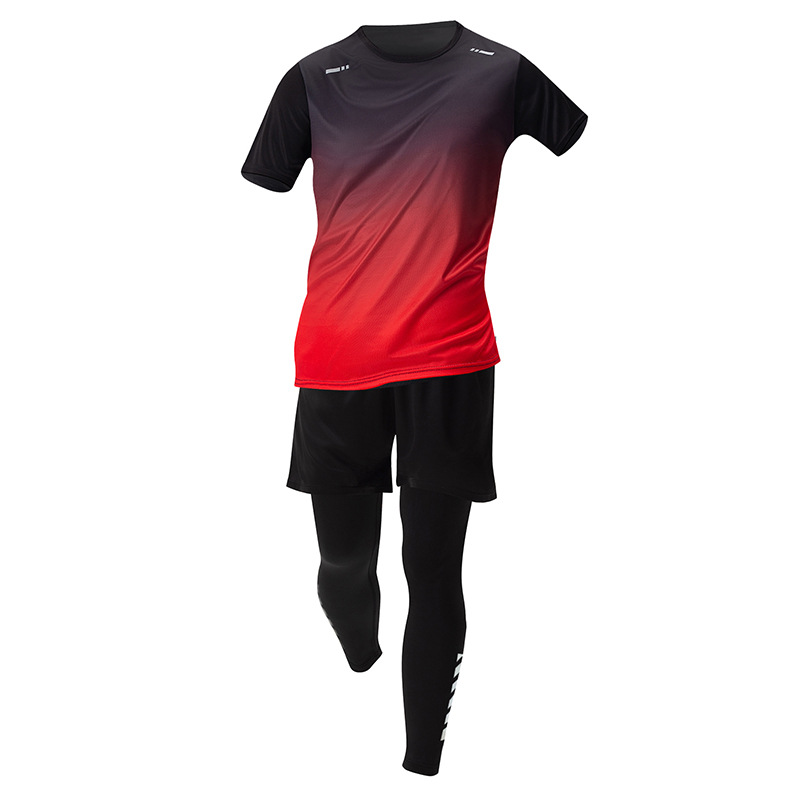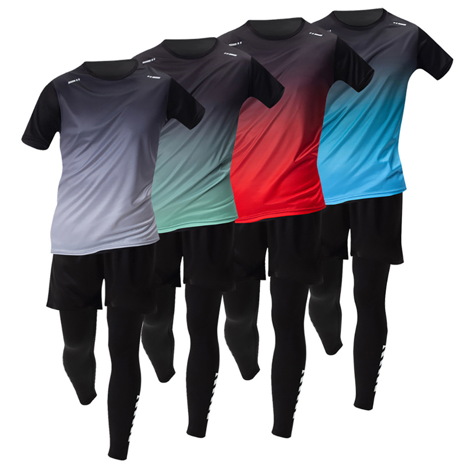 해외 국경 간 대외 무역 3 피스 그라디언트 스포츠 피트니스 세트 달리기 훈련 세트 긴팔 타이츠 티셔츠 세트