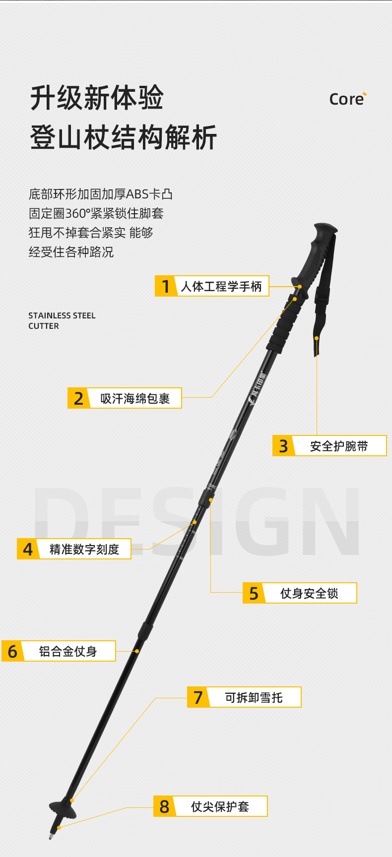 • 텔레스코픽 외부 잠금 장치 7075 알루미늄 합금/편안한 EVA 폼 그립 아름다운 노란색