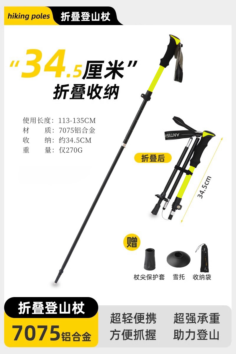 등산 스틱 전문 야외 접는 등반 스틱 탄소 초경량 망원경 하이킹 장비 미끄럼 목발 스키스토어 가기