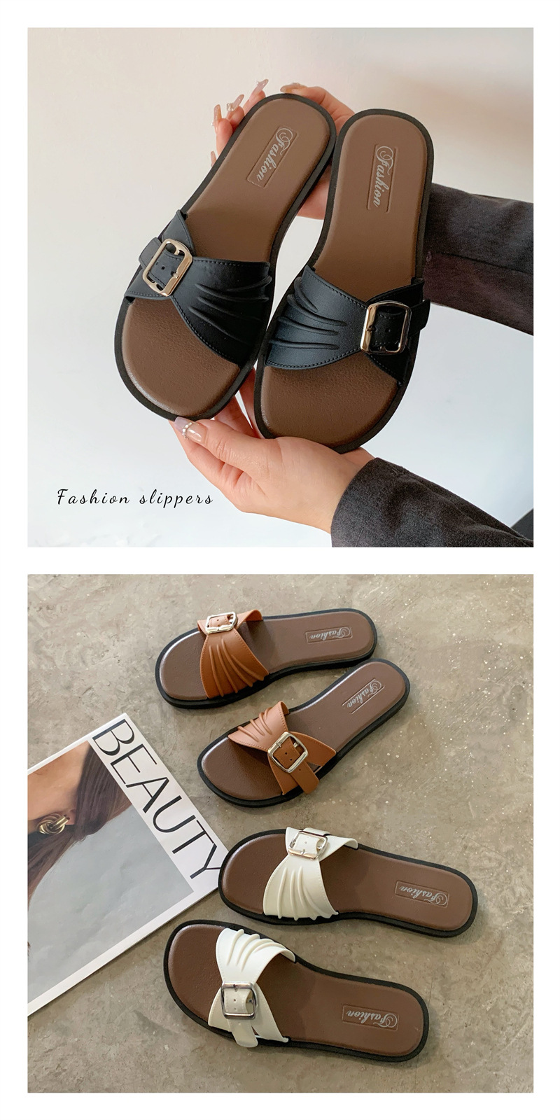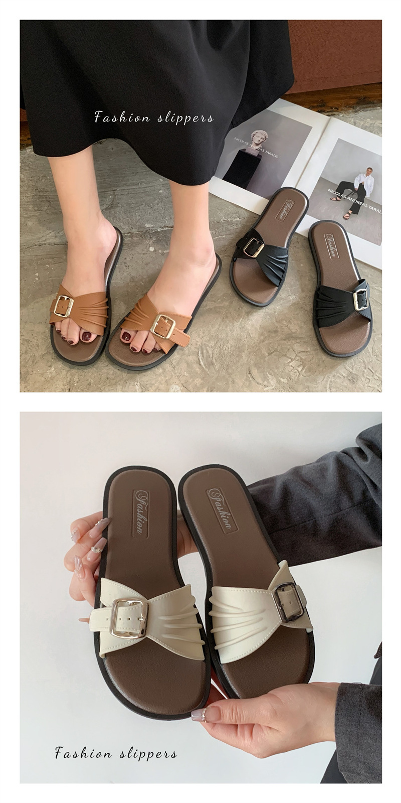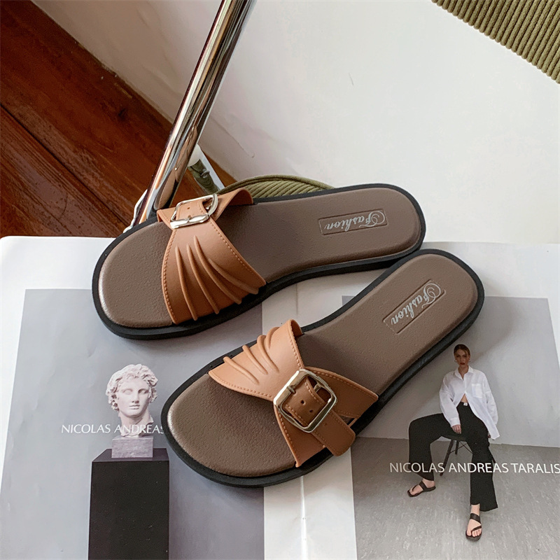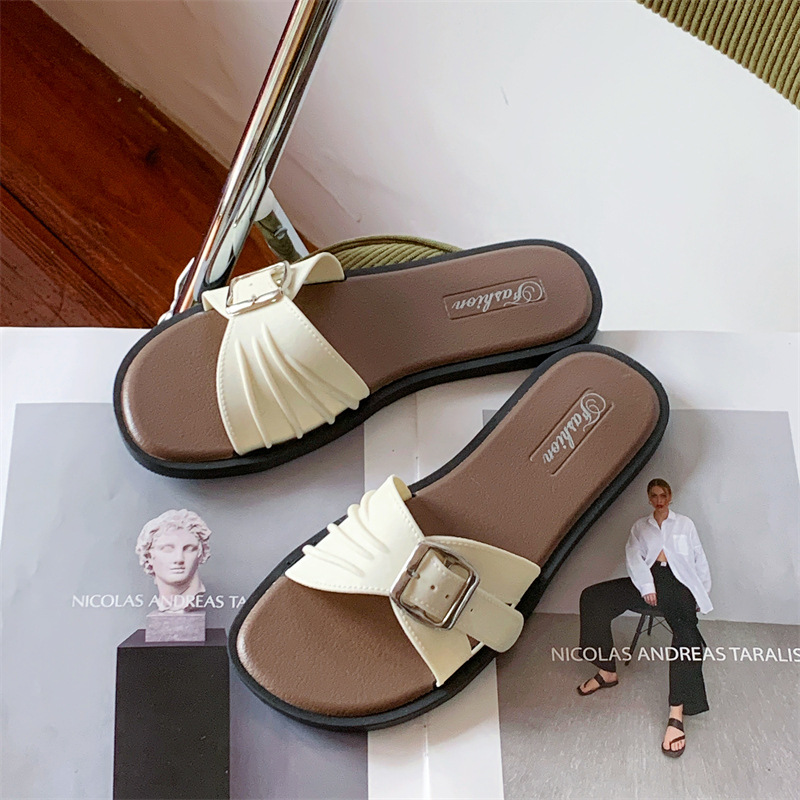 디자인 센스 틈새 슬리퍼 여성 여름 외부 착용 프랑스 휴가 레저 해변 플랫 슬리퍼 새로운 스타일스토어 가기
