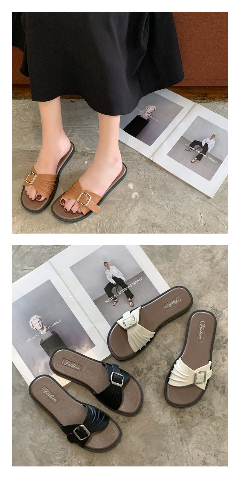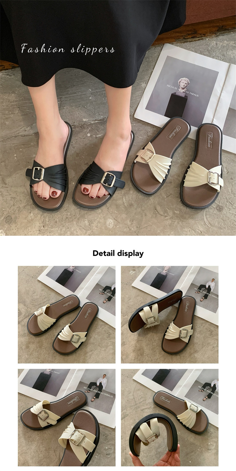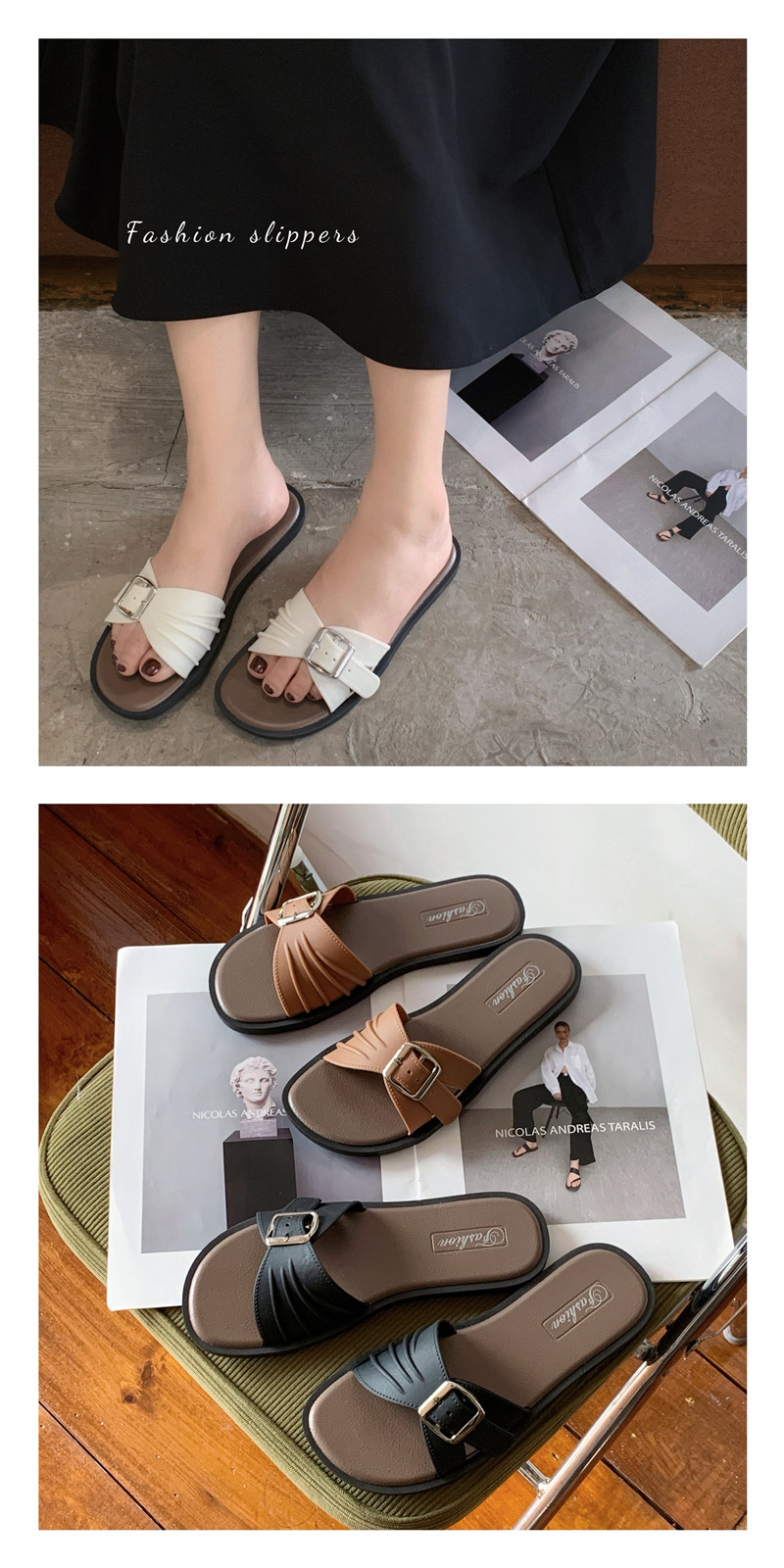 디자인 센스 틈새 슬리퍼 여성 여름 외부 착용 프랑스 휴가 레저 해변 플랫 슬리퍼 새로운 스타일스토어 가기