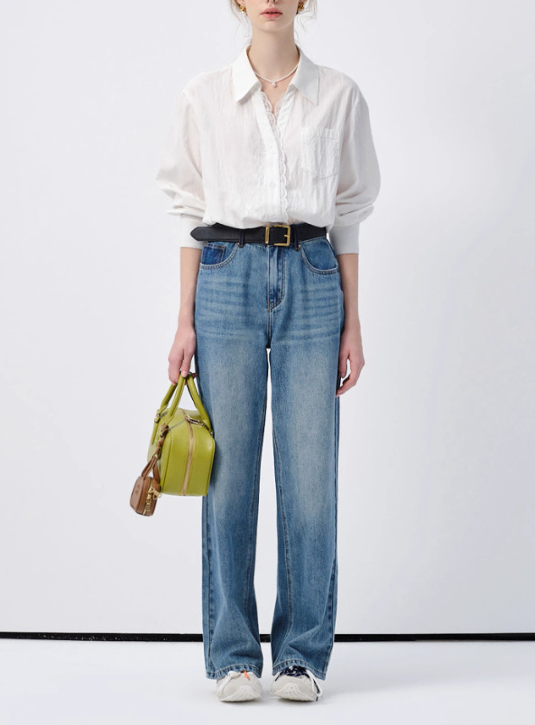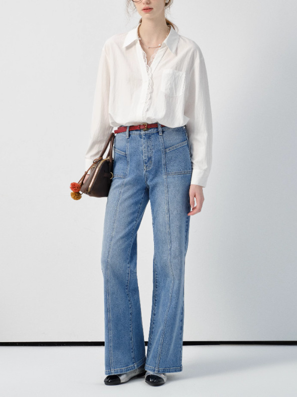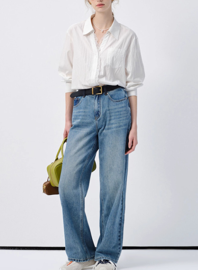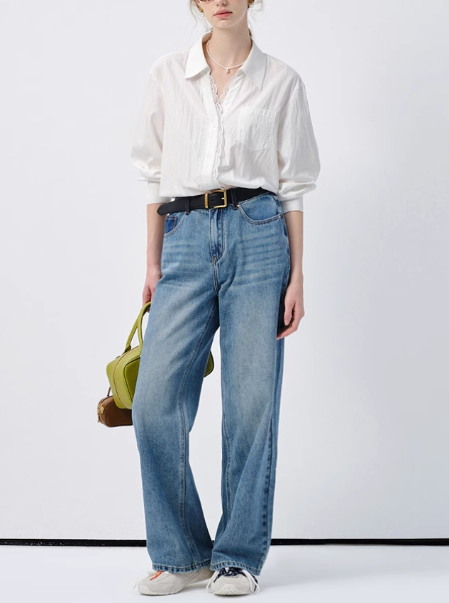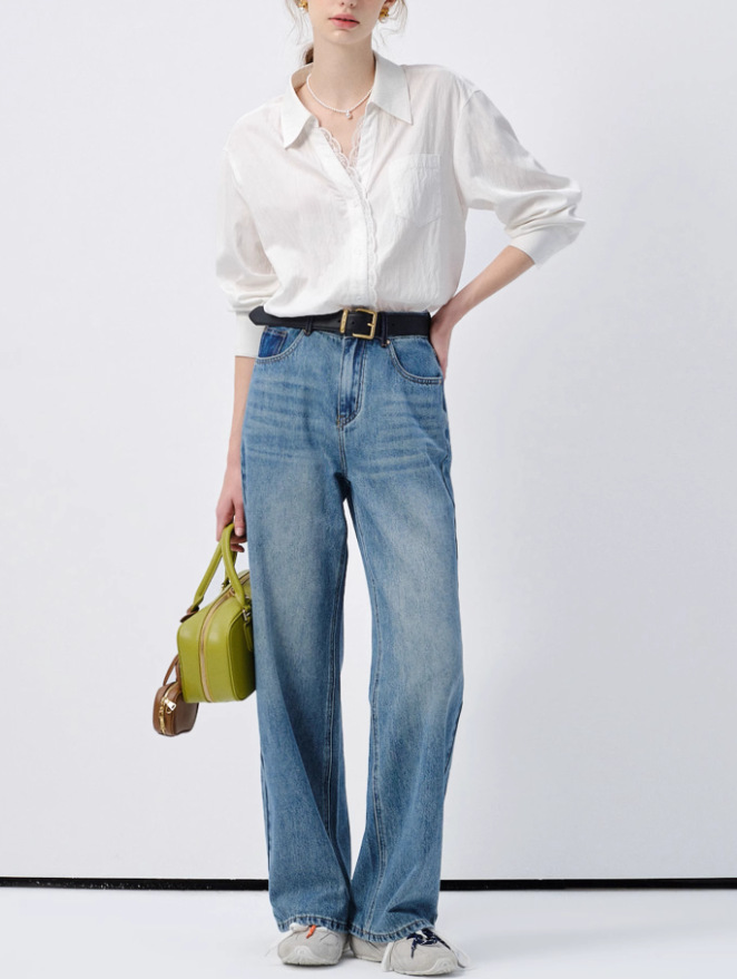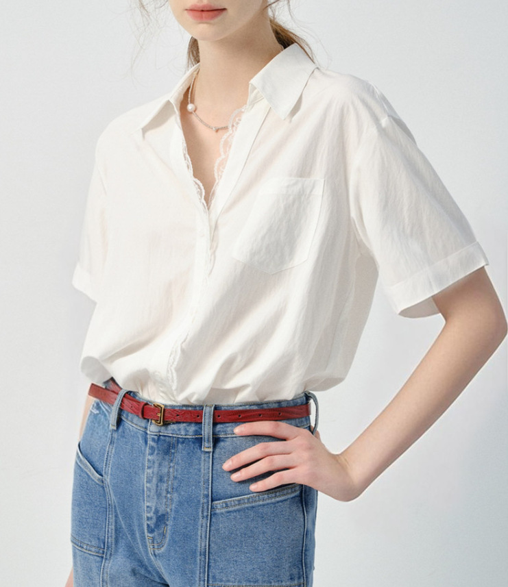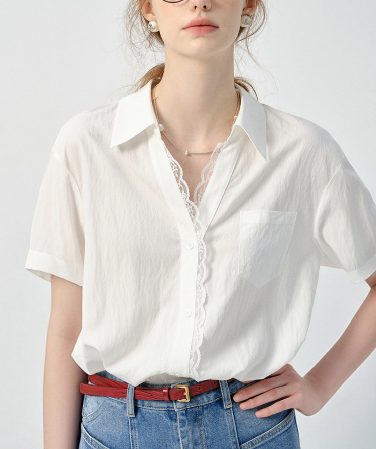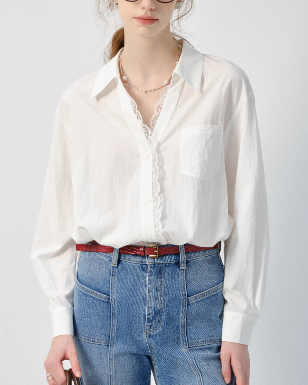 VEGA CHANG 화이트 셔츠 여성용 긴팔 2026 봄 신상품 유로풍 레이스 루즈핏 탑스토어 가기