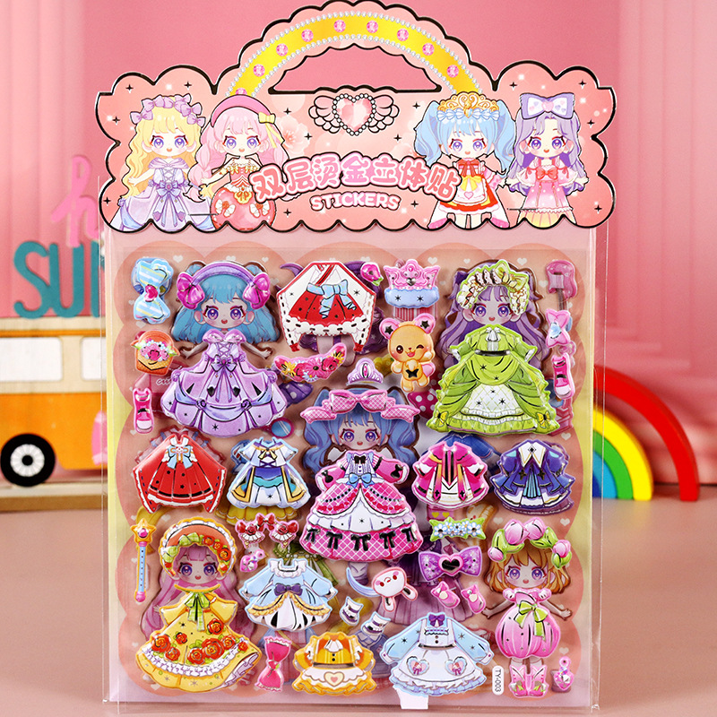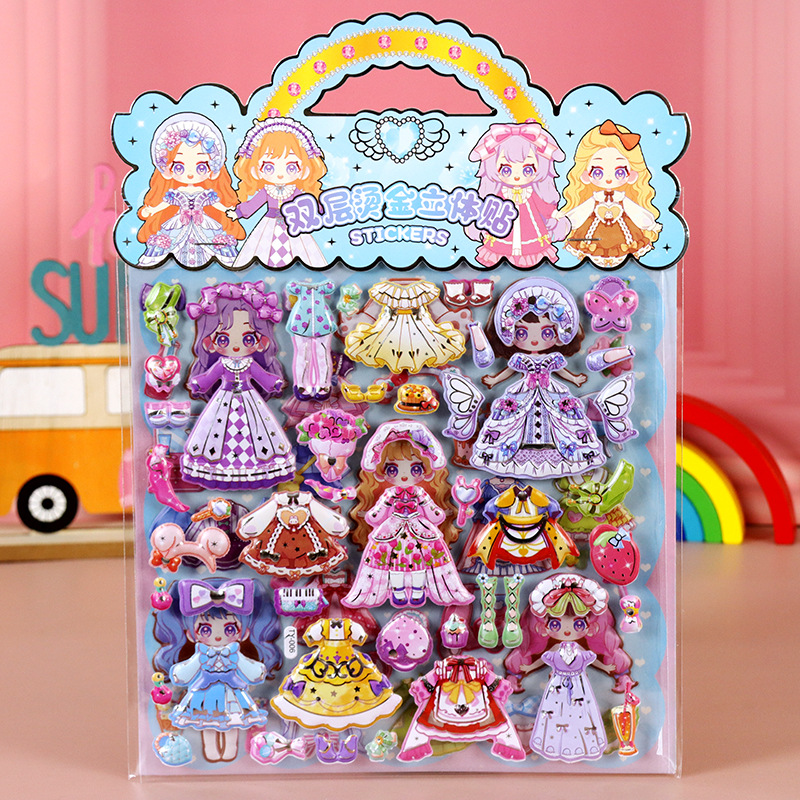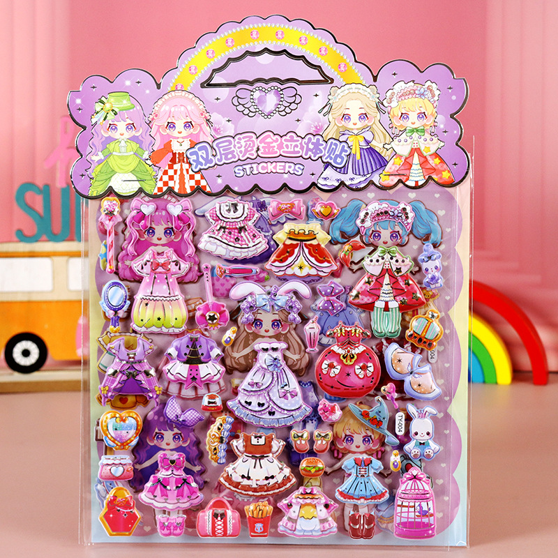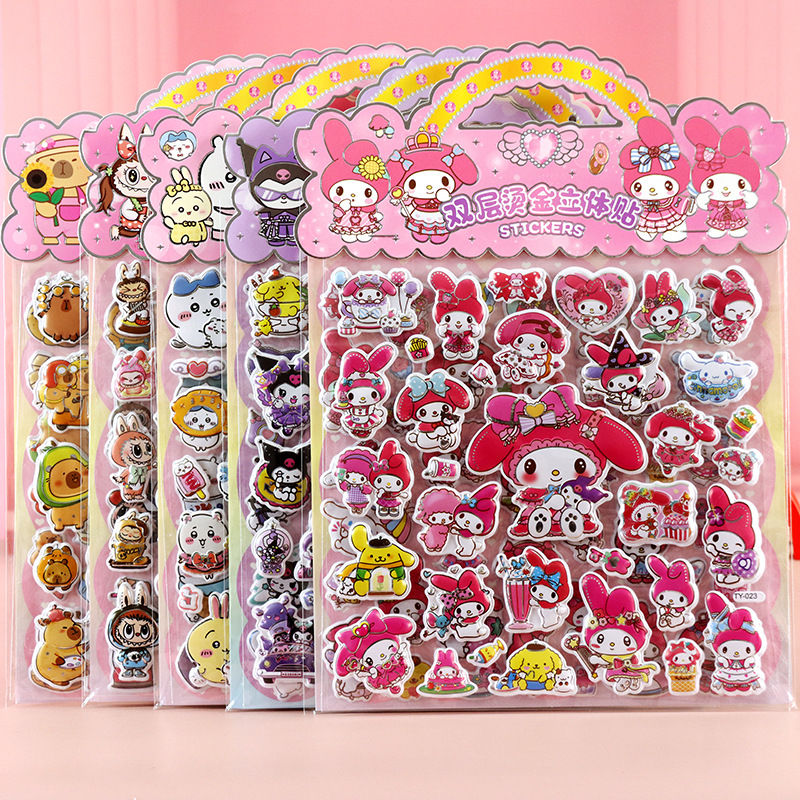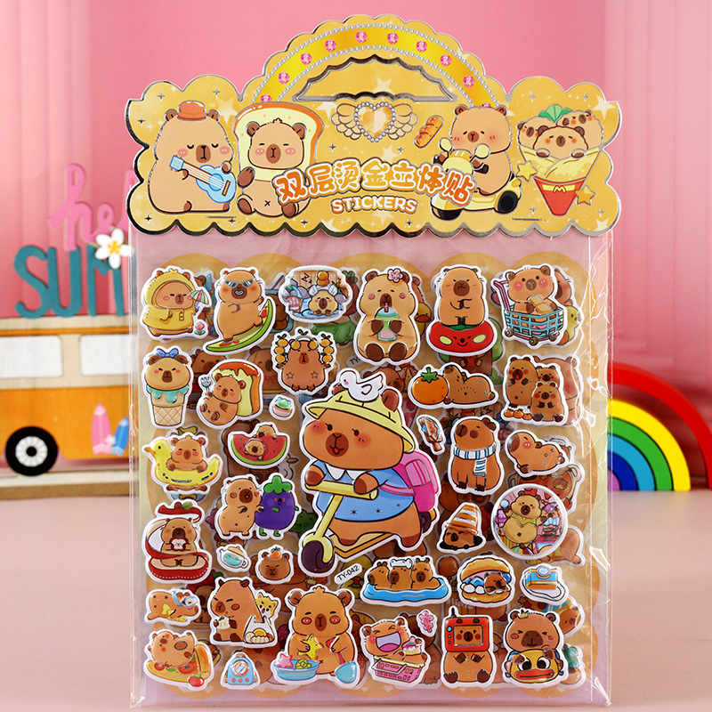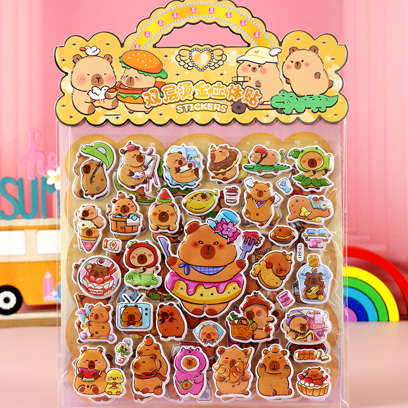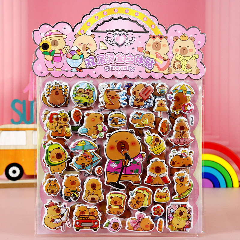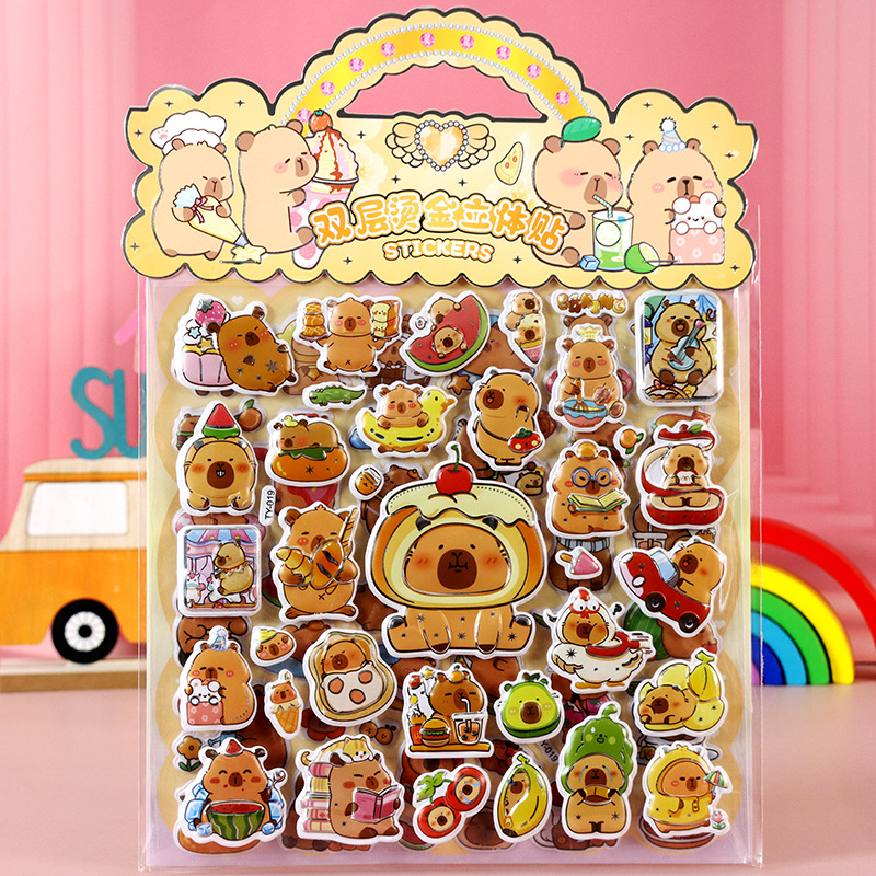 어린이 만화 스티커 산리오 카피발라 소녀 드레스업 이중 레이어 금박 입체 버블 스티커스토어 가기