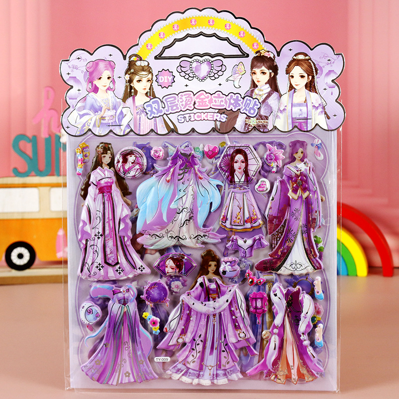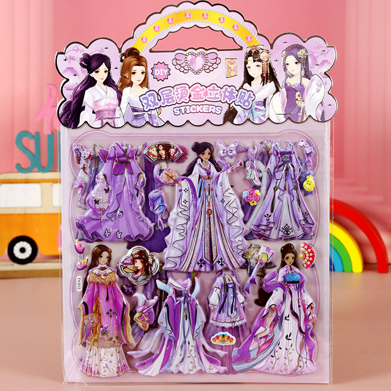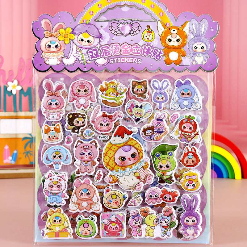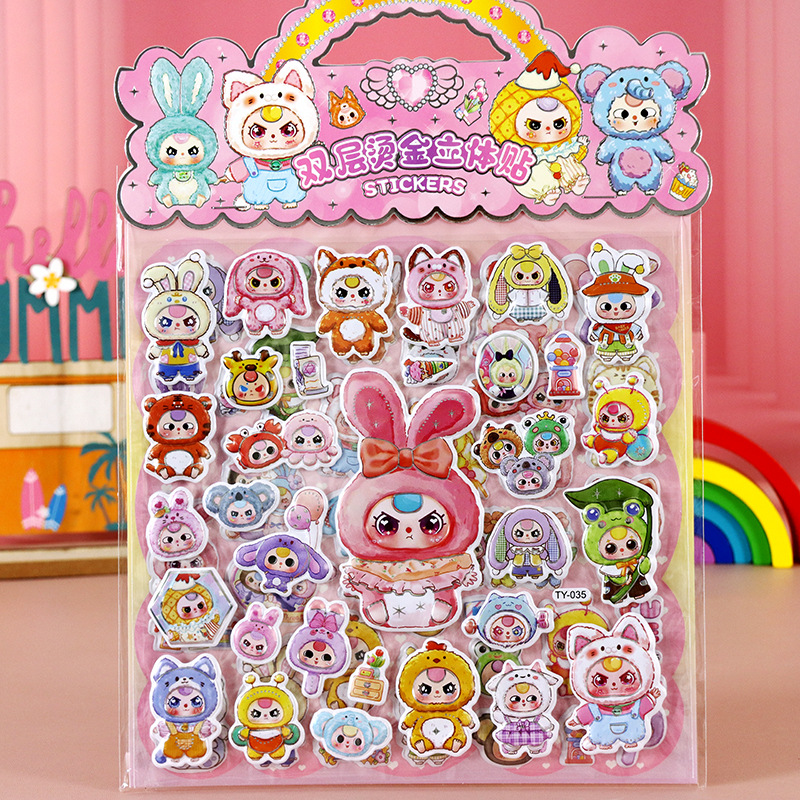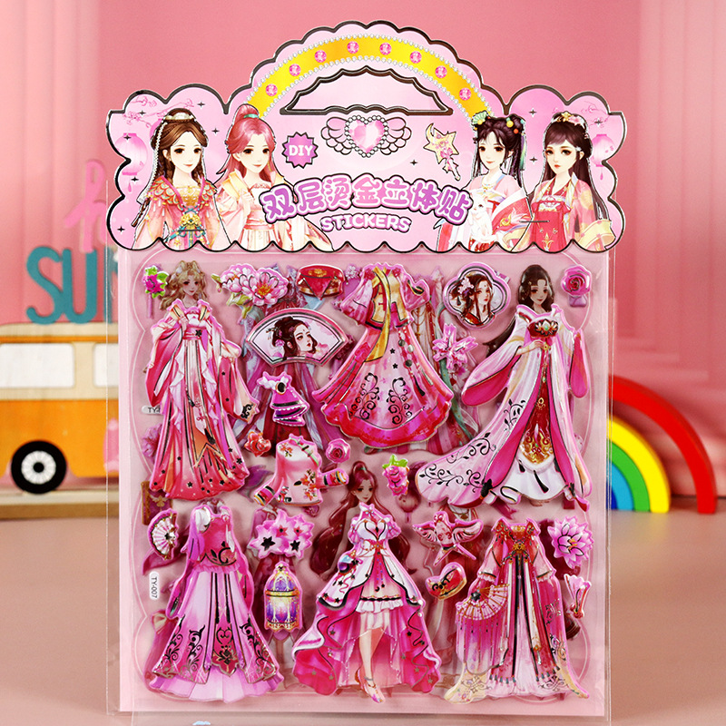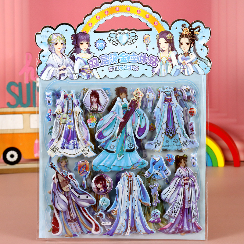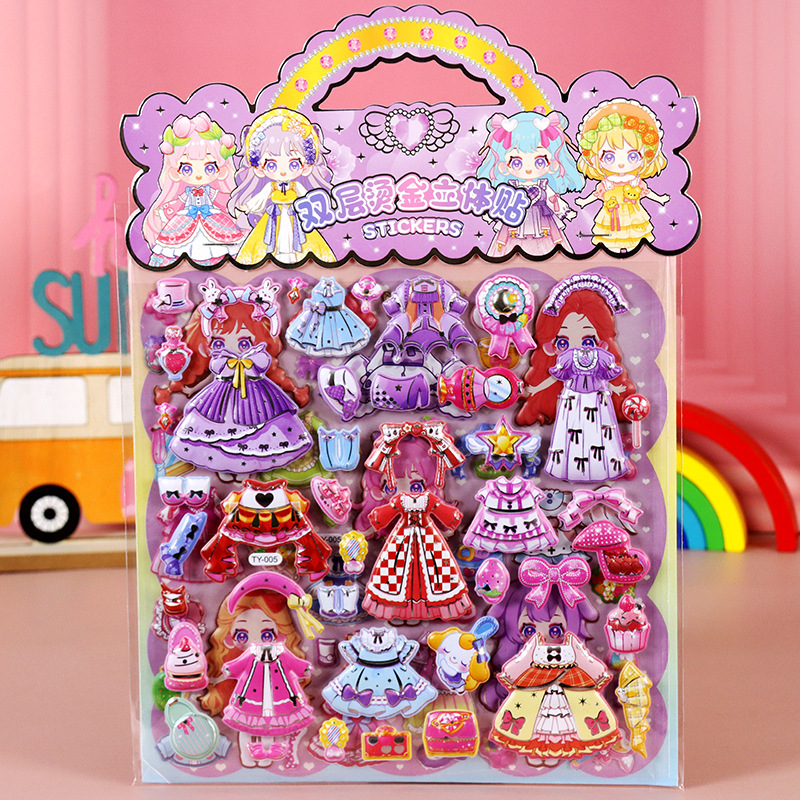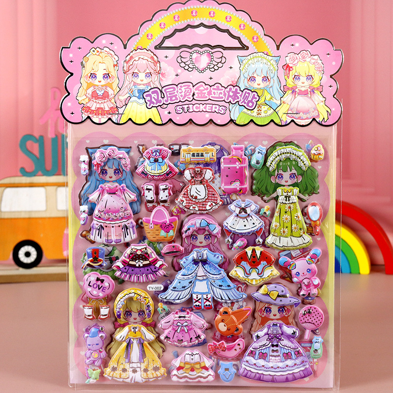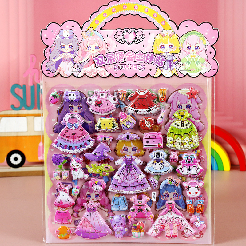 어린이 만화 스티커 산리오 카피발라 소녀 드레스업 이중 레이어 금박 입체 버블 스티커스토어 가기