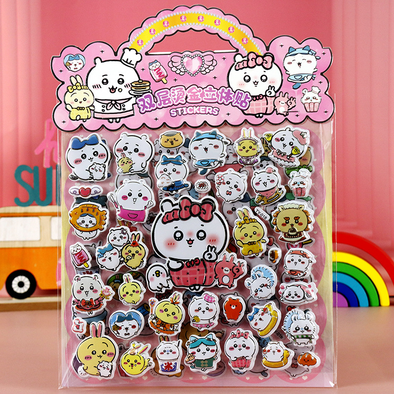 어린이 만화 스티커 산리오 카피발라 소녀 드레스업 이중 레이어 금박 입체 버블 스티커