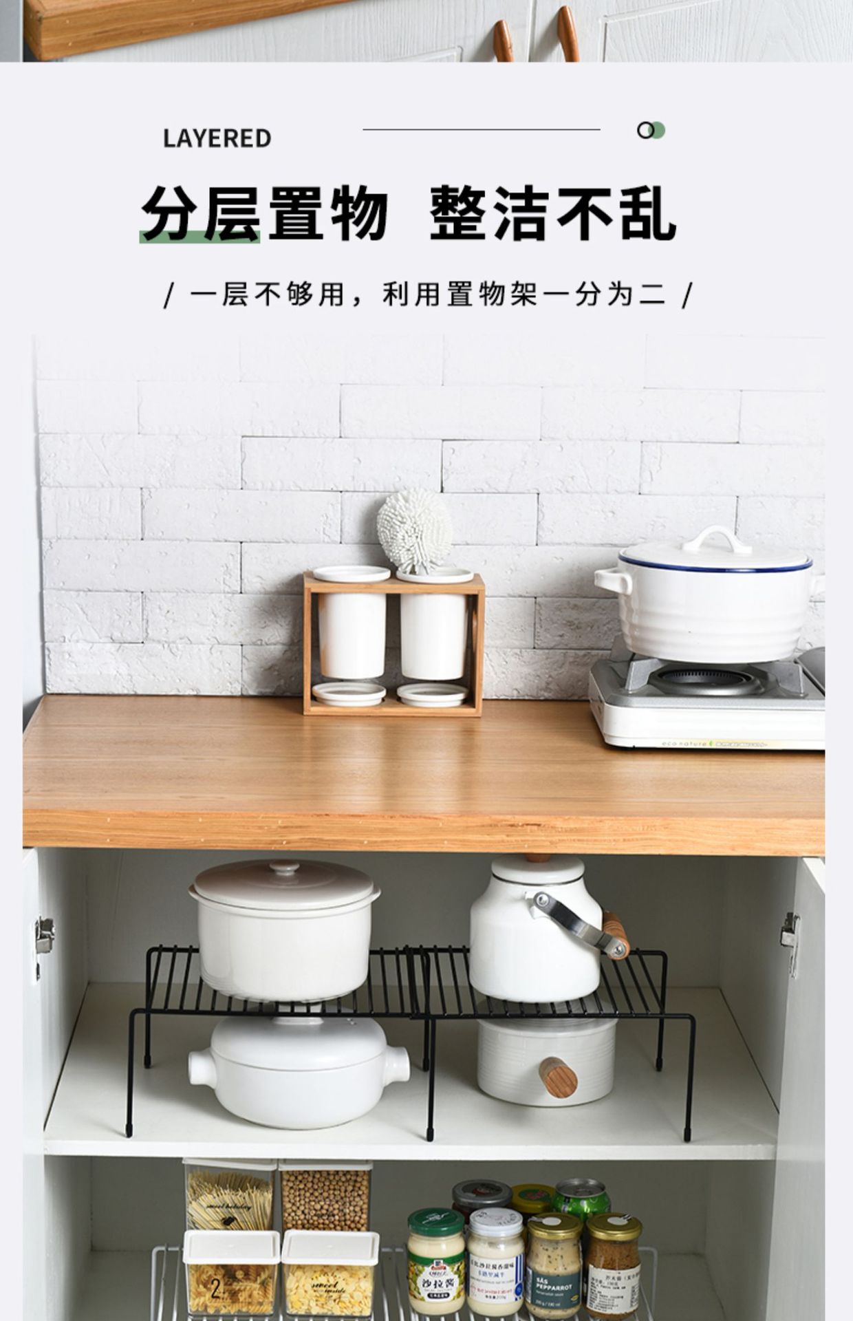 주방 보관 랙 개폐식 카운터 탑 캐비닛 내부 파티션 적층 랙 캐비닛 조미료 냄비 그릇 랙 스토리지 랙