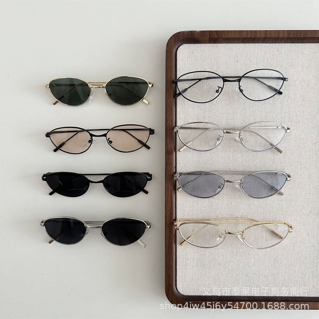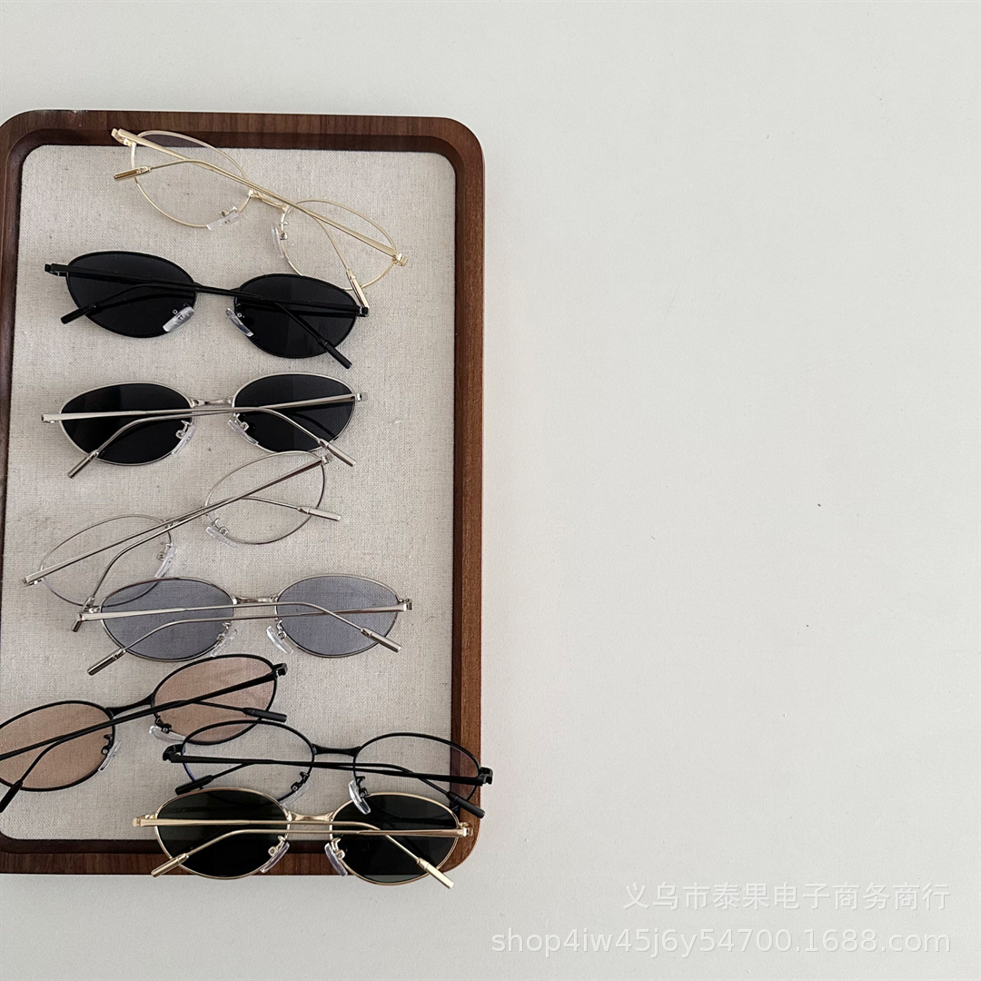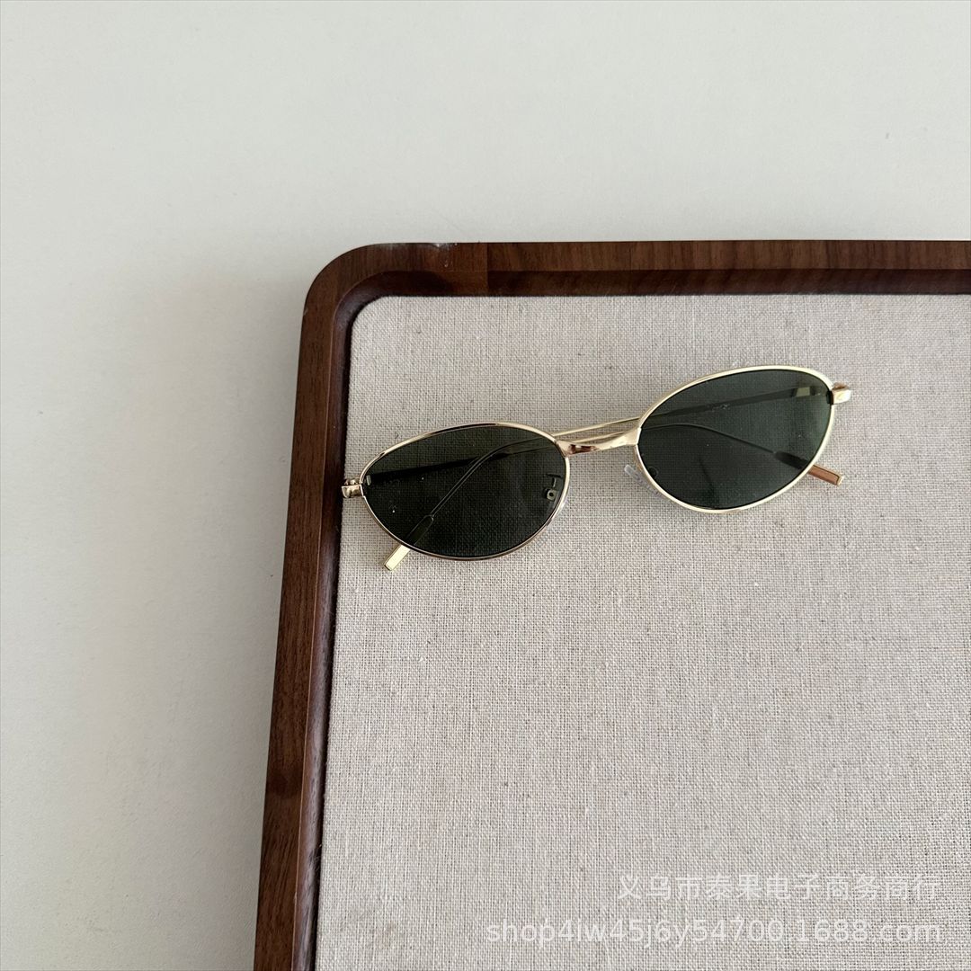 2025년 여름 새로운 스타일의 어린이 스타일 인터넷 연예인 스타 같은 금속 타원형 프레임 선글라스 소년 소녀 선글라스스토어 가기